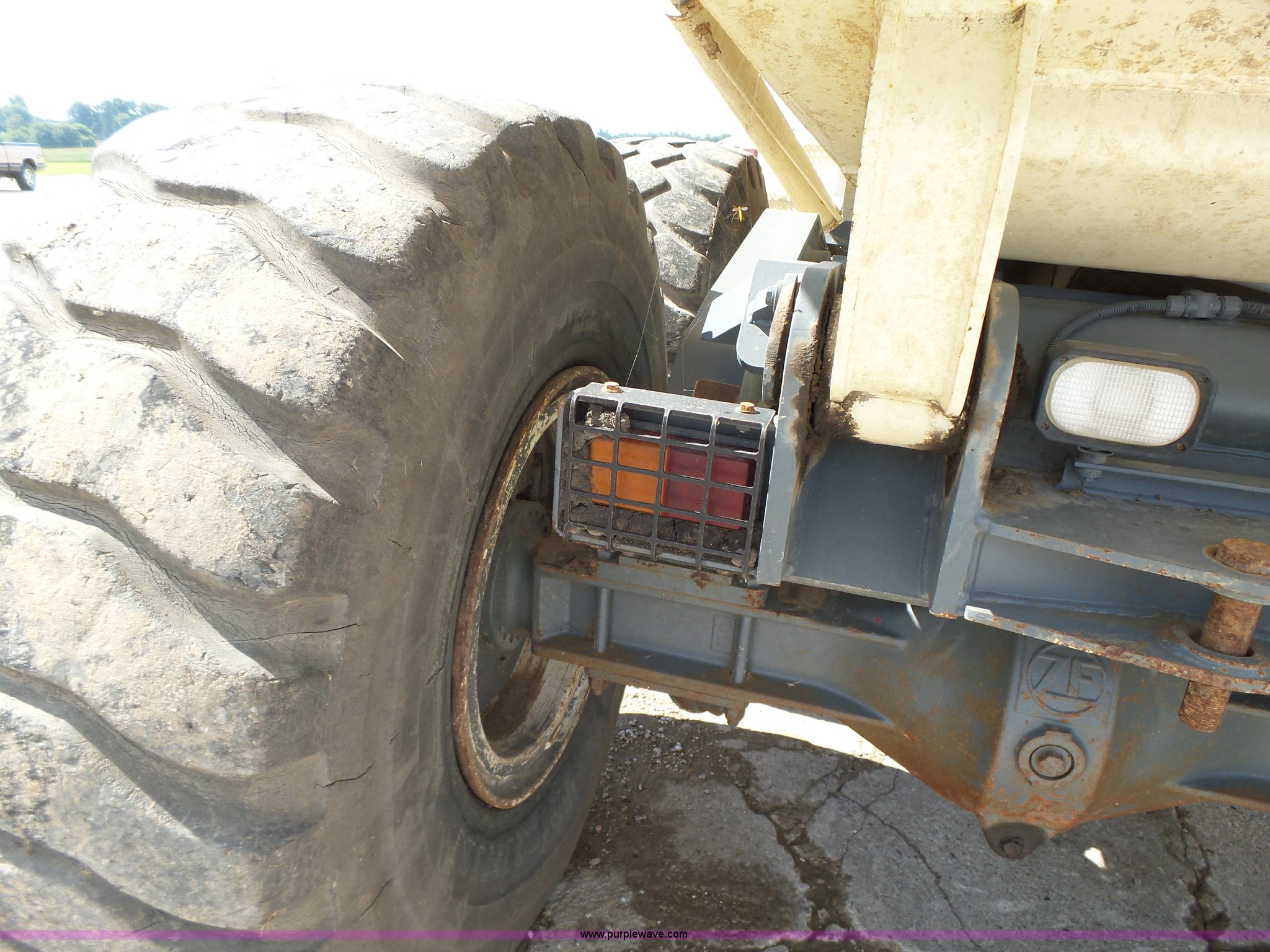 2000 Terex TA30 haul truck. 2,652 hours on meter, Cummins M11 six cylinder turbo diesel engine 300 HP, Automatic transmission 6F-3R gears, EROPS, Heat, Suspension seat, Instructor's seat, Tilt, Rear window shield, 18 cu.yd. struck capacity, 22.9 cu.yd. heaped capacity, Air brakes, 23.5R25 tires, Windshield cracked, Serial A7751316. NORAG. 11108 240th Street. West Union, IA 52175