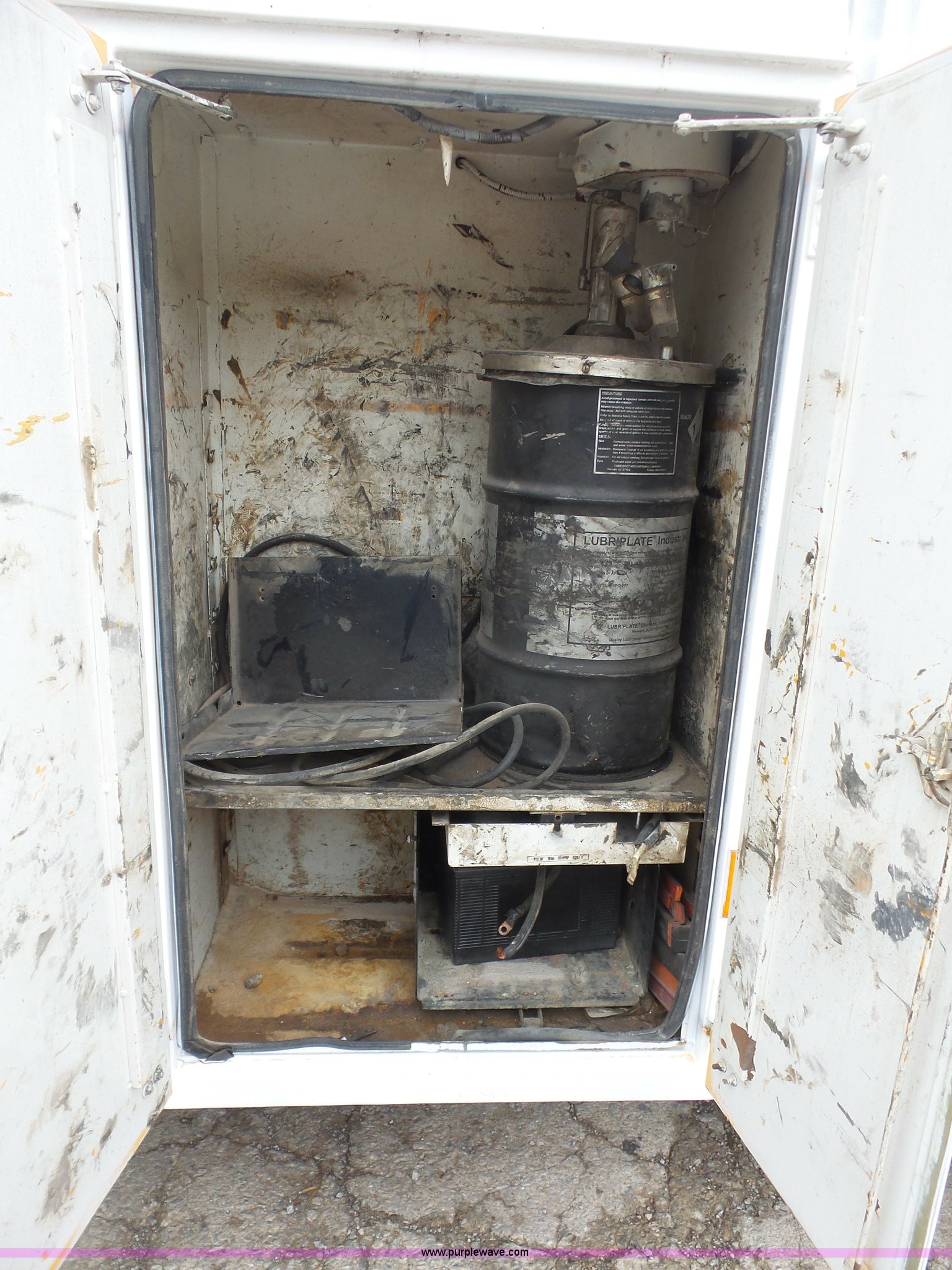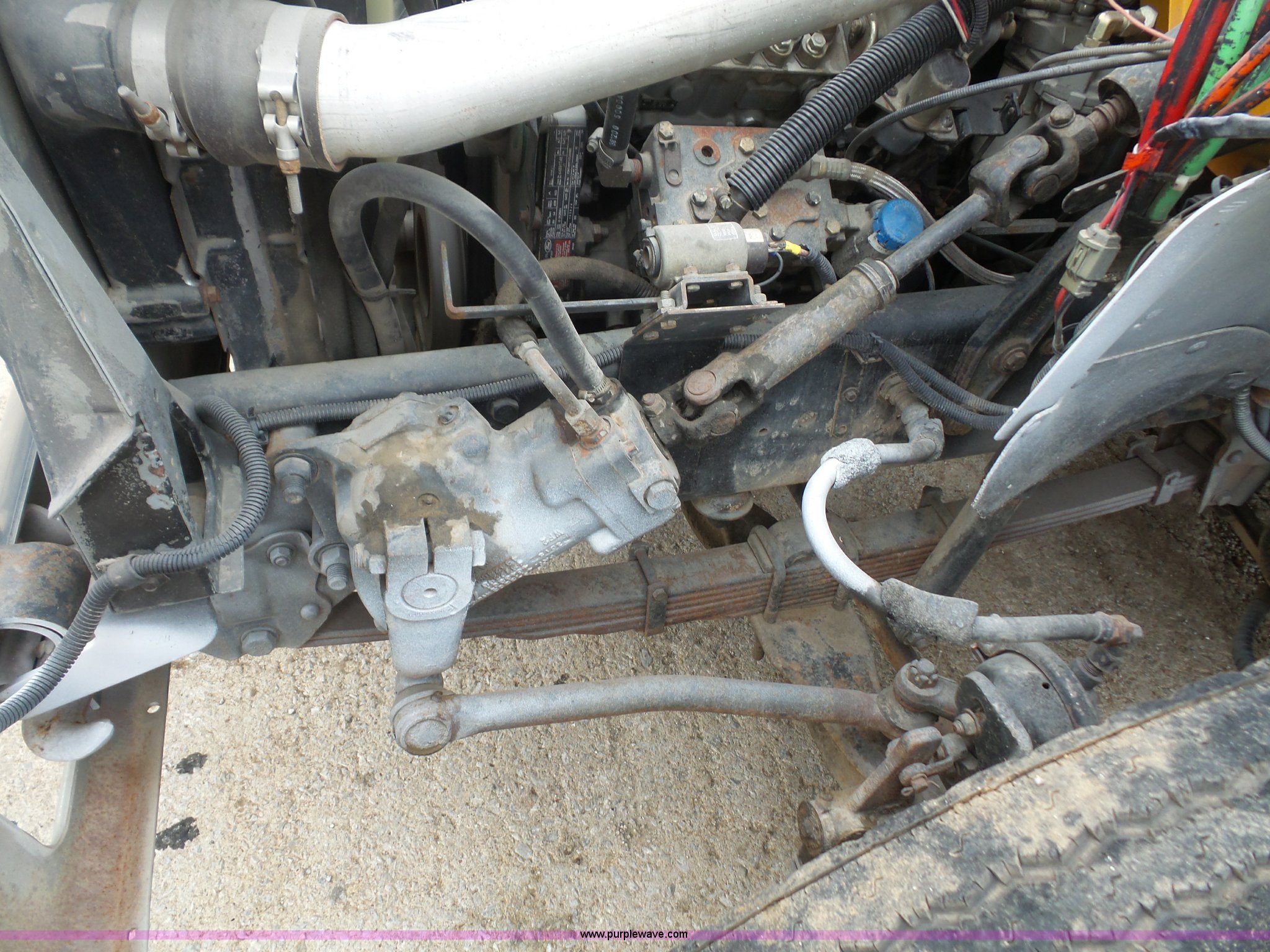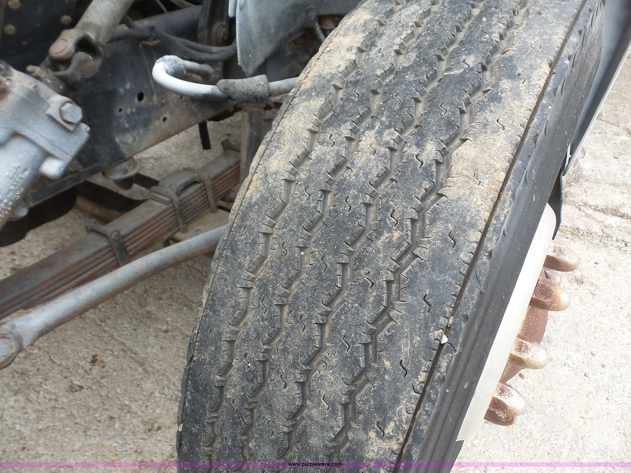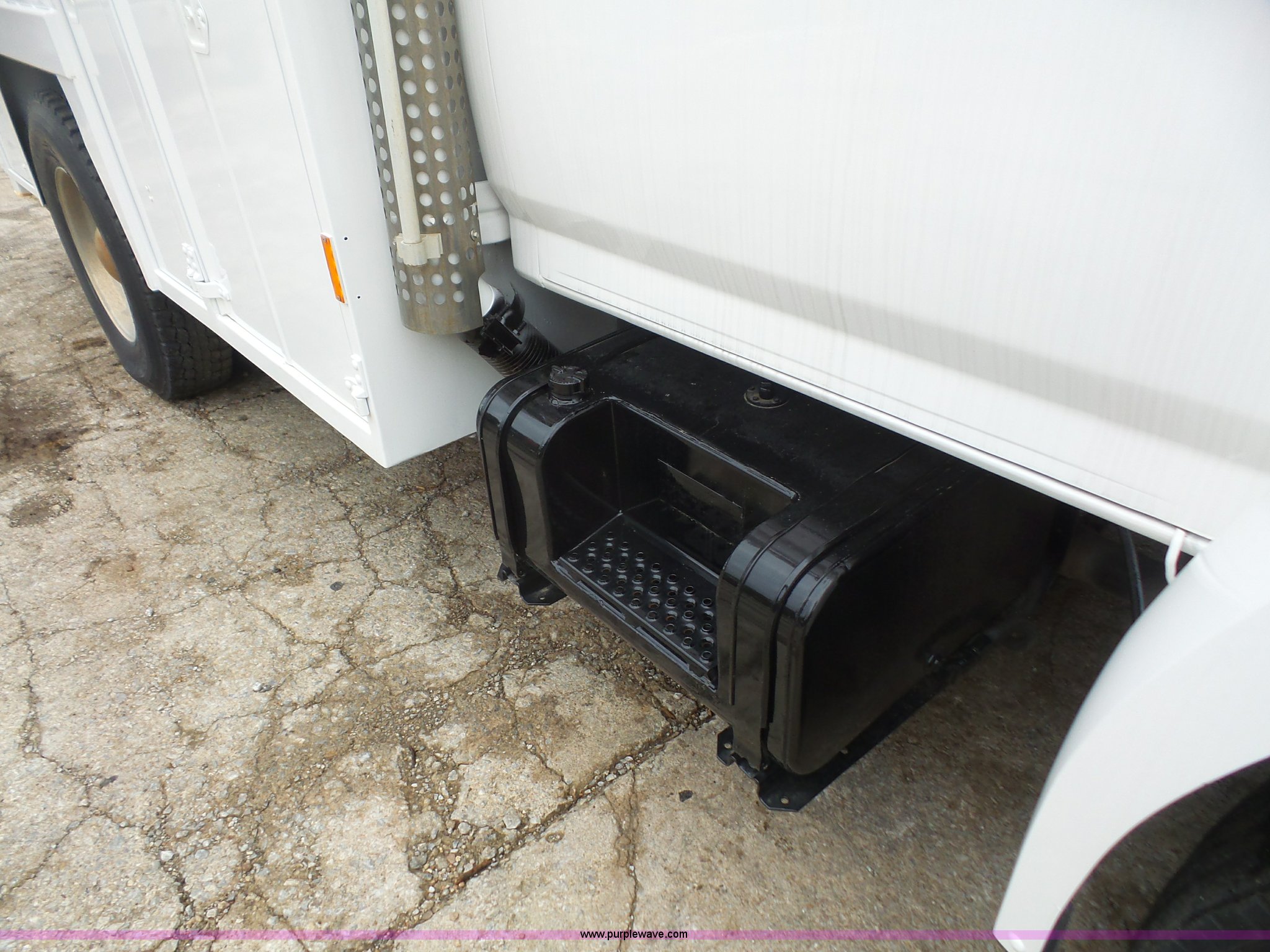 Purple Wave is selling a used Service Truck in Kansas. This item is a 1994 Ford F700 service truck with crane with the following: 188,224 miles on odometer, Cummins ISB 5.9L L6 diesel engine, 210 HP, Five speed manual transmission, Two speed rear end, Single axle, Heat, AM/FM/cassette, Air suspension seat, PTO, Maintainer service bed, 11'L, Shelving, Slide-out drawers, Mounted vise, 2' rear platform bumper, Pintle hitch, Hydraulic driven air compressor, Lube container, Maintainer I-145 crane, Remote, Outriggers, Single exhaust stack, Dual fuel tanks, Spring suspension, Air brakes, 11R22.5 tires