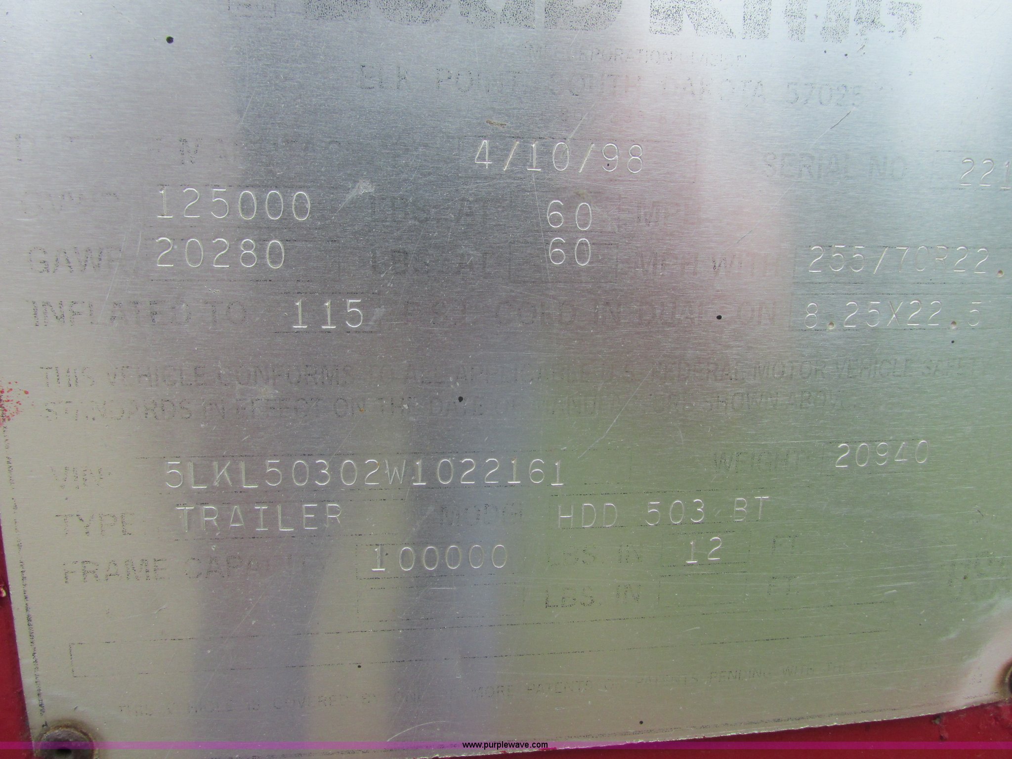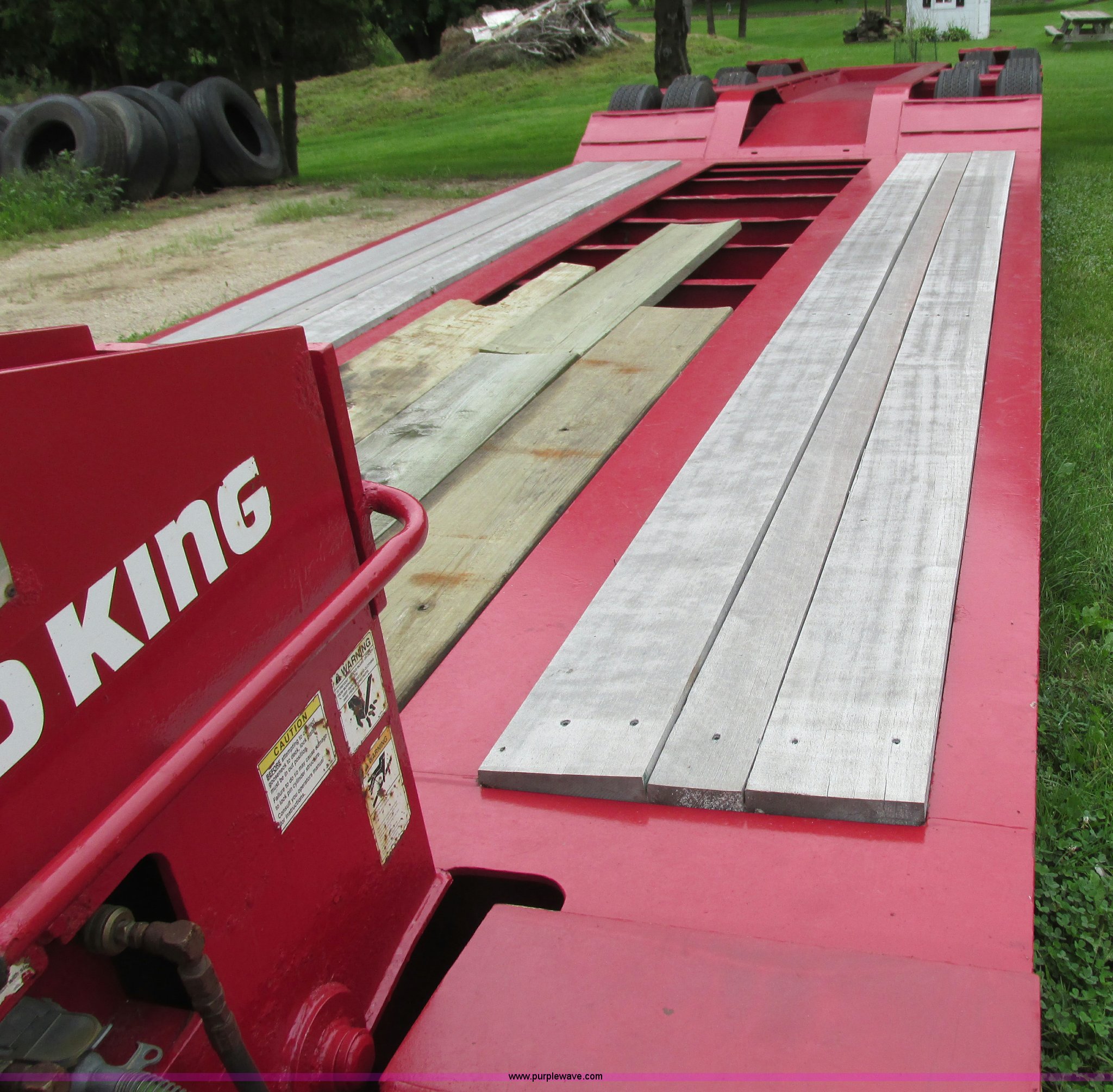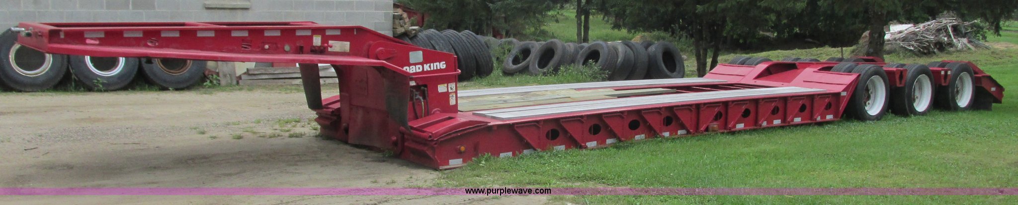 Purple Wave is selling a used Equip. Trailer in Wisconsin. This item is a 1998 Load King lowboy equipment trailer with the following: 50' overall length, 102"W, 20' well length, 4'L ramps, Steel and wood deck, Swing out outriggers, 10" boards, Remote control hydraulics, Detachable neck, Fifth wheel plate, Triple axle, Air suspension, Air brakes, 255/70R22.5 tires, GAWR 125,000 lbs
