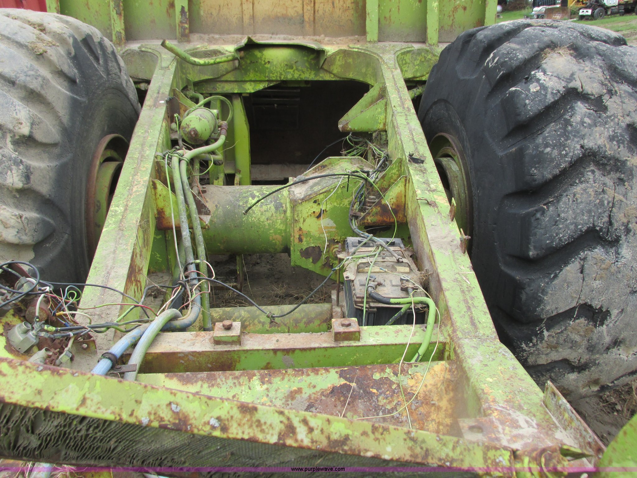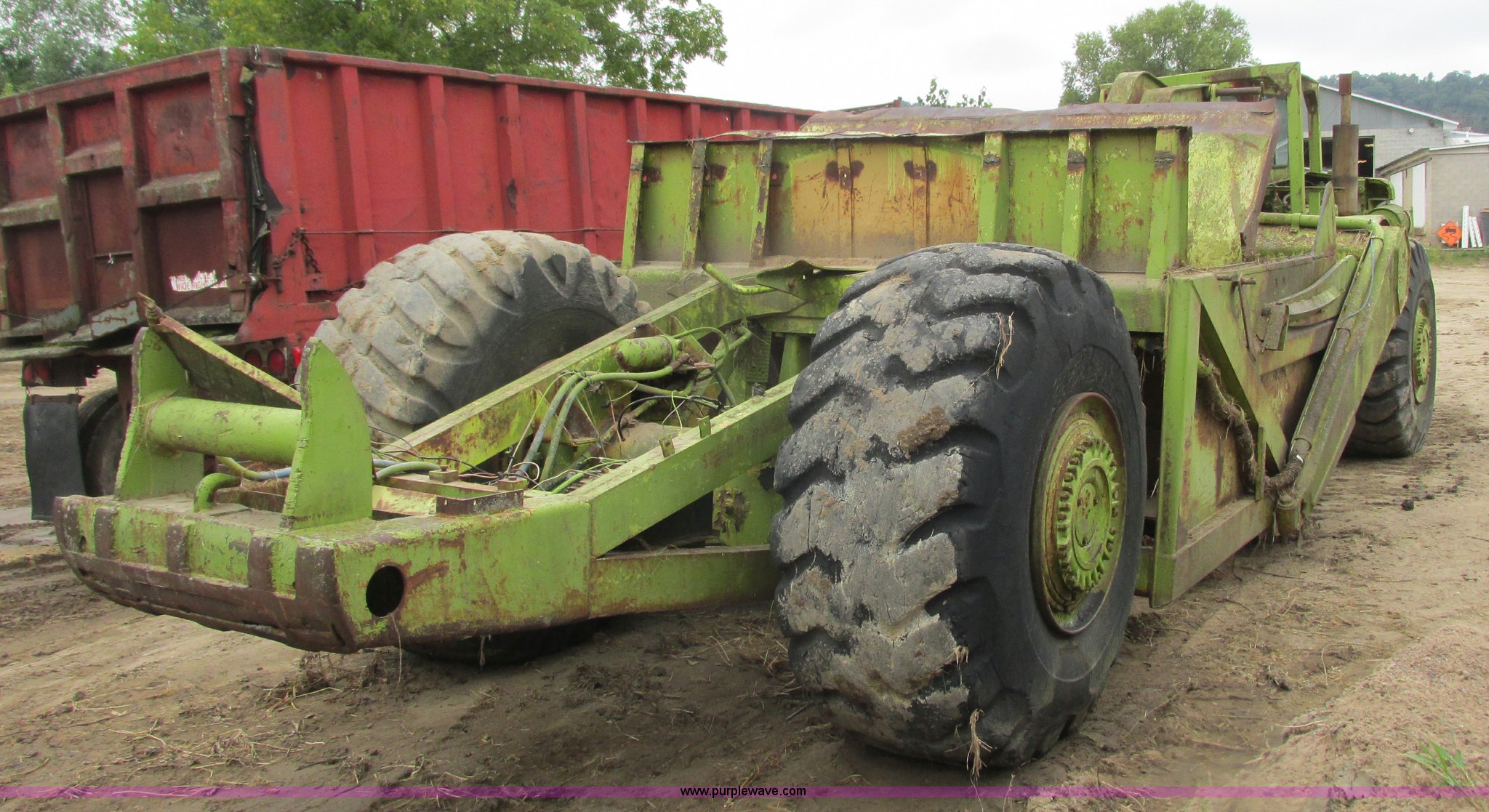 Purple Wave is selling a used Conventional Scraper in Wisconsin. This item is a Terex TS14 conventional scraper with the following: Detroit Diesel V471 six cylinder diesel front engine, Powershift transmission, Enclosed cab, Heat, Air suspension seat, 14 cu. yd. bowl capacity, Reversible cutting edge, Three lever controls, Rear push block, Air brakes, Goodyear 29.5-25 front tires, General 29.5-25 rear tires, Parts only, Rear engine missing, Both transmissions missing, Parts missing, Serial 20254
