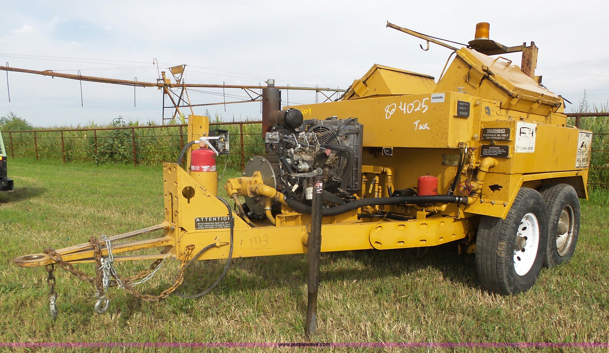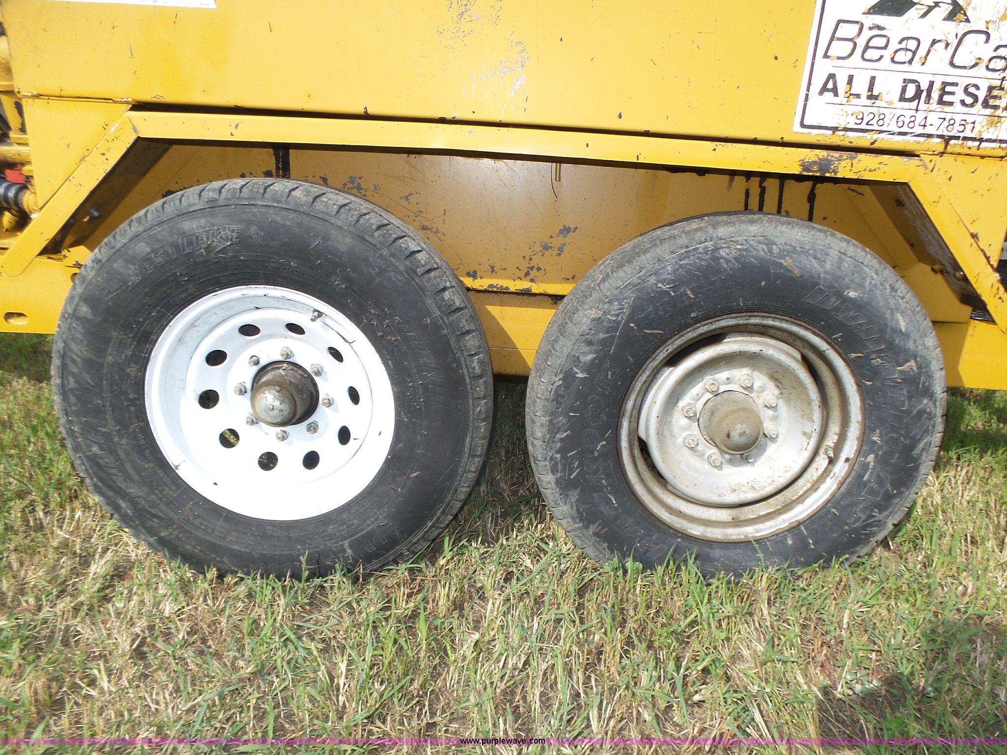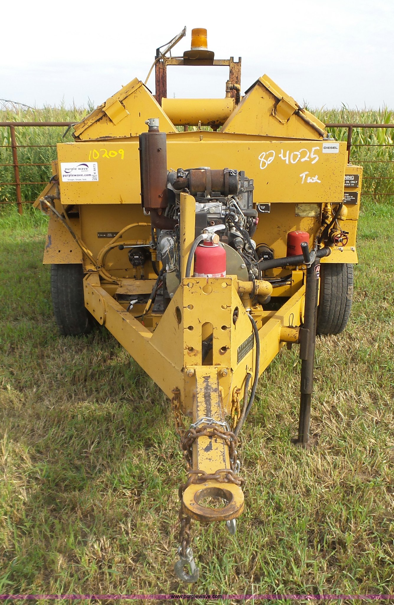 Purple Wave is selling a used Pot Hole Patcher in Iowa. This item is a Bear Cat BC400D pot hole patcher with the following: 3,454 hours on meter, Isuzu 3LB1 1,124cc three cylinder, 400 gallon capacity, Heated hose trough, Forward and reverse mixing augers, Beacon light, Lifting eyes, Tongue mounted jack stand, Tandem torsion axles, Safety chains, Break-away cable, Pintle hitch, LT235/85R16 tires, Serial 42302