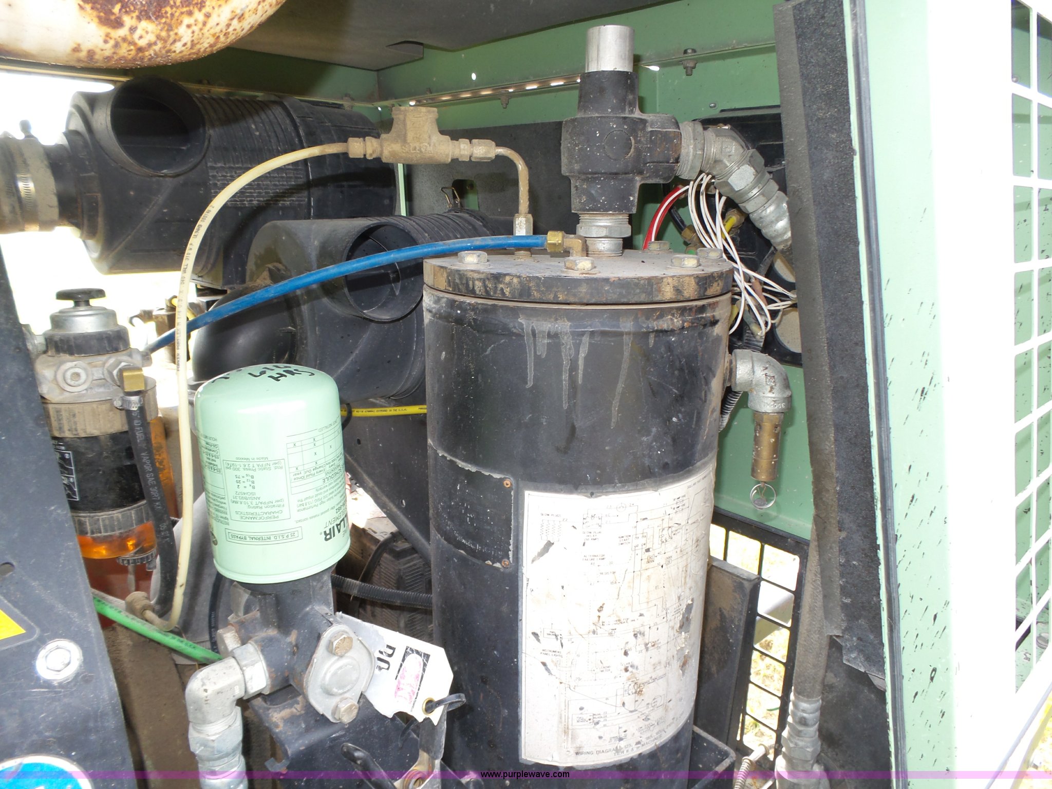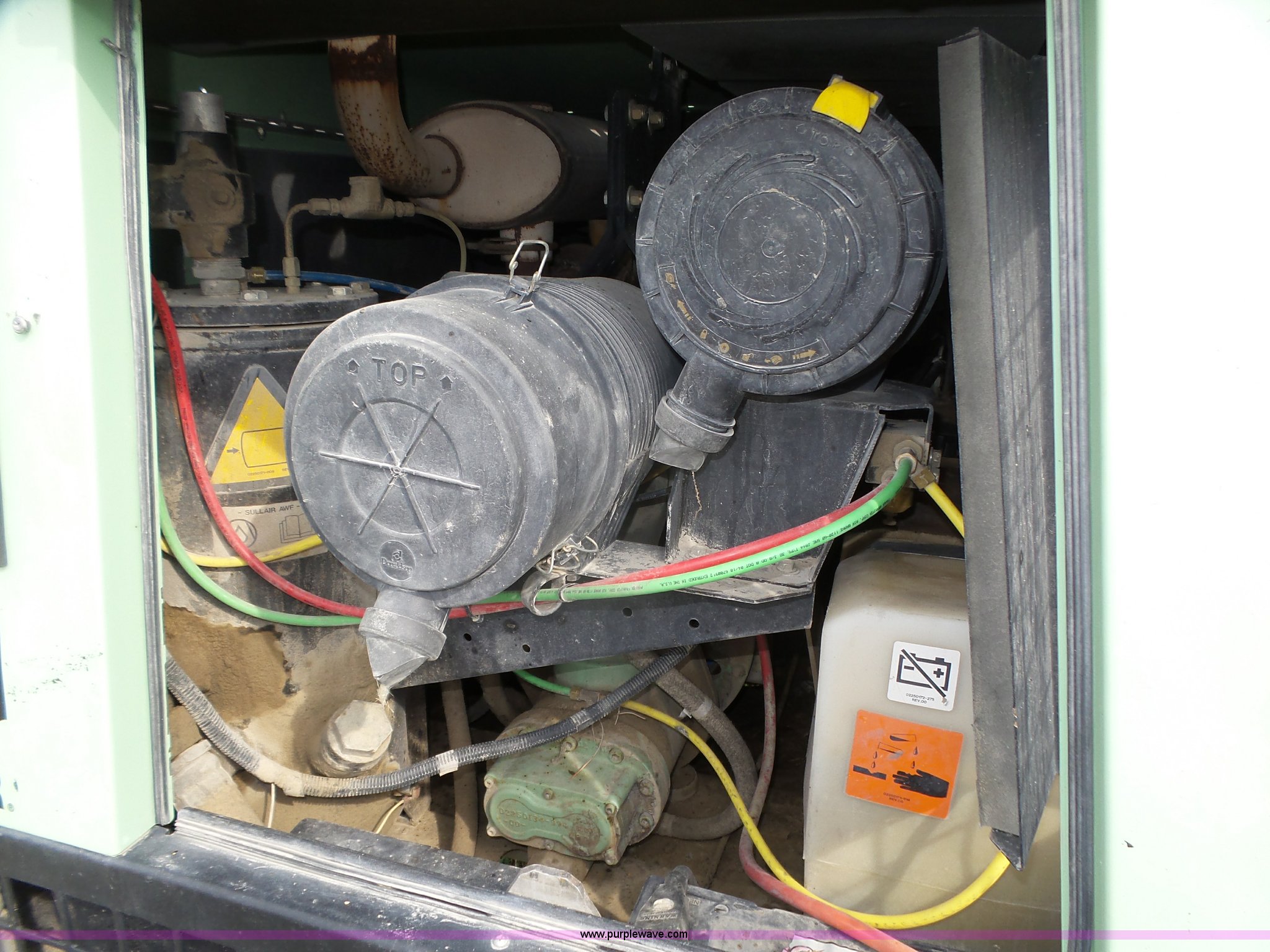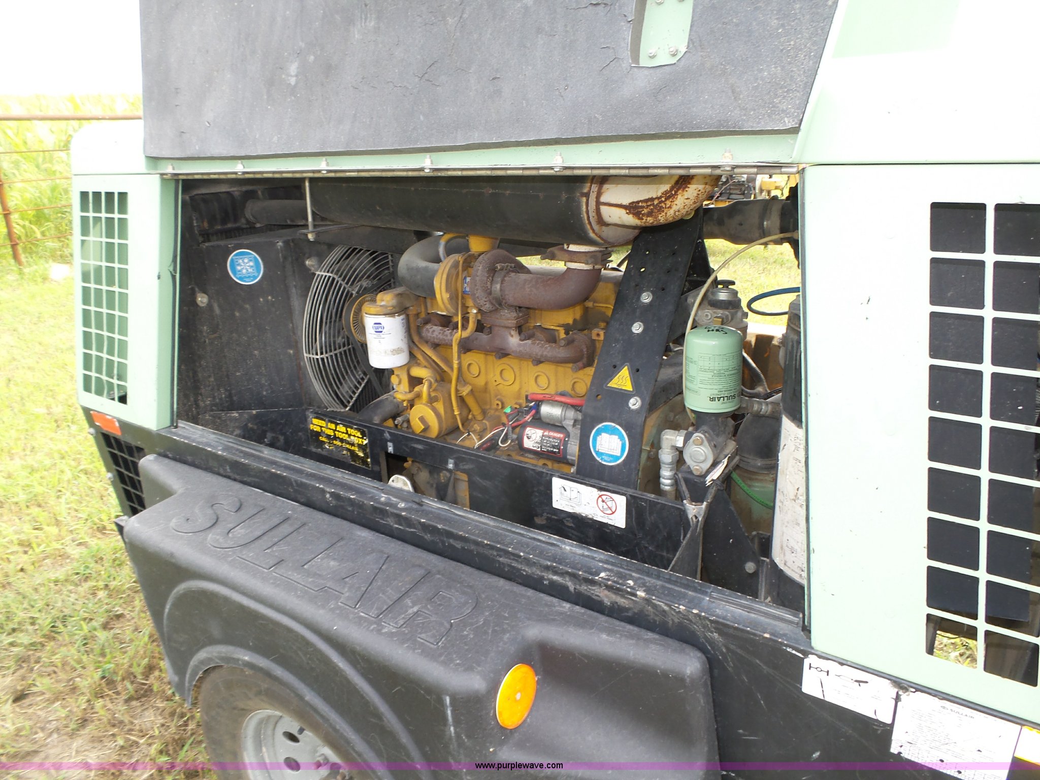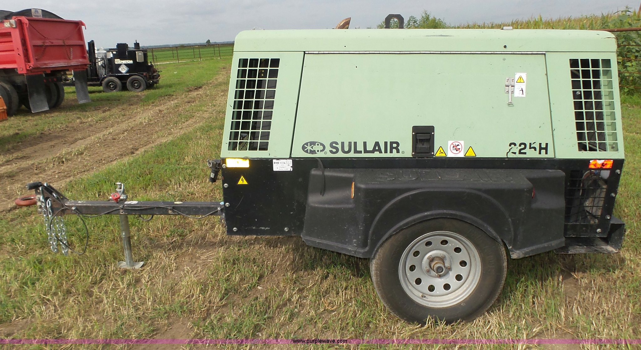 Purple Wave is selling a used Air Compressor in Iowa. This item is a 2010 Sullair 225HDPQJD2 air compressor with the following: 619 hours on meter, John Deere 5030TF270B 3.0L four cylinder turbo diesel engine, 61.5 kW, Serial PE5030T187342, 225 CFM, 150 psi, In-line water separator, Tool storage, Hose safety cable, Jack stand, Pintle hitch, ST205/75R15 tires, Serial 201008030061