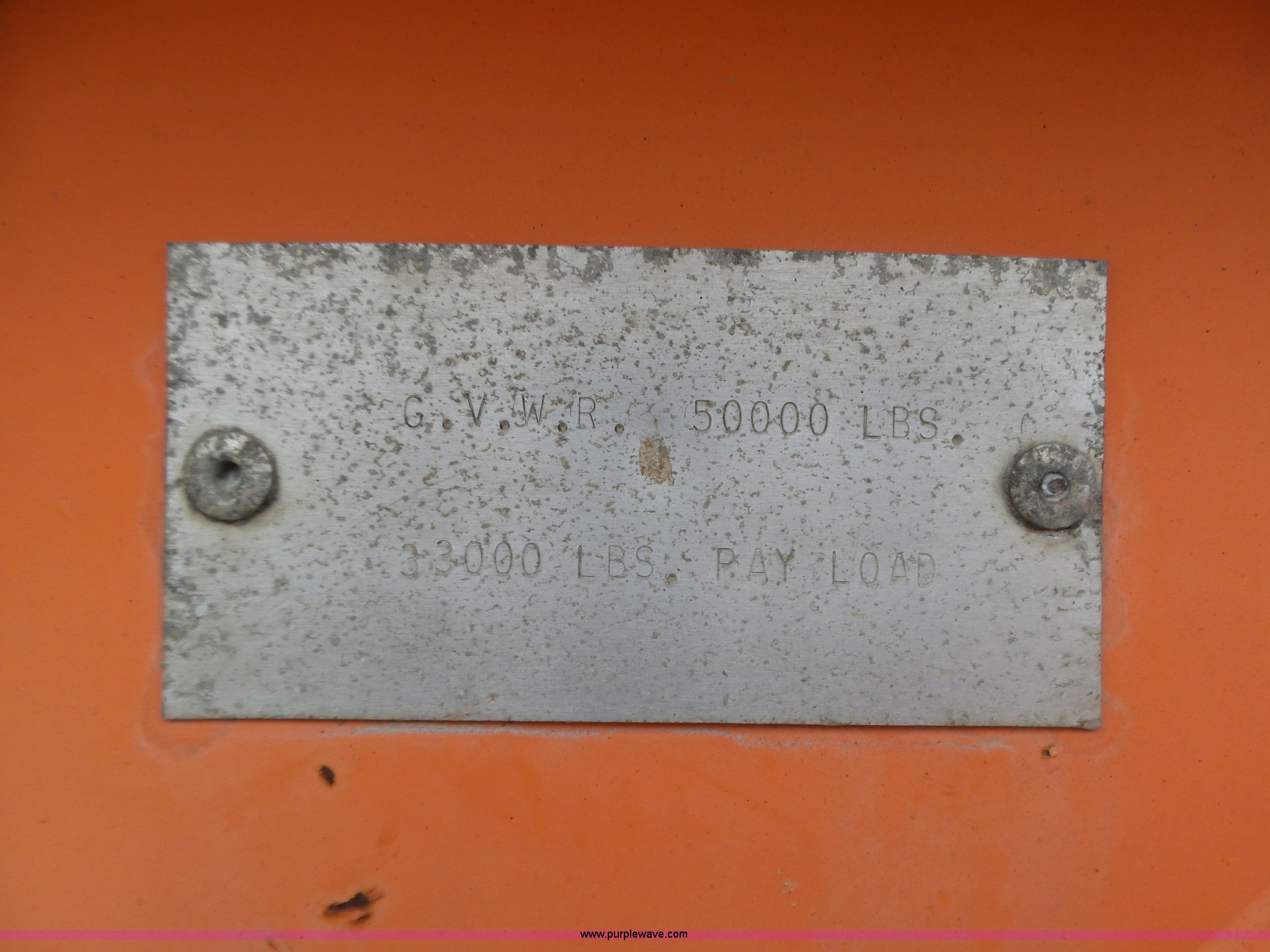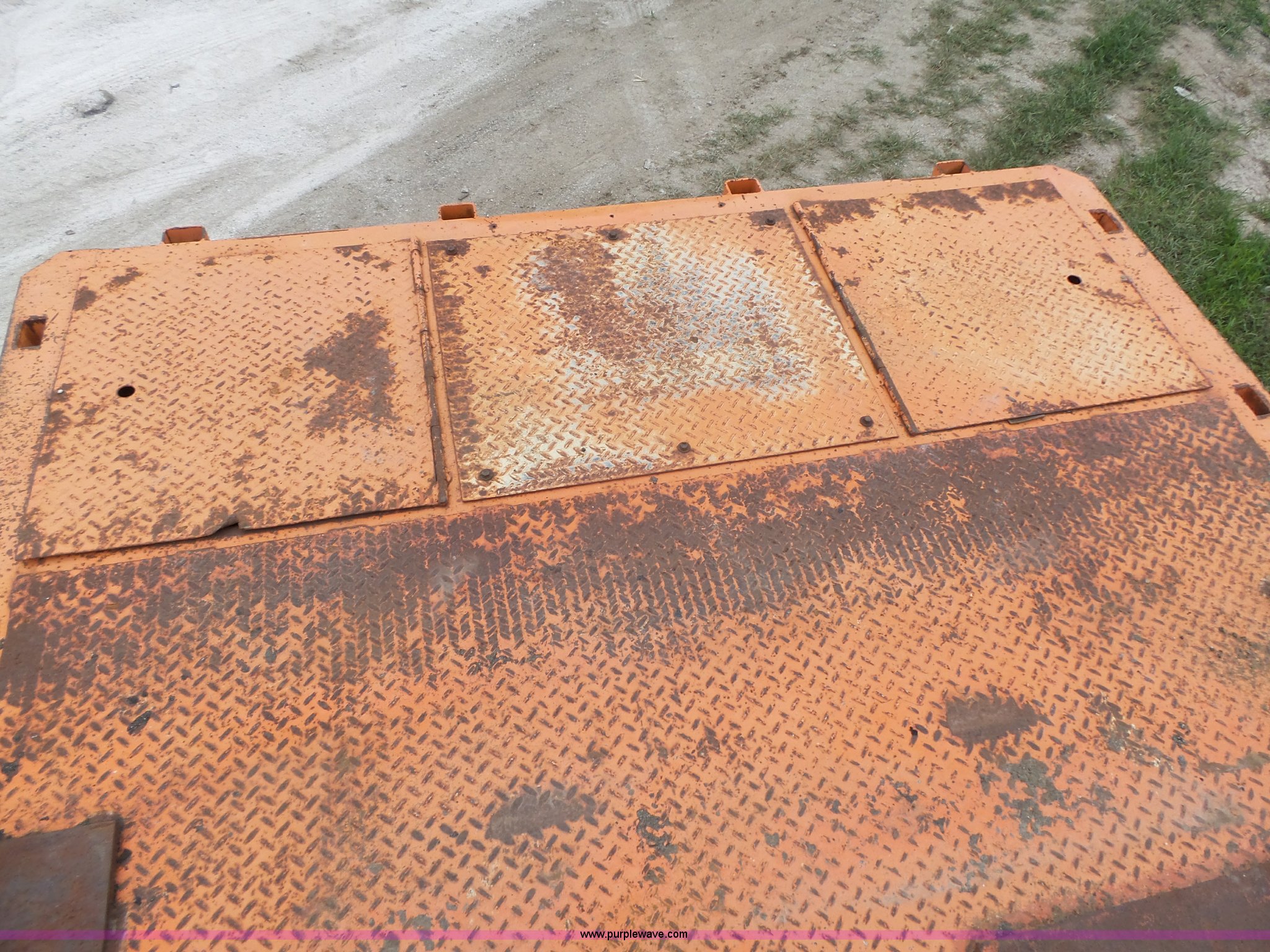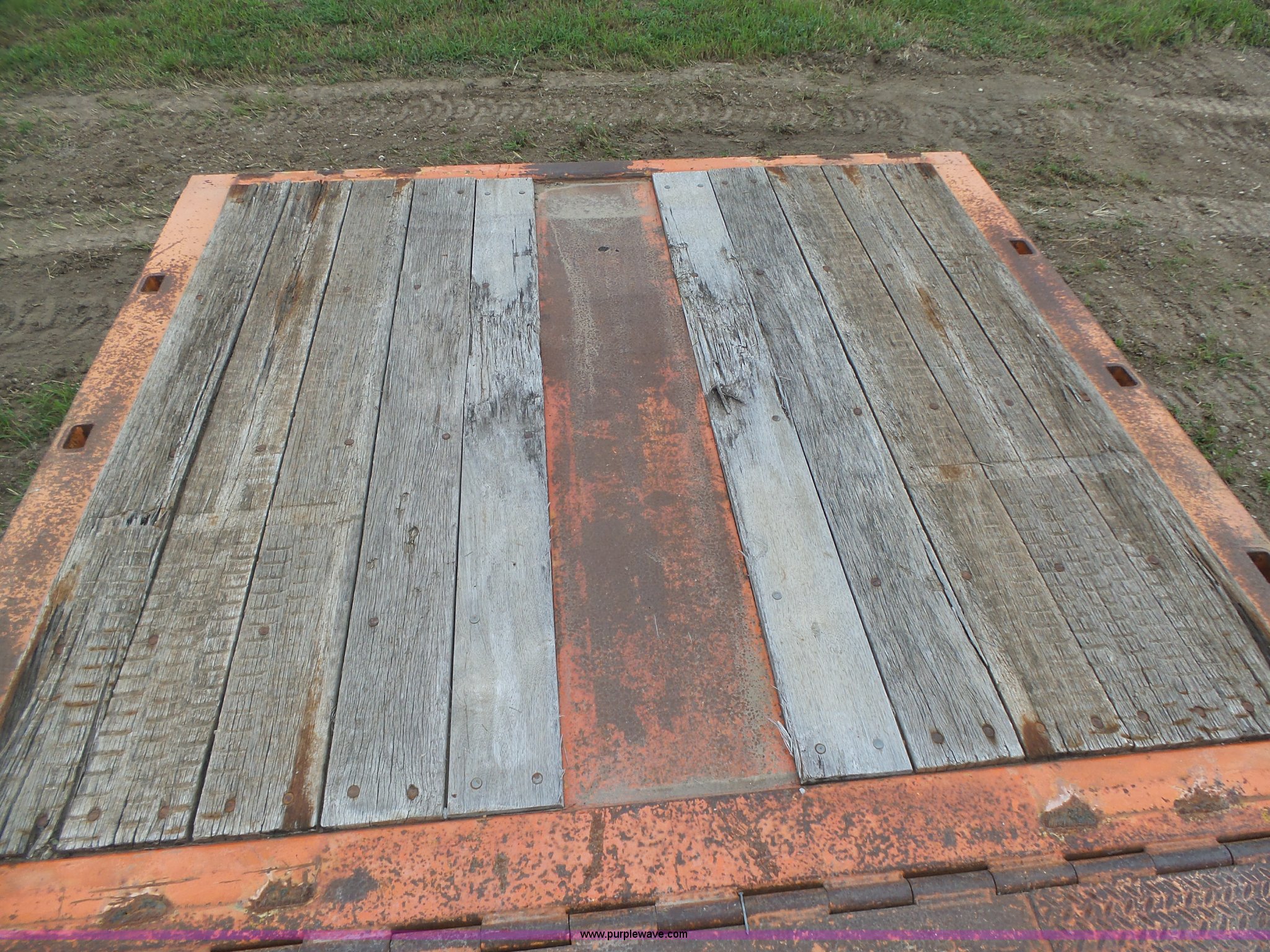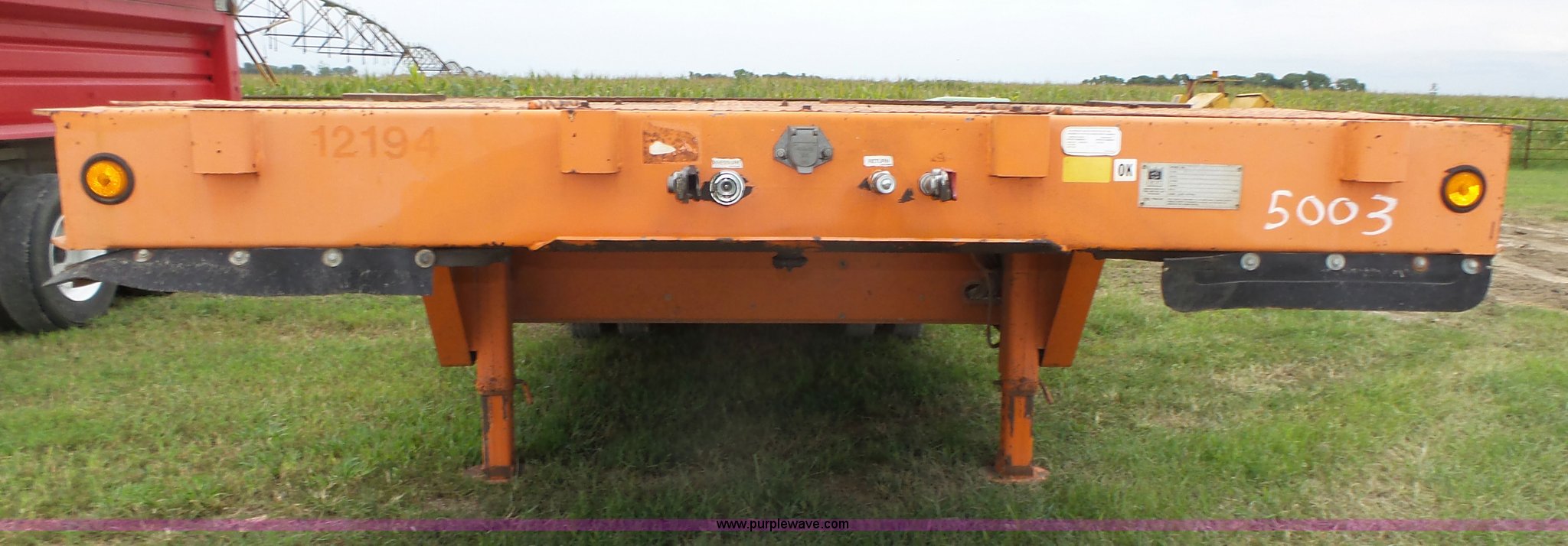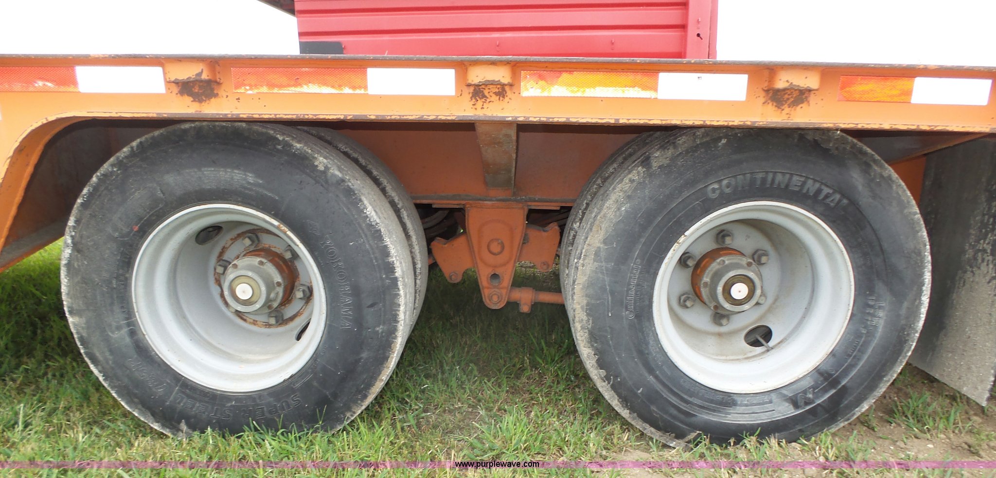 Purple Wave is selling a used Flat or Drop Deck Trailer in Iowa. This item is a 1997 Trail King TK60HT-322 drop deck equipment trailer with the following: 32'L x 102"W overall, 38" floor height, 8'L upper deck, 170"L main deck, 46"L dovetail, 93"L hydrualic ramps, Steel and wood construction, Stake side pockets, Recessed toolbox, Dual leg hydraulic landing gear, 33,000 lbs pay load capacity, Fifth wheel plate, Spring suspension, Air brakes, Steel wheels, 10R17.5 tires, GVWR 50,000 lbs, GAWR 17,640 lbs