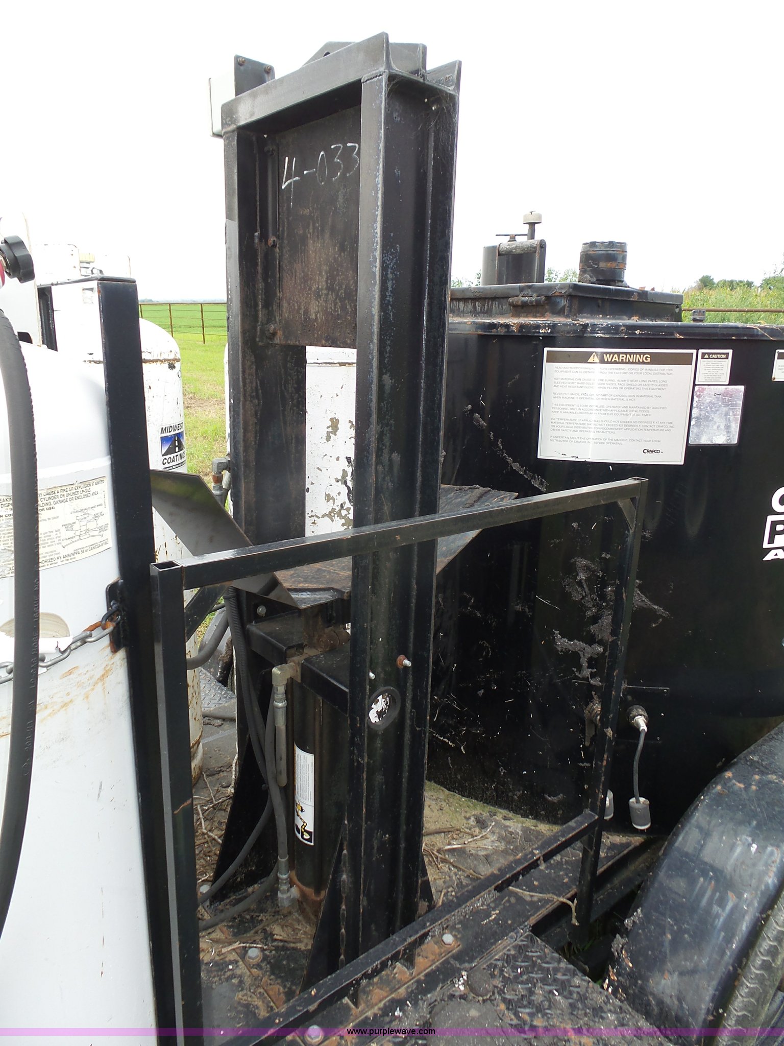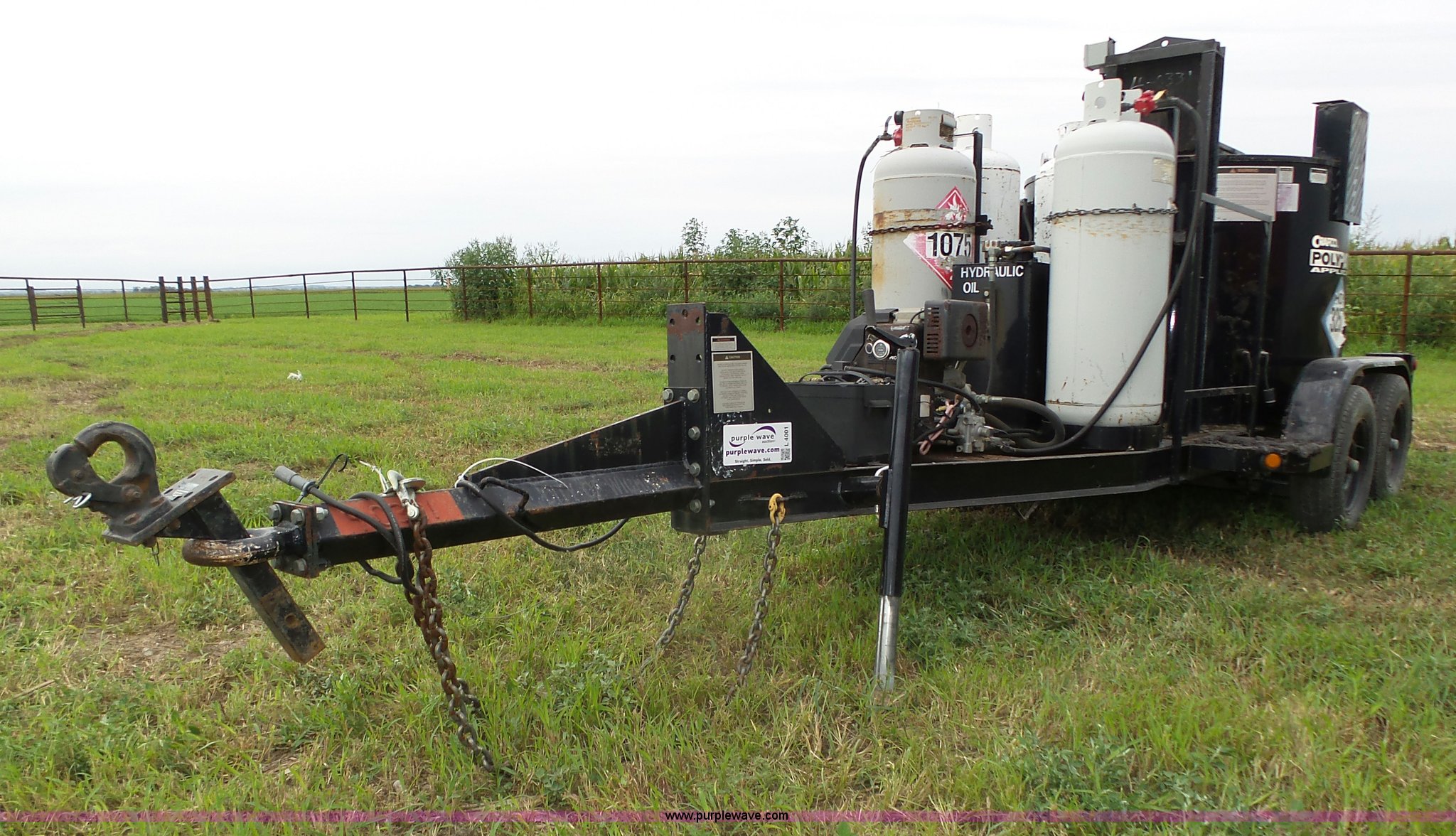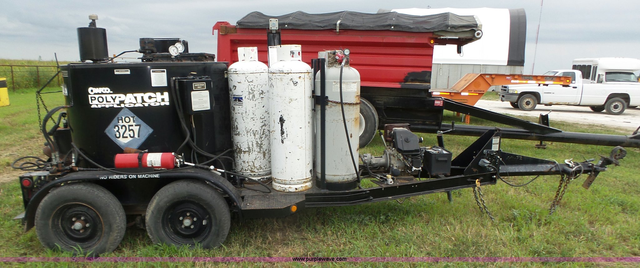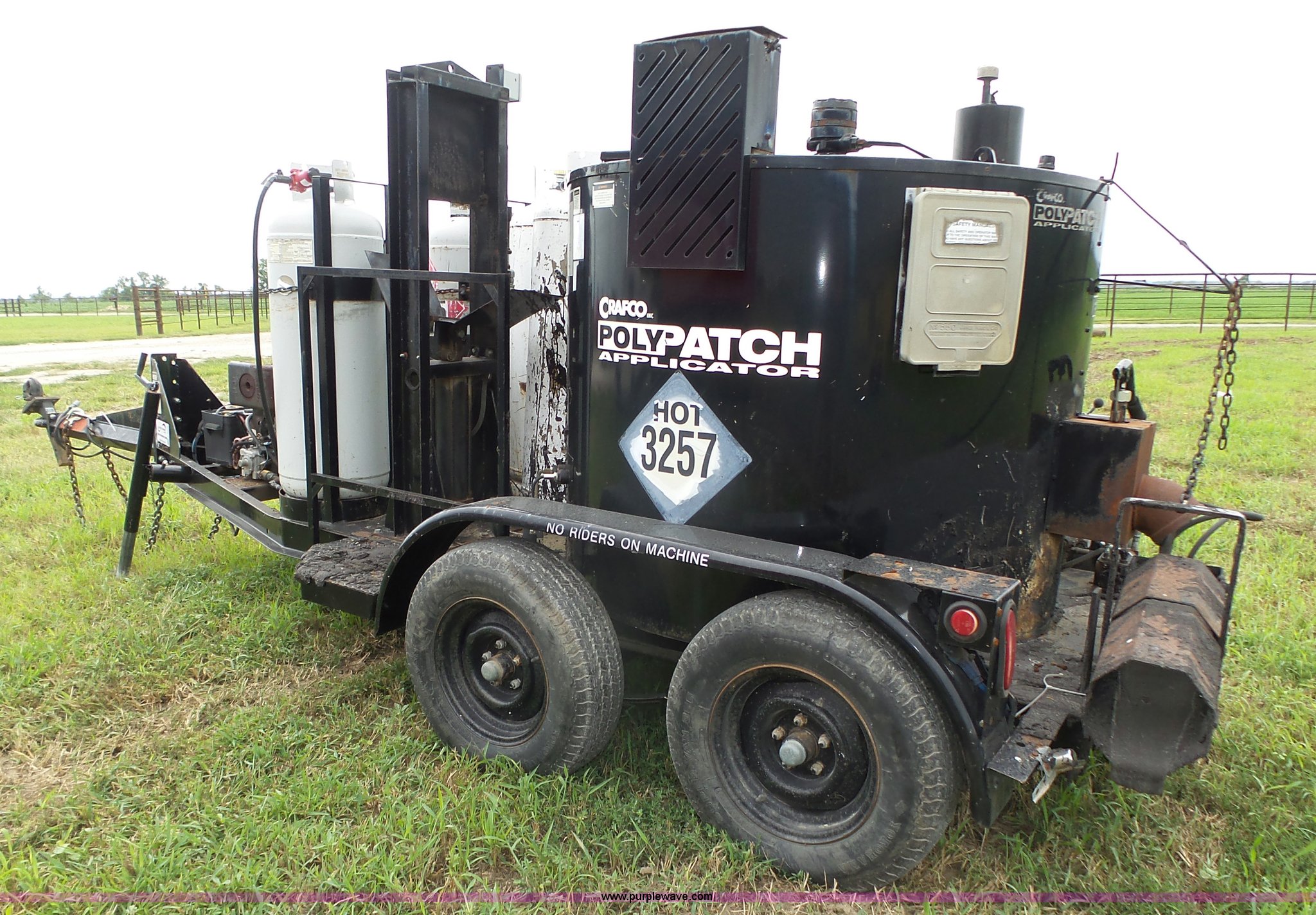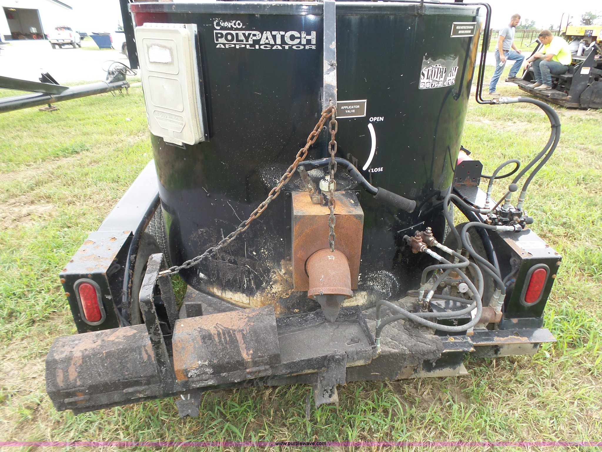 Purple Wave is selling a used Pot Hole Patcher in Iowa. This item is a 2001 Crafco Poly Patch Applicator pot hole patcher with the following: 191 hours on meter, Kohler Command Pro14 single cylinder gas engine, Control valve body for tank mixer, Heating torch, Product hydraulic splitter, (2) propane bottles, 100 lbs per bottle capacity, Rear applicator adjustable swing chute, Safety chains, Break-away cable, Pintle hitch, Truck pintle receiver hitch included, Tandem axle, Yokohama 185/R14 tires, Patch application product included, Unit# 4-0331