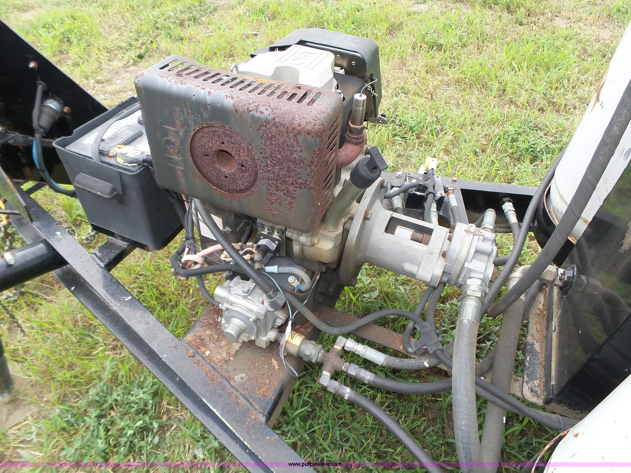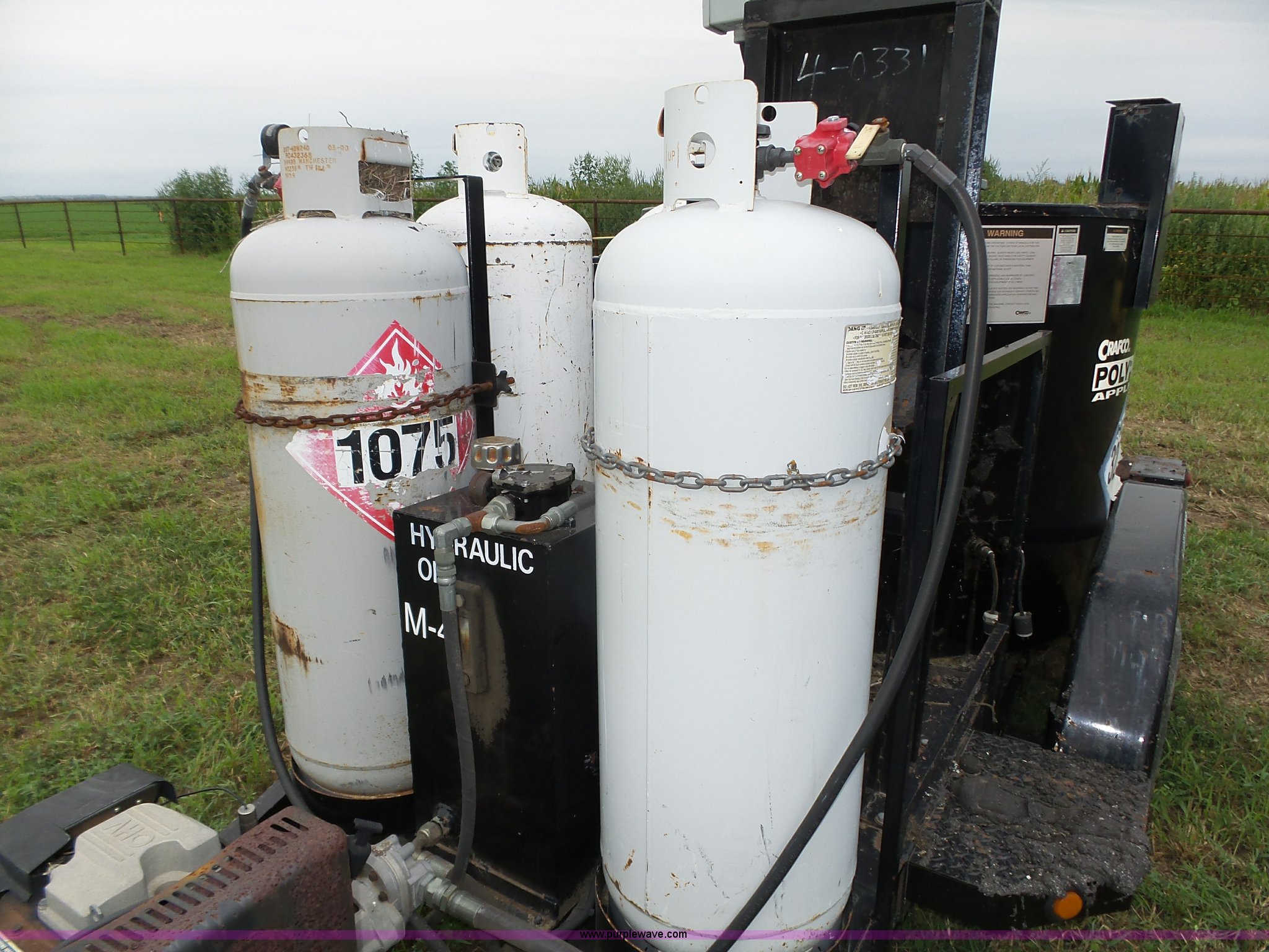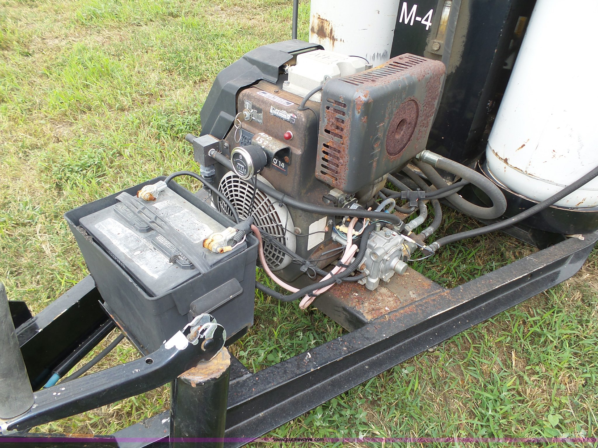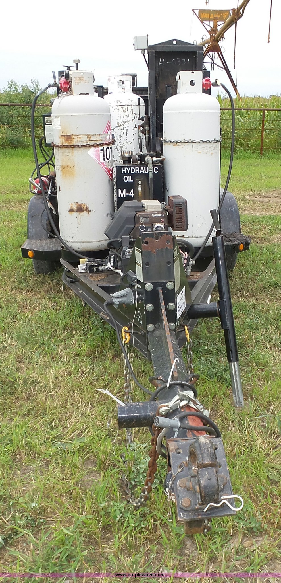 Purple Wave is selling a used Pot Hole Patcher in Iowa. This item is a 2001 Crafco Poly Patch Applicator pot hole patcher with the following: 191 hours on meter, Kohler Command Pro14 single cylinder gas engine, Control valve body for tank mixer, Heating torch, Product hydraulic splitter, (2) propane bottles, 100 lbs per bottle capacity, Rear applicator adjustable swing chute, Safety chains, Break-away cable, Pintle hitch, Truck pintle receiver hitch included, Tandem axle, Yokohama 185/R14 tires, Patch application product included, Unit# 4-0331