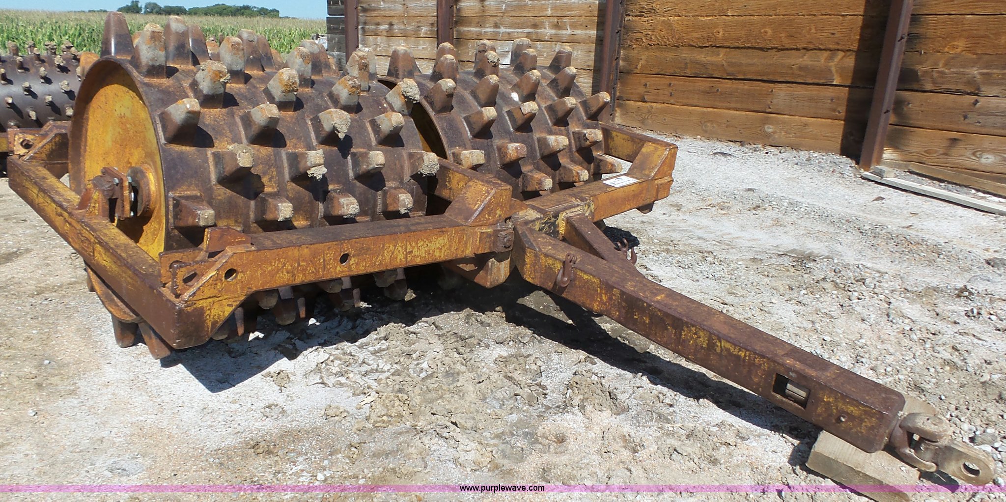 Etourneau double drum padfoot roller. 48"W x 42" diameter drums, 5"L x 4"W x 7"H pads, 114"W O.D., 100"W compaction area, Swivel frame, 78"L tongue Swivel clevis hitch, Rear tow hook. Seward County. 3427 Waverly Road. Seward, NE 68434