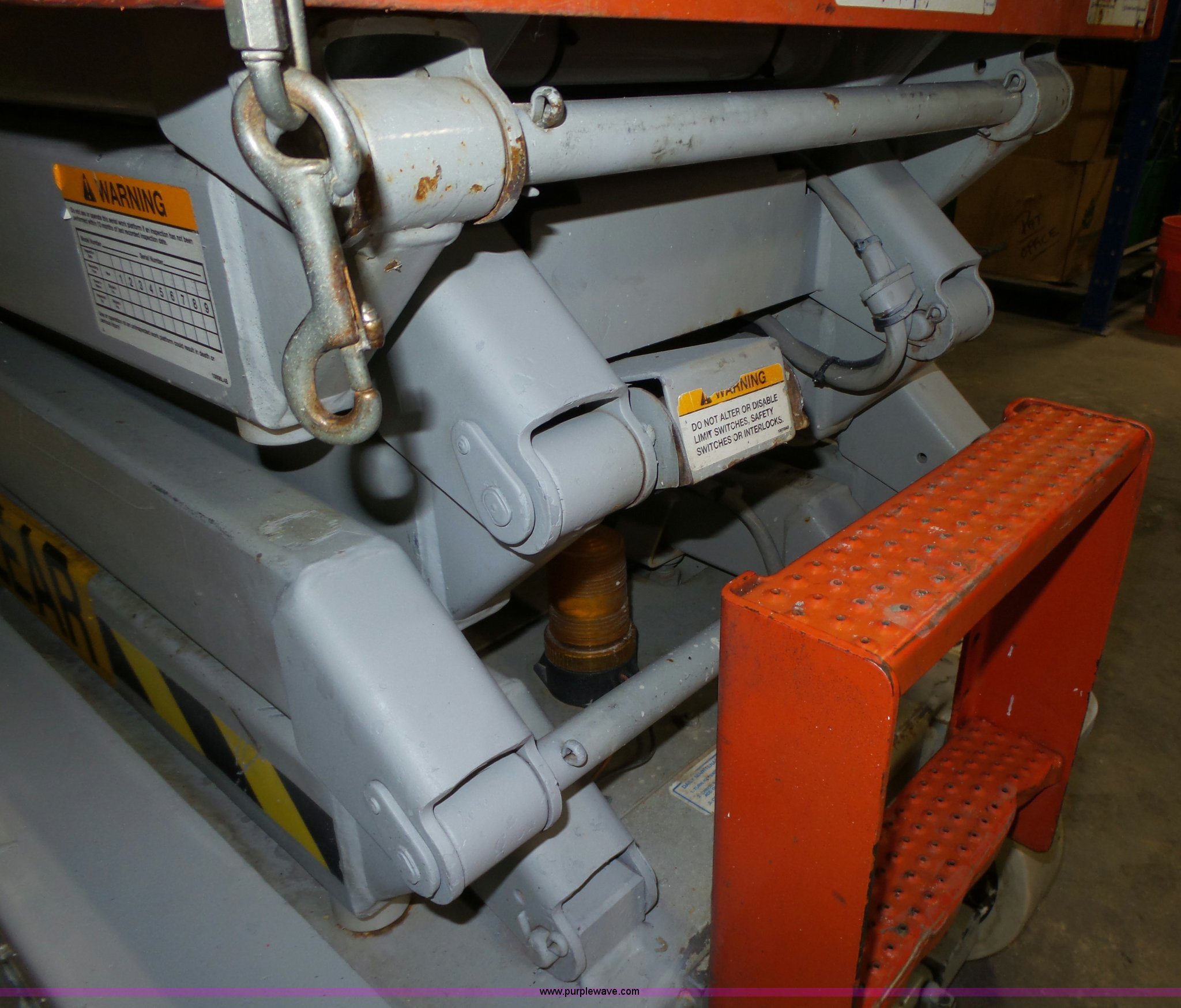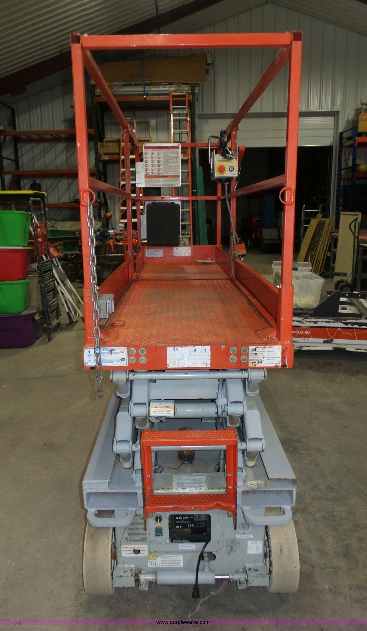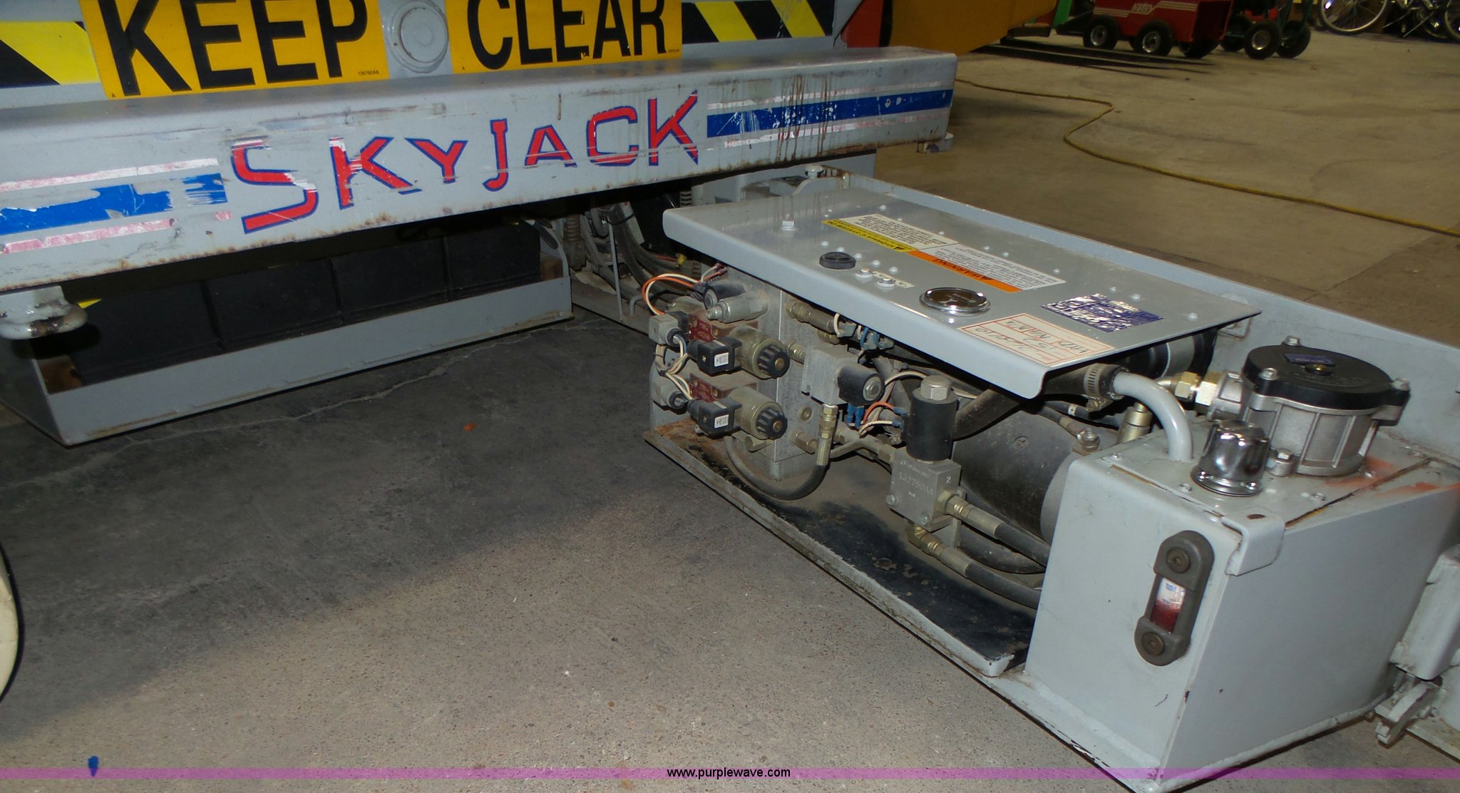 Purple Wave is selling a used Scissor or Vertical Lift in Nebraska. This item is a 2004 Sky Jack SJIII 3219 scissor lift with the following: 280 hours on meter, Electric operation, 500 lbs maximum lift capacity, 19' maximum lift height, 19' full mast drive height, 80" lowered height, 64"L x 29"W platform, 36" deck extension, 97"L O.D. with deck extended, Platform and ground controls, AC power outlet, Floor mounted D-ring tie downs, Chain safety gate, Pot hole protectors, Safety alarm, Free wheeling capability, Master battery shutoff, Non-marking tires, Skyjack HB600-24B battery charger, 24V, Operator's manual, Safety manual, ANSI manual, Serial 243022, Unit# 656259