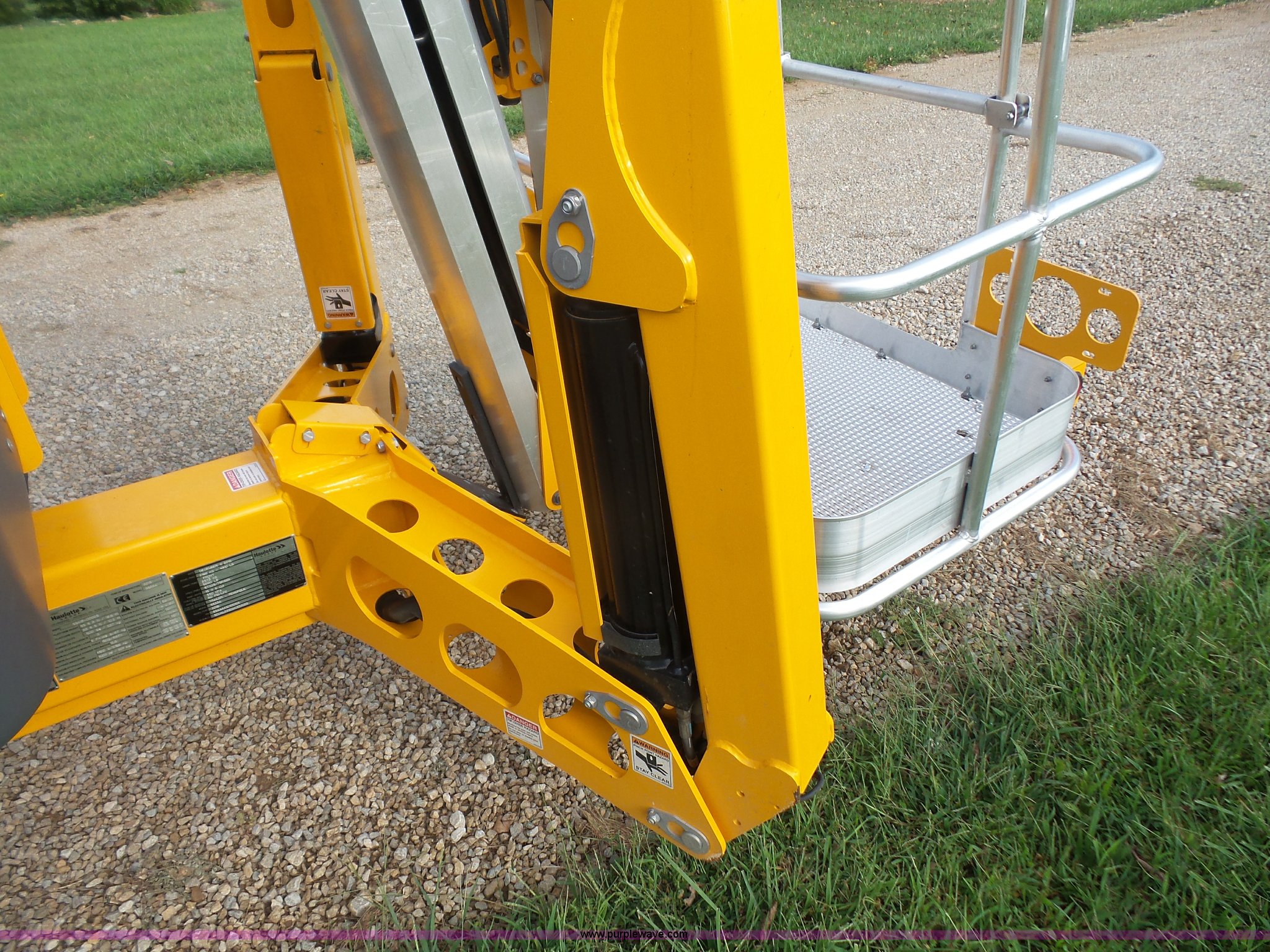 2015 Haulotte 5533A towable boom lift. 88 hours on meter, 943 total hours, 24V operation, 500 lbs maximum lift capacity, 33'5" maximum reach length, 55'3" maximum lift height, Articulating boom, 4'L x 2.5'W platform Platform and ground controls, Hydraulic platform rotation, Hydraulic outriggers, 2" ball hitch, 225/75R15 tires, Unit has been tipped over and repaired, Serial 55A16-00025. Berryton, KS 66409