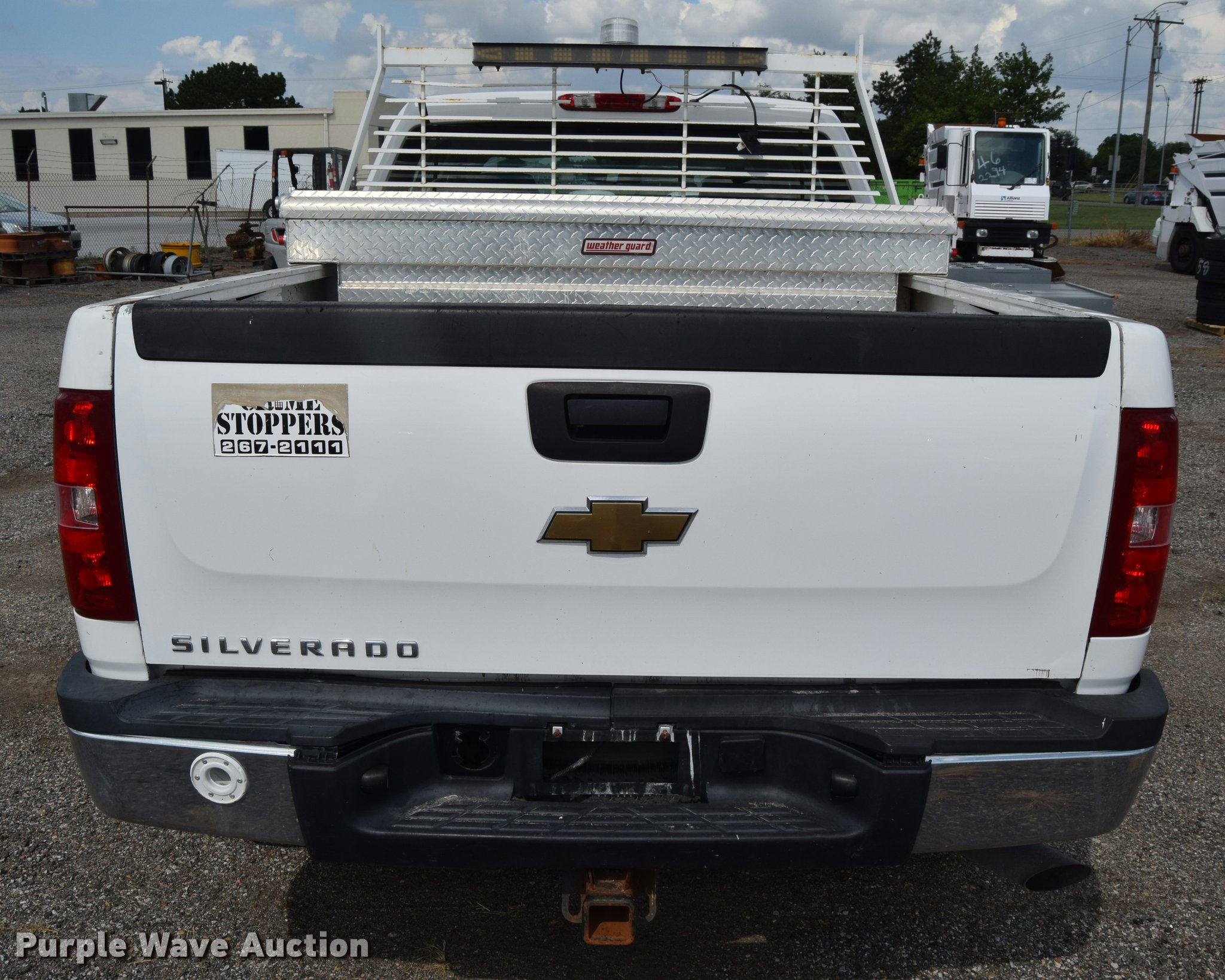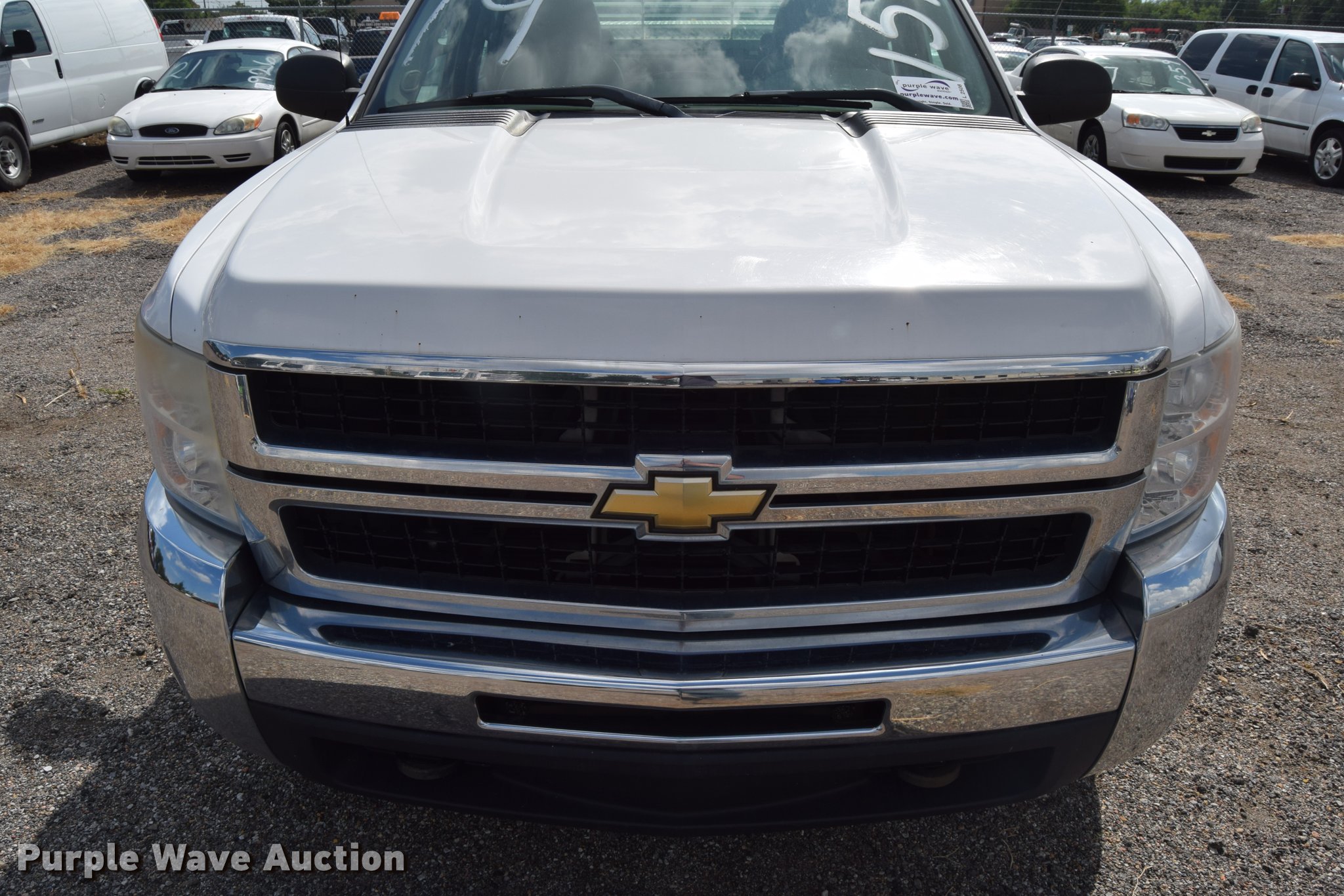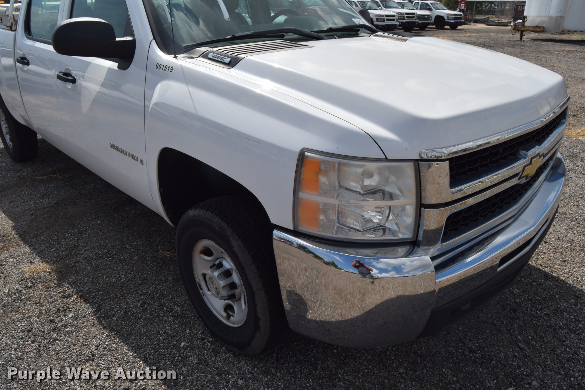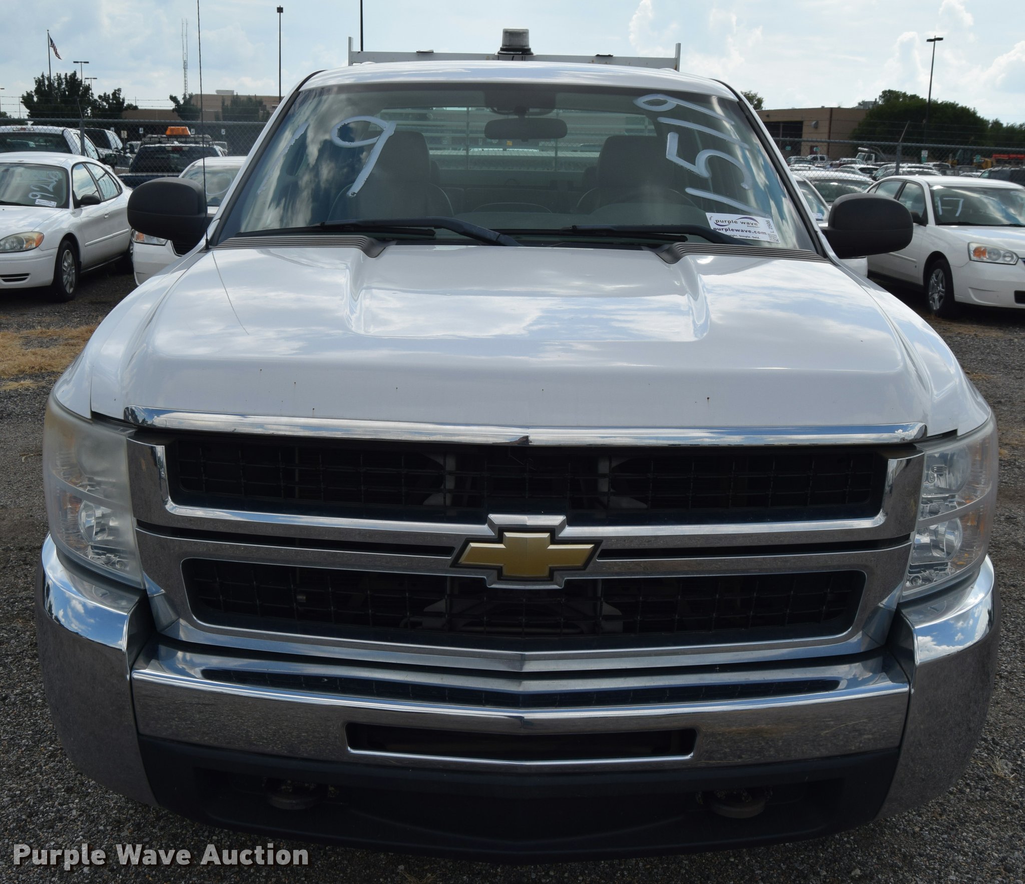Purple Wave is selling a used 3/4 or 1 Ton Pickup or Van in Kansas. This item is a 2007 Chevrolet Silverado 2500HD Crew Cab pickup truck with the following: 82,162 miles on odometer, 6.0L V8 OHV 16V gas engine, Automatic transmission, AC and heat, Tilt, AM/FM, Manual windows, Power locks, Vinyl interior, Headache rack, Strobe light, Front tow hook, Receiver hitch, Trailer wiring, LT245/75R16 tires, Trailer outlet missing, Battery weak, Body damage, Rear bumper damage, Rust, Unit# 1519