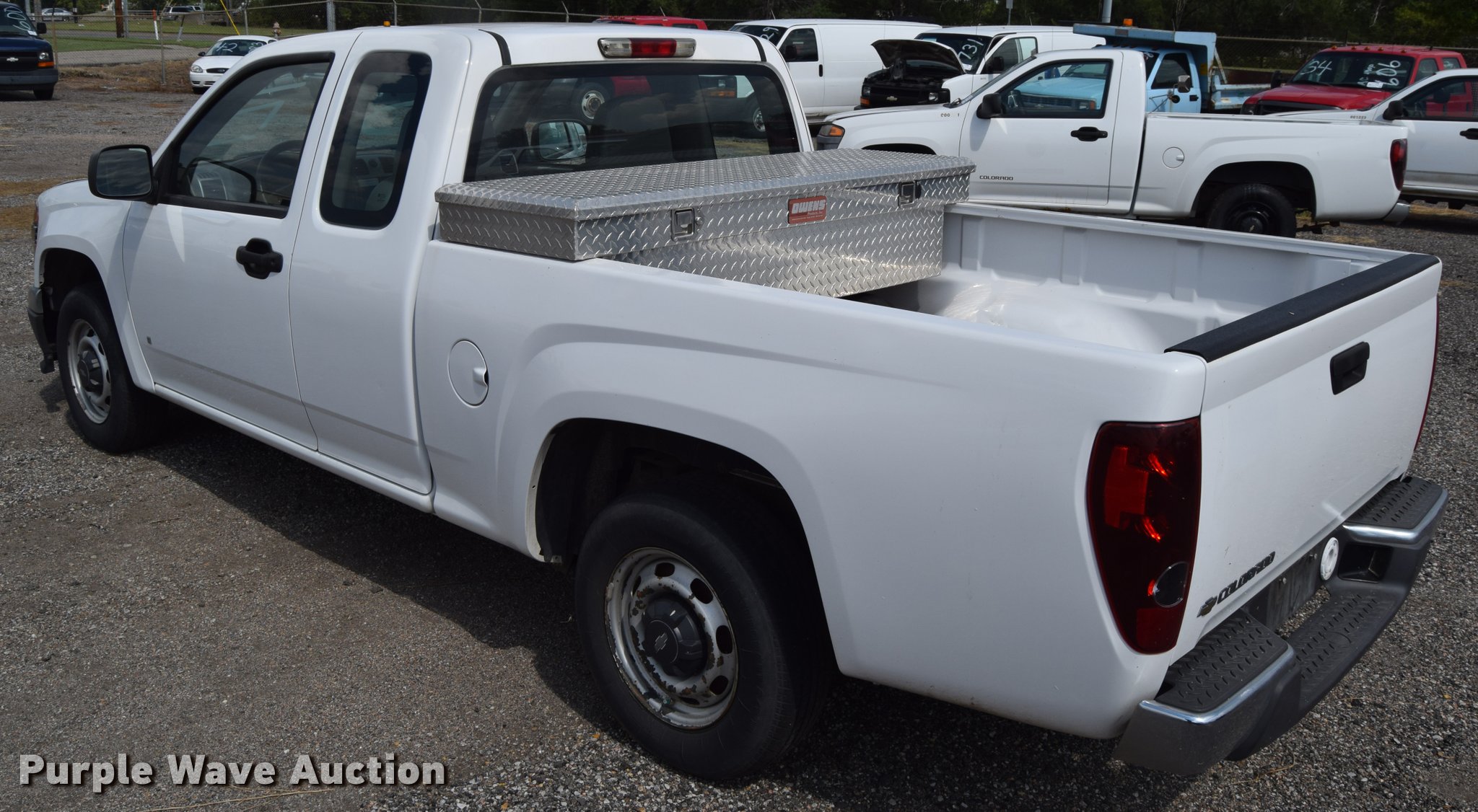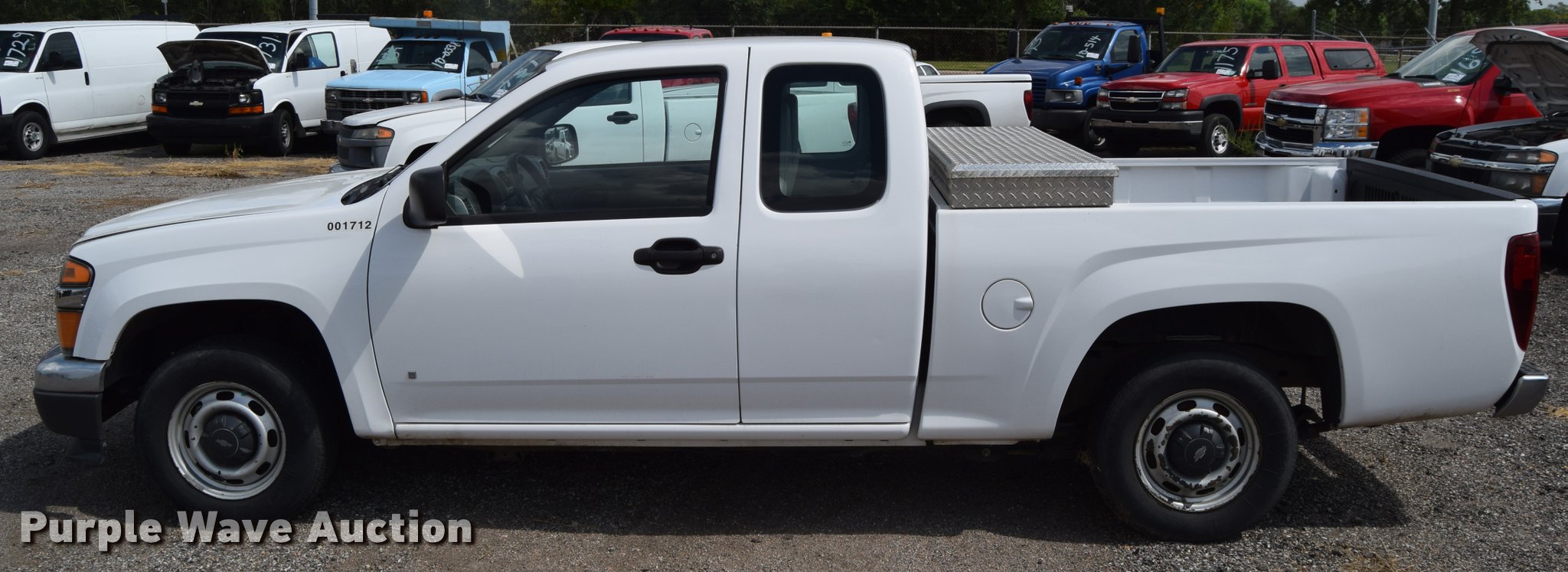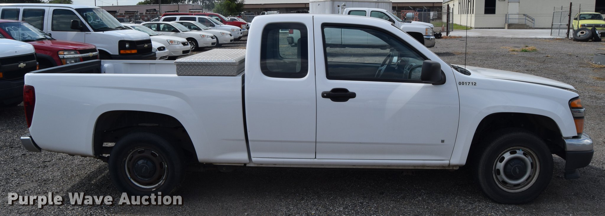Purple Wave is selling a used Compact Pickup or Van in Kansas. This item is a 2008 Chevrolet Colorado pickup truck with the following: 62,945 miles on odometer, 3.7L L5 DOHC 20V gas engine, AC and heat, Tilt, Cruise, AM/FM, Manual windows and locks, Vinyl interior, P205/75R15 tires, Battery weak, Hail damage, Unit# 1712