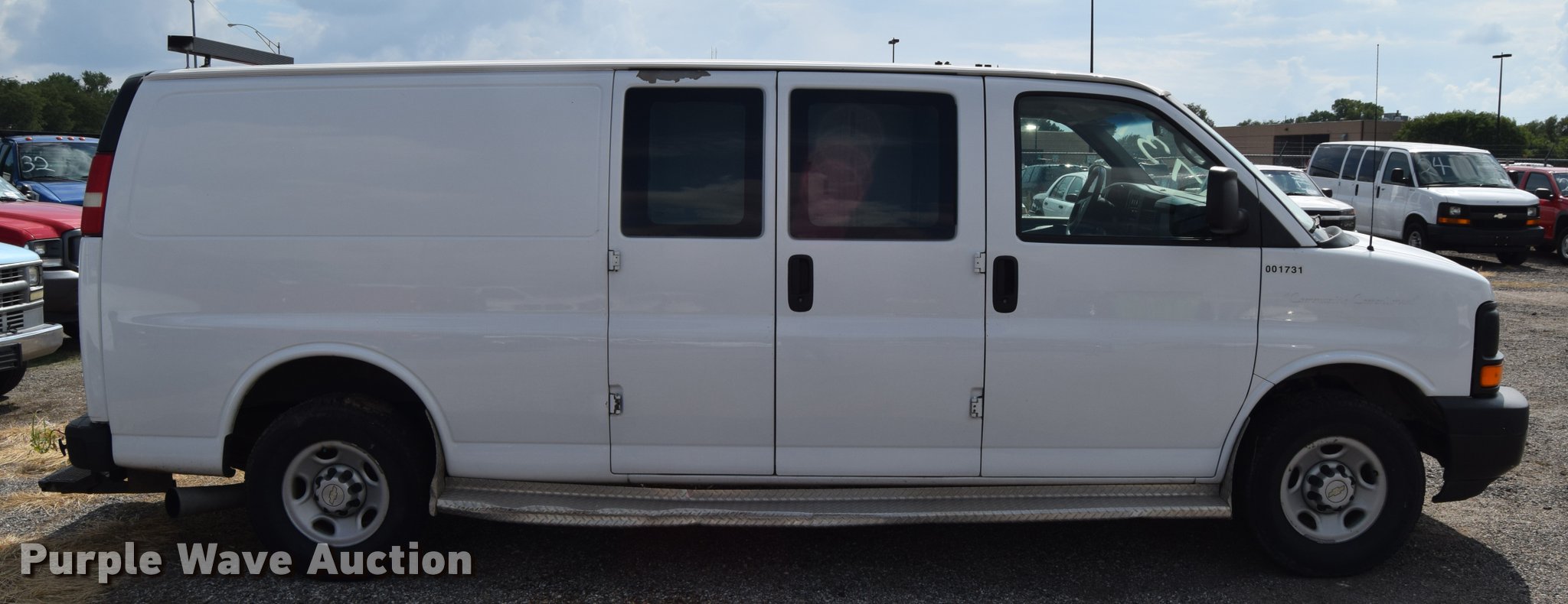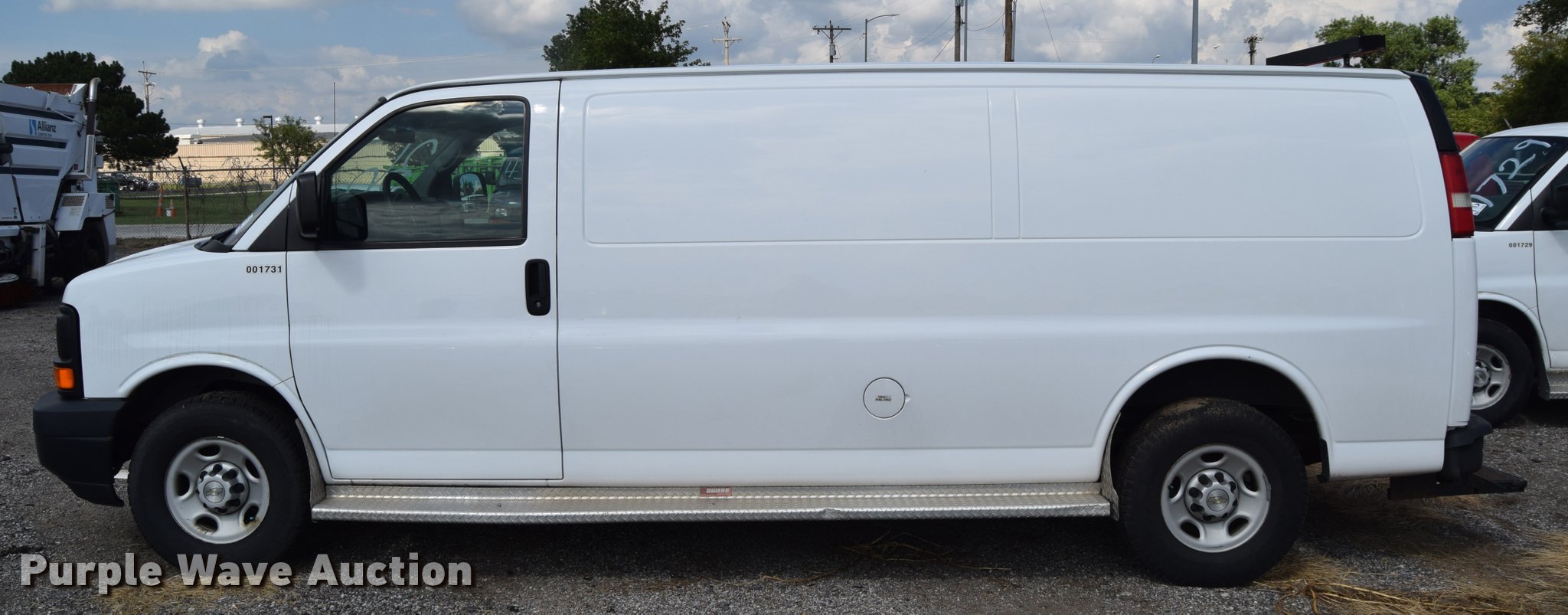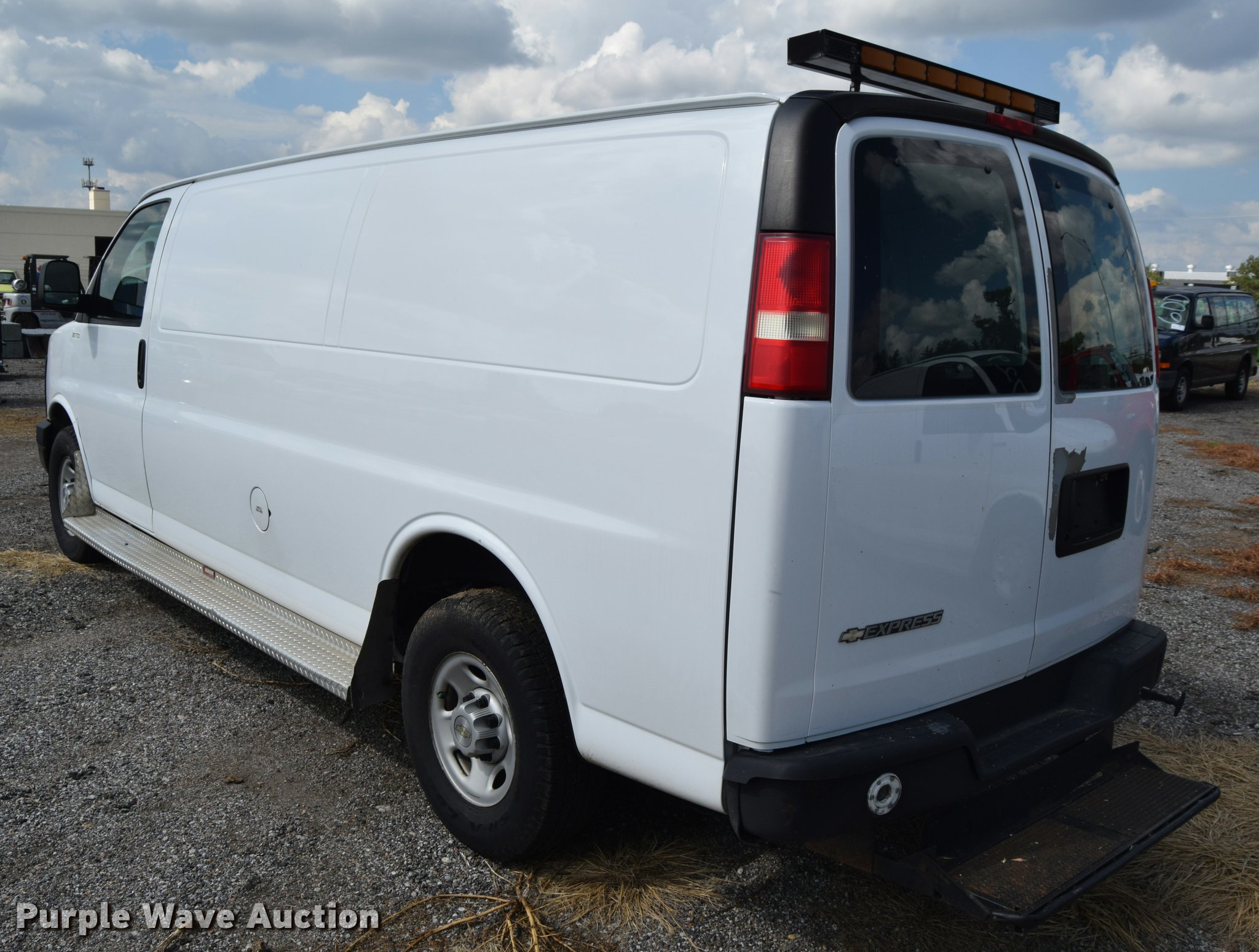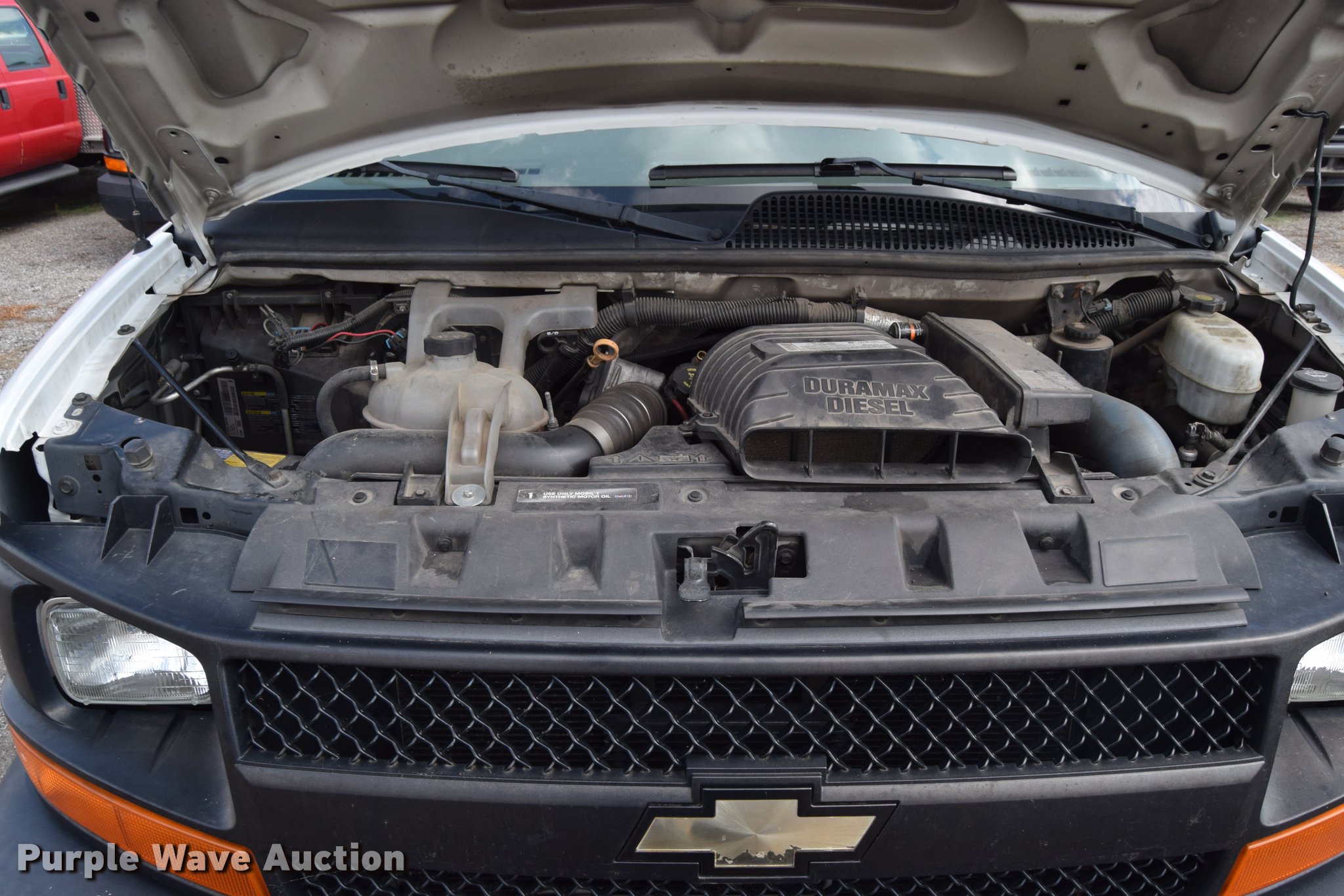 Purple Wave is selling a used 3/4 or 1 Ton Pickup or Van in Kansas. This item is a 2008 Chevrolet Express 3500 Extended Cargo van with the following: 113,578 miles on odometer, 6.6L V8 OHV 32V turbo diesel engine, Automatic transmission, AC and heat, Tilt, Cruise, AM/FM, Power windows, locks, and mirrors, Vinyl interior, Running boards, Step-up bumper, Strobe light, LT245/75R16 tires, Windshield chipped, Battery weak, Port holes in roof, Paint peeling, Running boards damaged, Unit# 1731