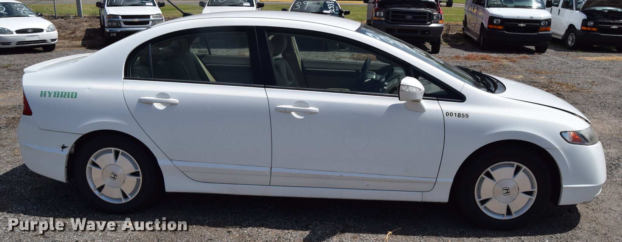 Purple Wave is selling a used Passenger Vehicle in Kansas. This item is a 2008 Honda Civic Hybrid CVT AT-PZEV with the following: 33,586 miles on odometer, 1.3L L4 SOHC 8V hybrid gas engine, Automatic transmission, AC and heat, Tilt, Cruise, AM/FM/CD, Power windows, locks, and mirrors, Cloth interior, 195/65R16 tires, Hail damage, Paint peeling, Unit# 001855