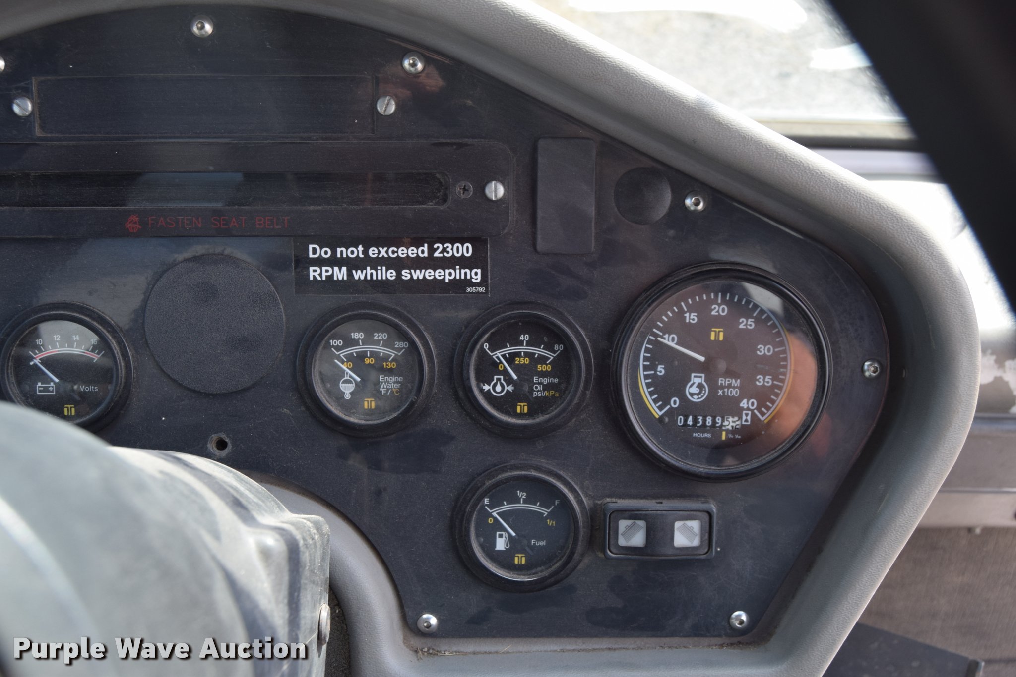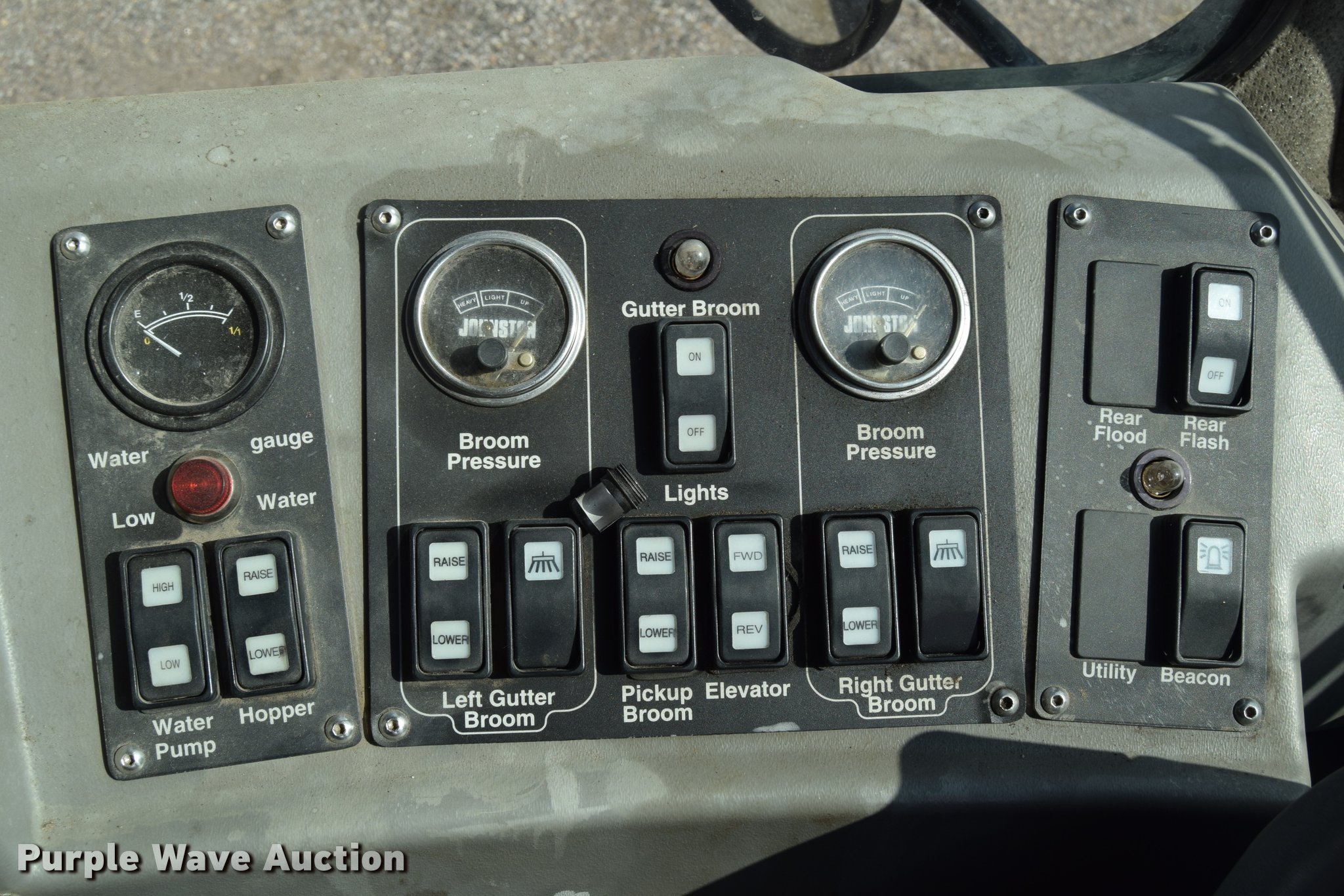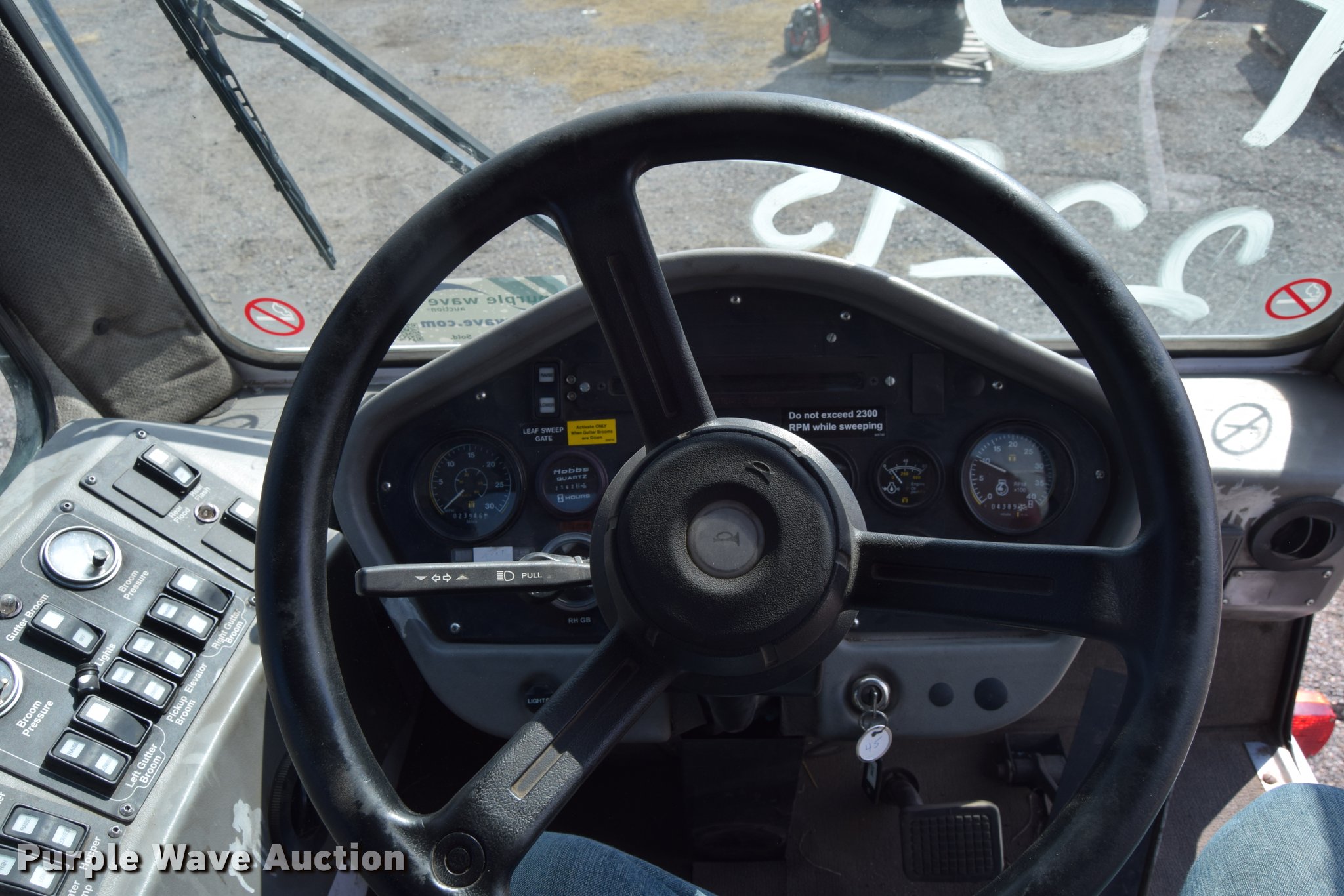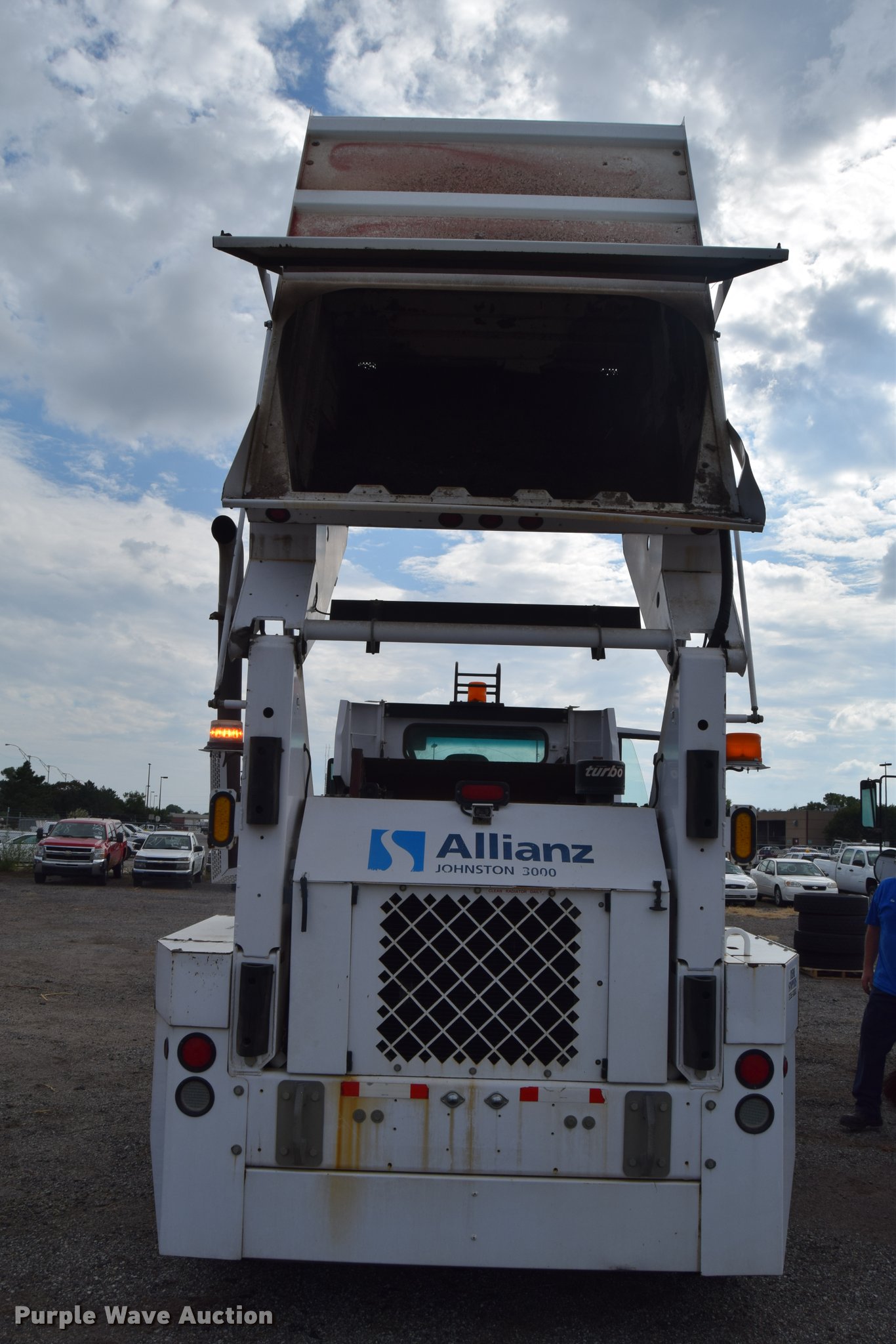 Purple Wave is selling a used Sweeper in Kansas. This item is a 2010 Allianz Johnston 3000 street sweeper with the following: 23,946 miles on odometer, 4,389 engine hours on meter, 2,162 left gutter broom hours, 2,190 right gutter broom hours, 2,375 pickup broom hours, John Deere 4045T turbo diesel engine, Automatic transmission, Enclosed cab, AC and heat, Tilt, Suspension seat, Instructor's seat, Video monitoring system, Traffic assist arrow, Beacon light, 47" left and right side gutter brooms, Main broom/sweeper elevator, 58" dirt conveying system, Dumping debris hopper, 5.6 cu. yd. capacity, Water system, Hydraulic drive sweeping system, 125" sweeping path, 23 mph road speed, 200 gallon water tank, 11R22.5 tires