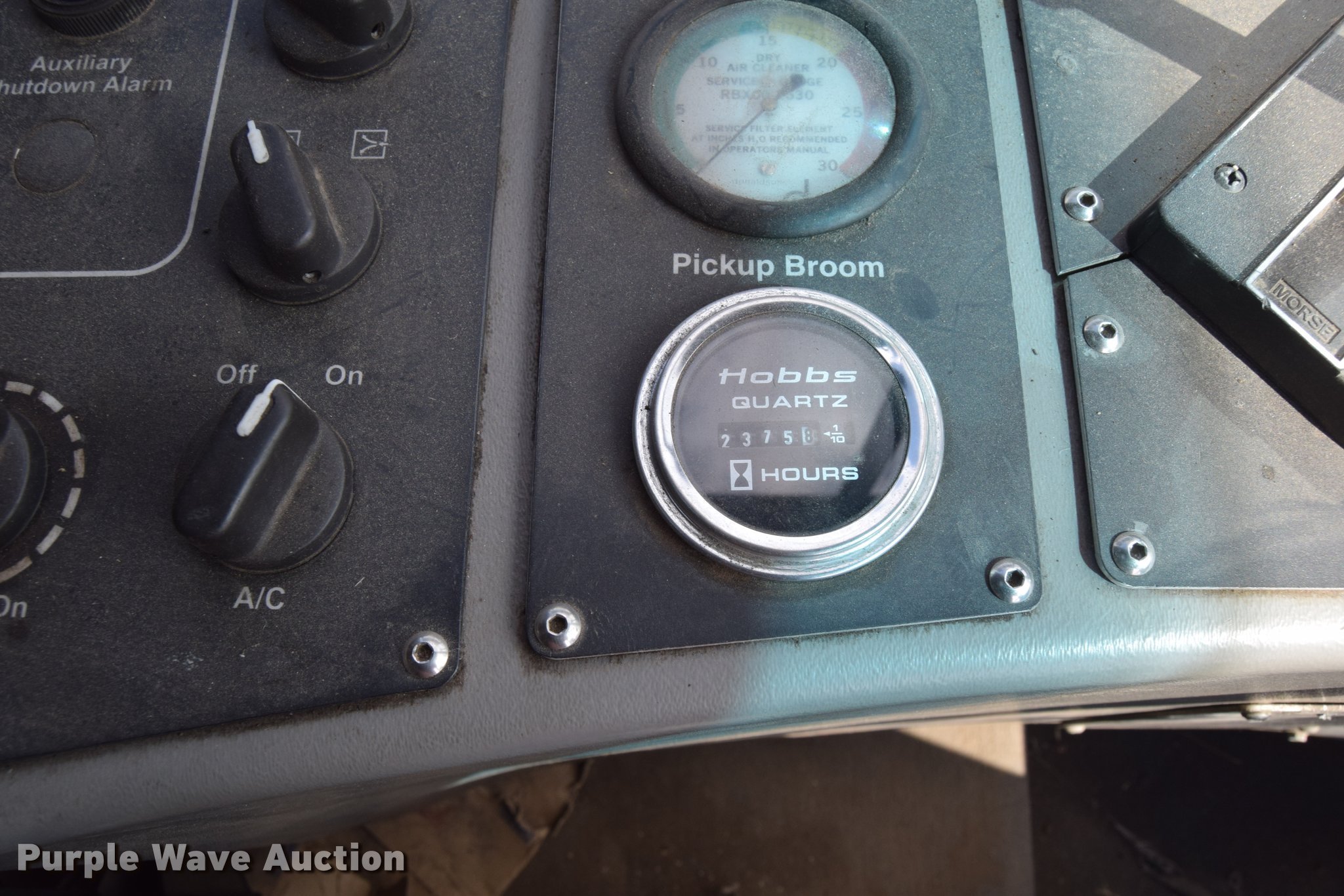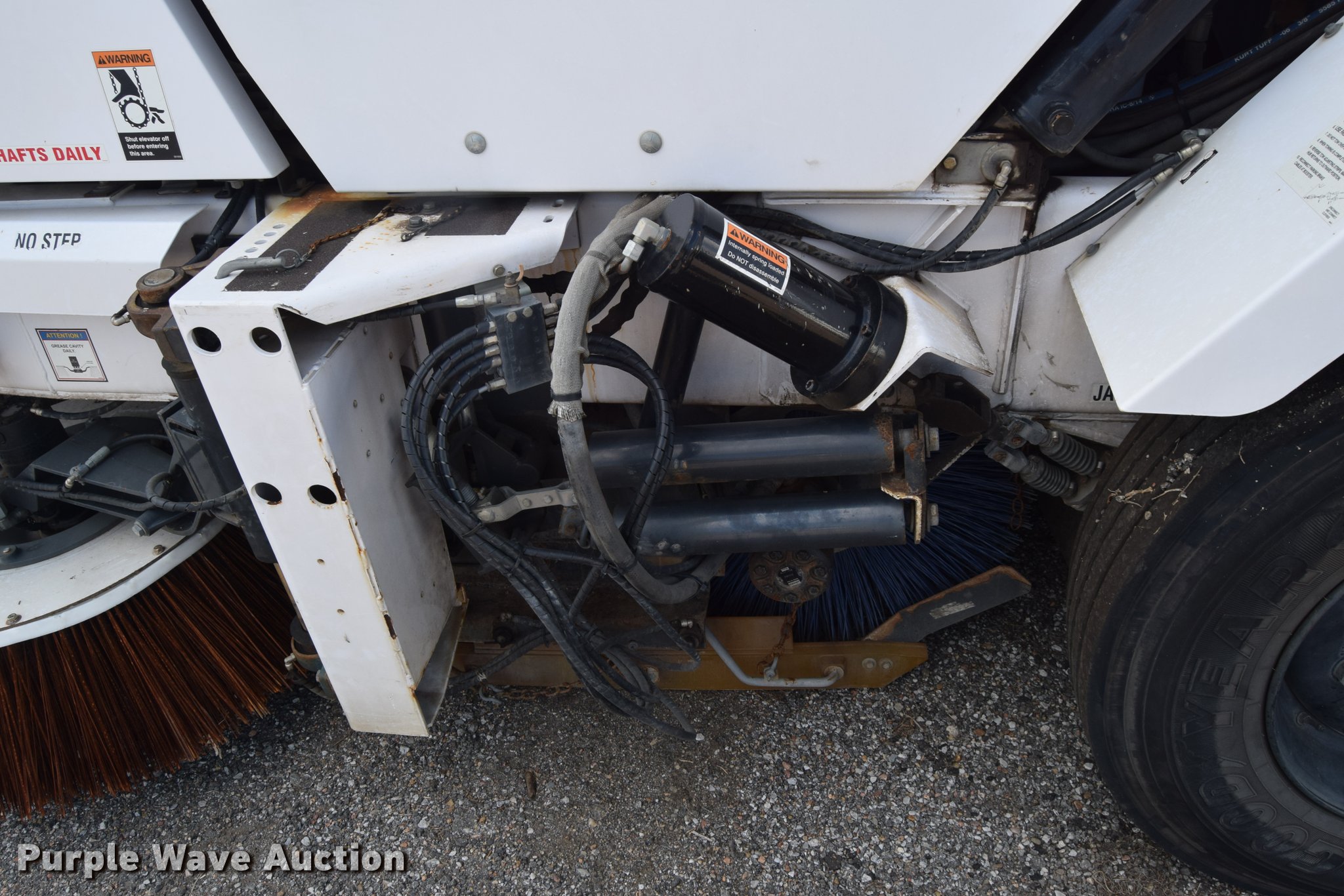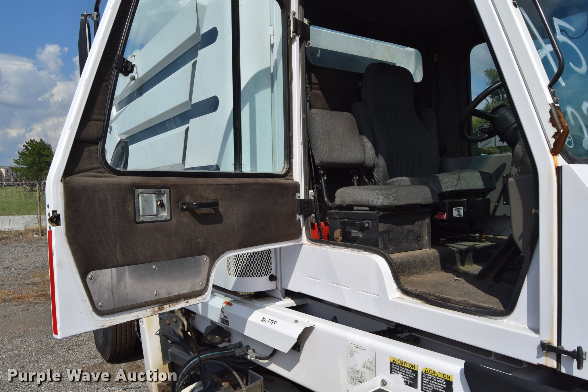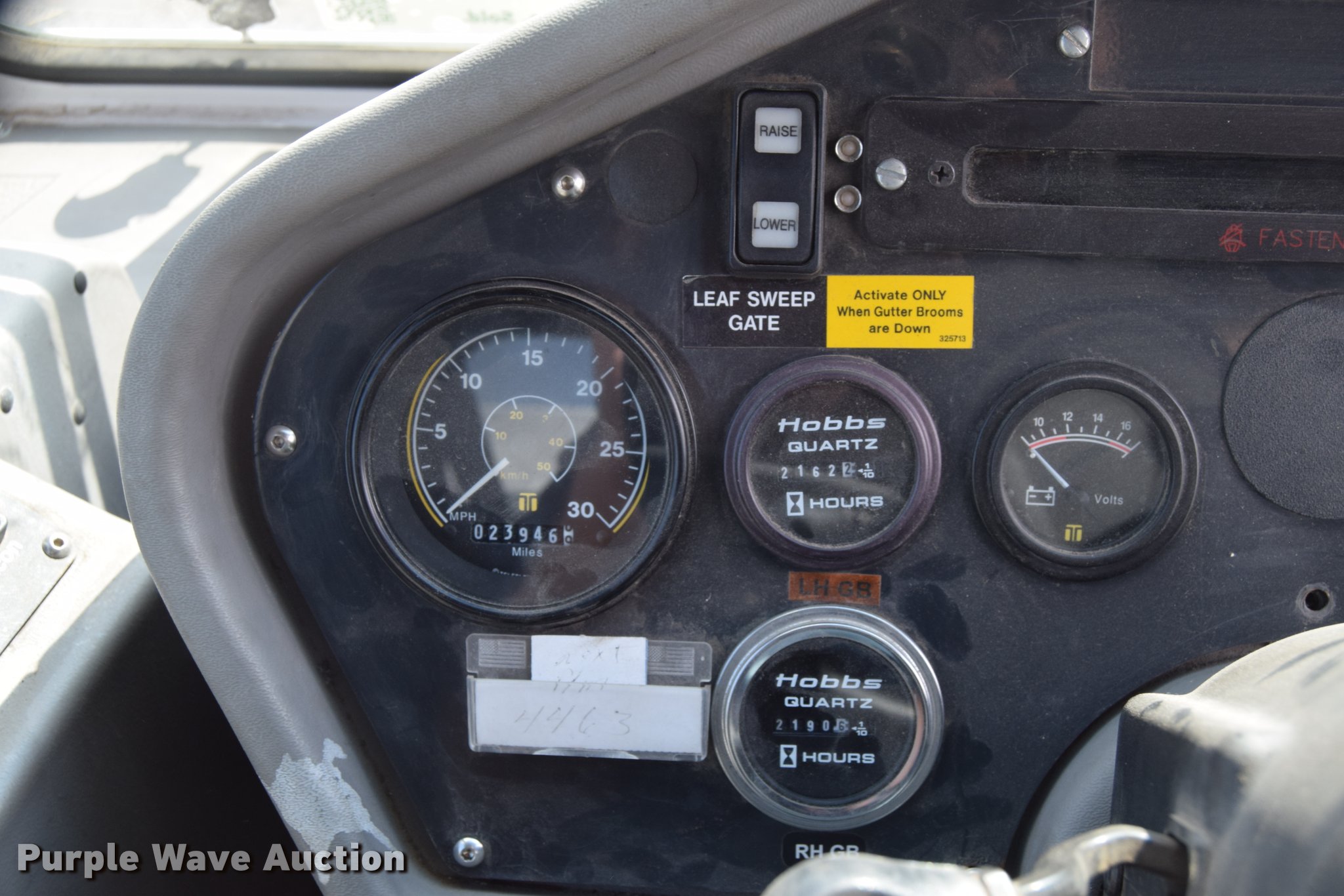 Purple Wave is selling a used Sweeper in Kansas. This item is a 2010 Allianz Johnston 3000 street sweeper with the following: 23,946 miles on odometer, 4,389 engine hours on meter, 2,162 left gutter broom hours, 2,190 right gutter broom hours, 2,375 pickup broom hours, John Deere 4045T turbo diesel engine, Automatic transmission, Enclosed cab, AC and heat, Tilt, Suspension seat, Instructor's seat, Video monitoring system, Traffic assist arrow, Beacon light, 47" left and right side gutter brooms, Main broom/sweeper elevator, 58" dirt conveying system, Dumping debris hopper, 5.6 cu. yd. capacity, Water system, Hydraulic drive sweeping system, 125" sweeping path, 23 mph road speed, 200 gallon water tank, 11R22.5 tires