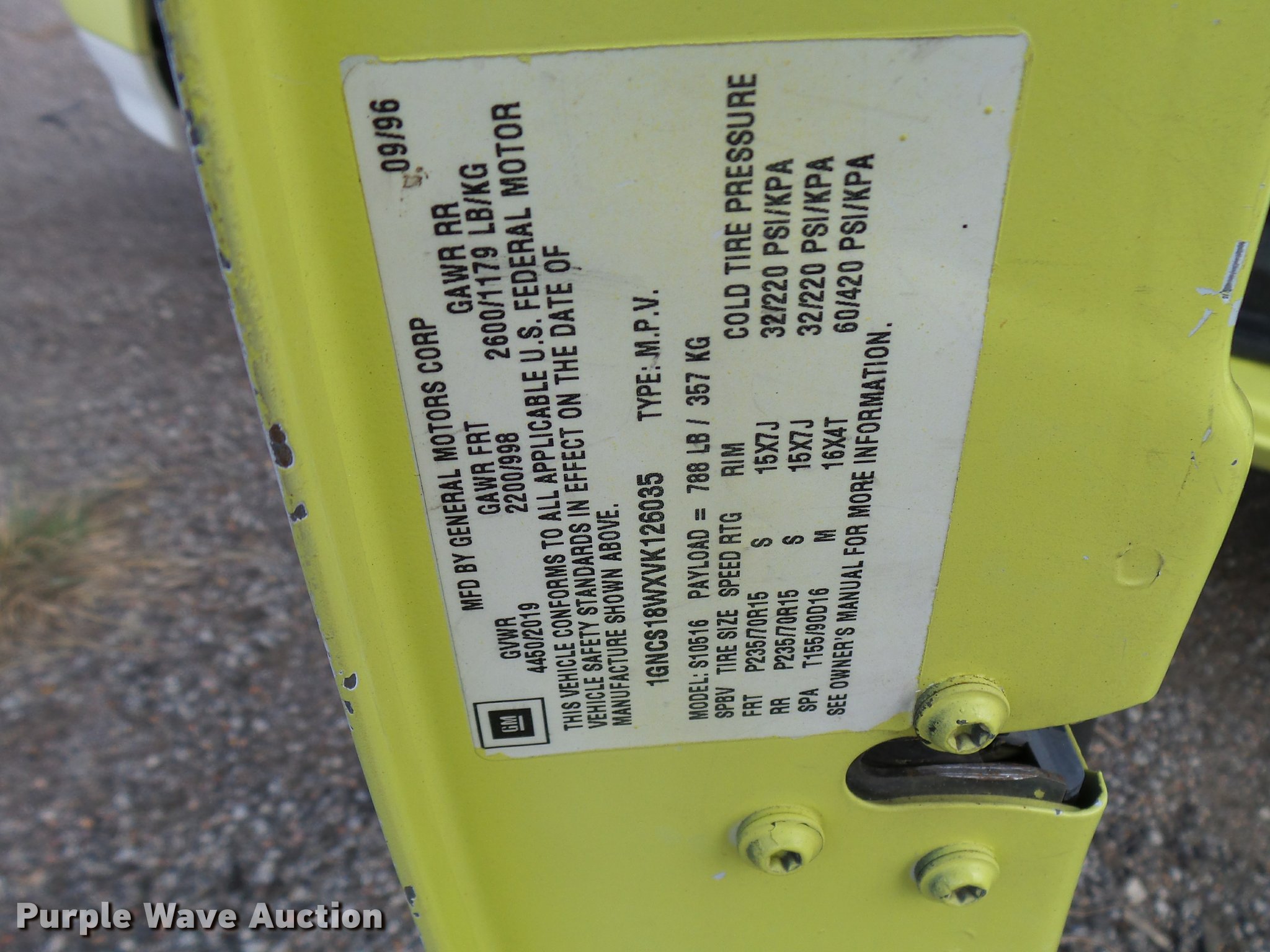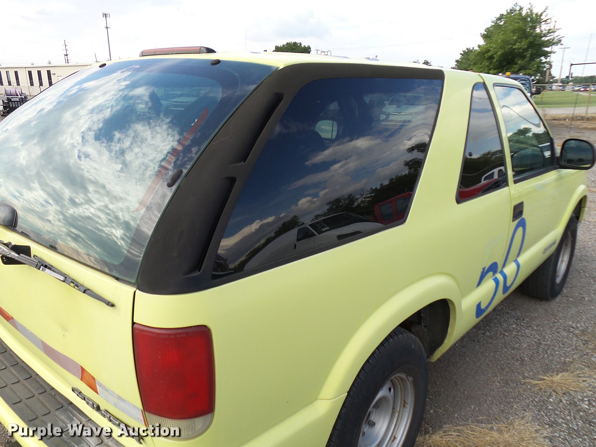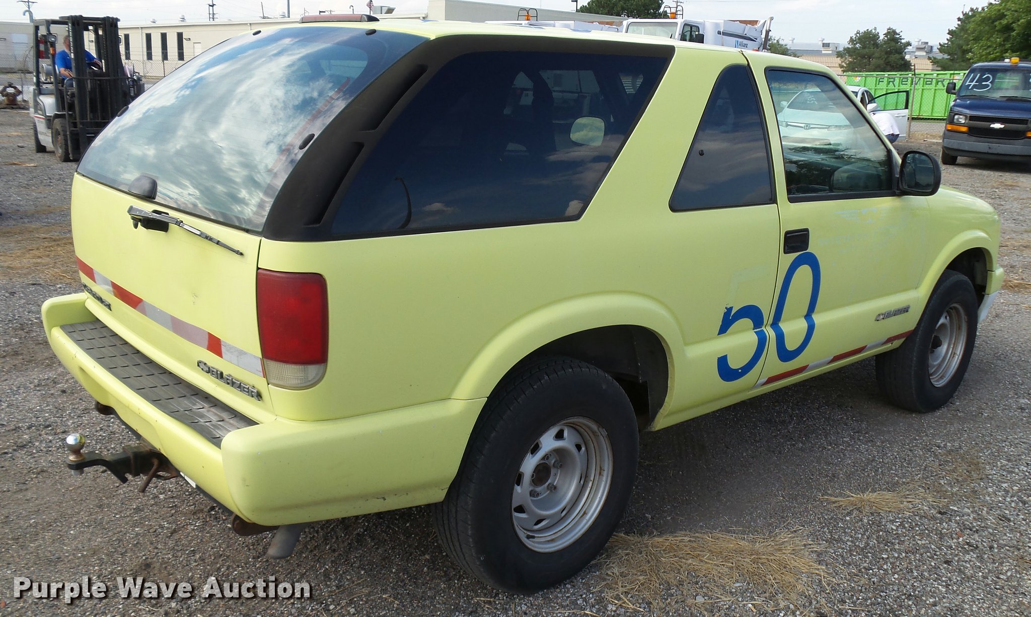 1997 Chevrolet Blazer SUV. 89,215 miles on odometer, 3,145 hours on meter, 4.3L V6 OHV 12V gas engine, Automatic transmission, Two wheel drive, AC and heat, AM/FM, Manual windows and locks, Cloth interior, Fog lights, Receiver hitch, 225/75R15 tires, Chipped windshield, Port hole in roof, Front bumper damage, Body damage, Unit# APA. Kansas title. 1GNCS18WXVK126035. City of Wichita Central Maintenance Facility. 1801 S McLean. Wichita, KS 67213