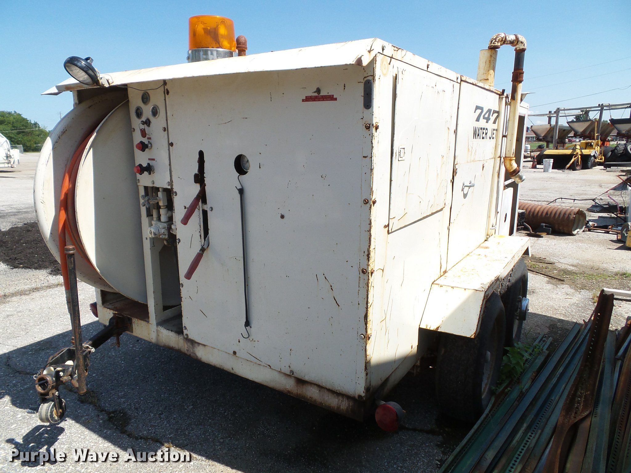 Water jet. Model 747, Ford four cylinder engine, Rockford PTO, Work light, Strobe light, Approx. 500' hose with reel, Assorted nozzles, 300 to 400 lbs pump pressure, 2 5/16" ball hitch, Safety chains, Tandem axle, 15" tires. This is worksite support equipment and will not come with a title. Osage City, KS 66523