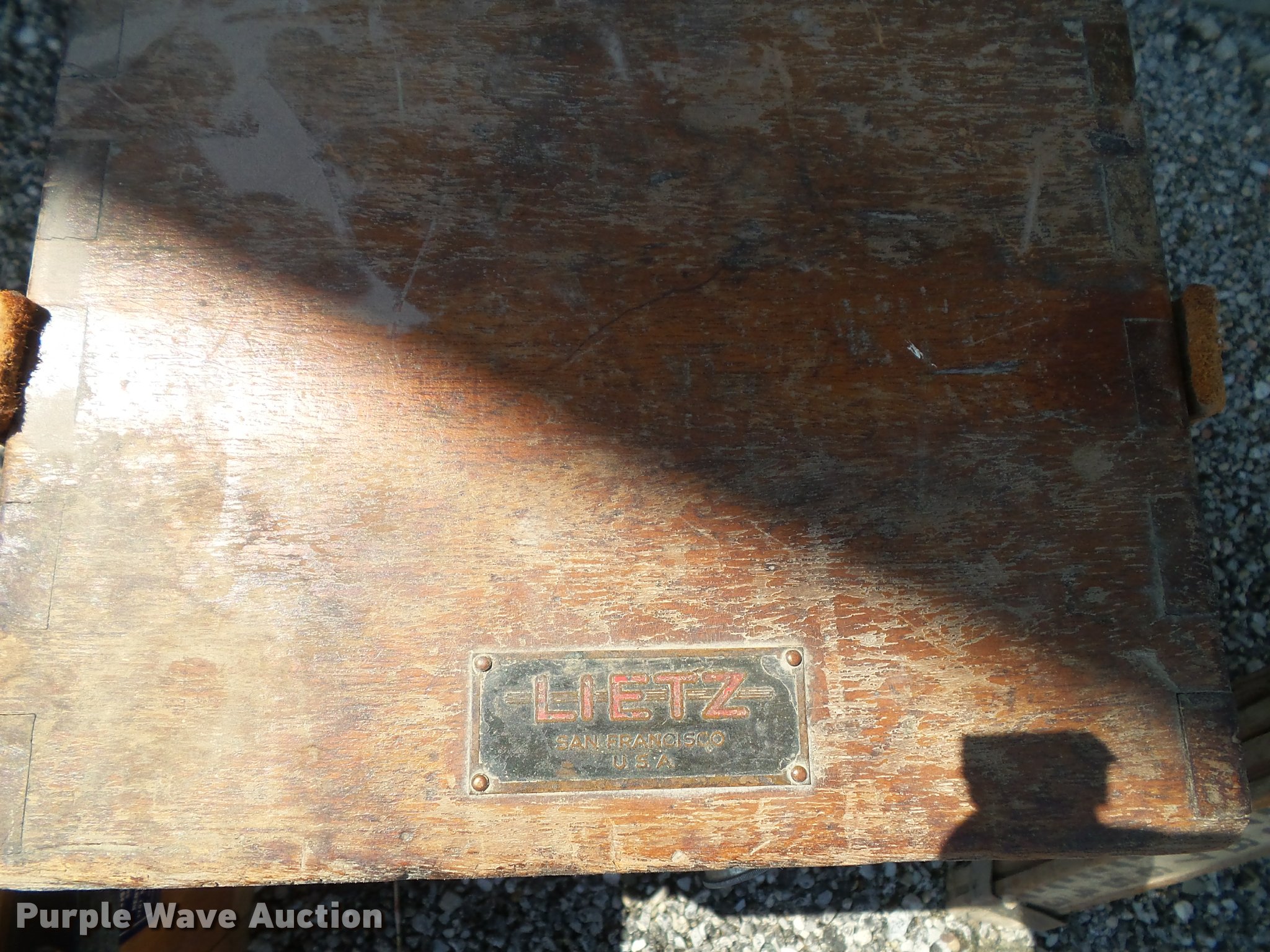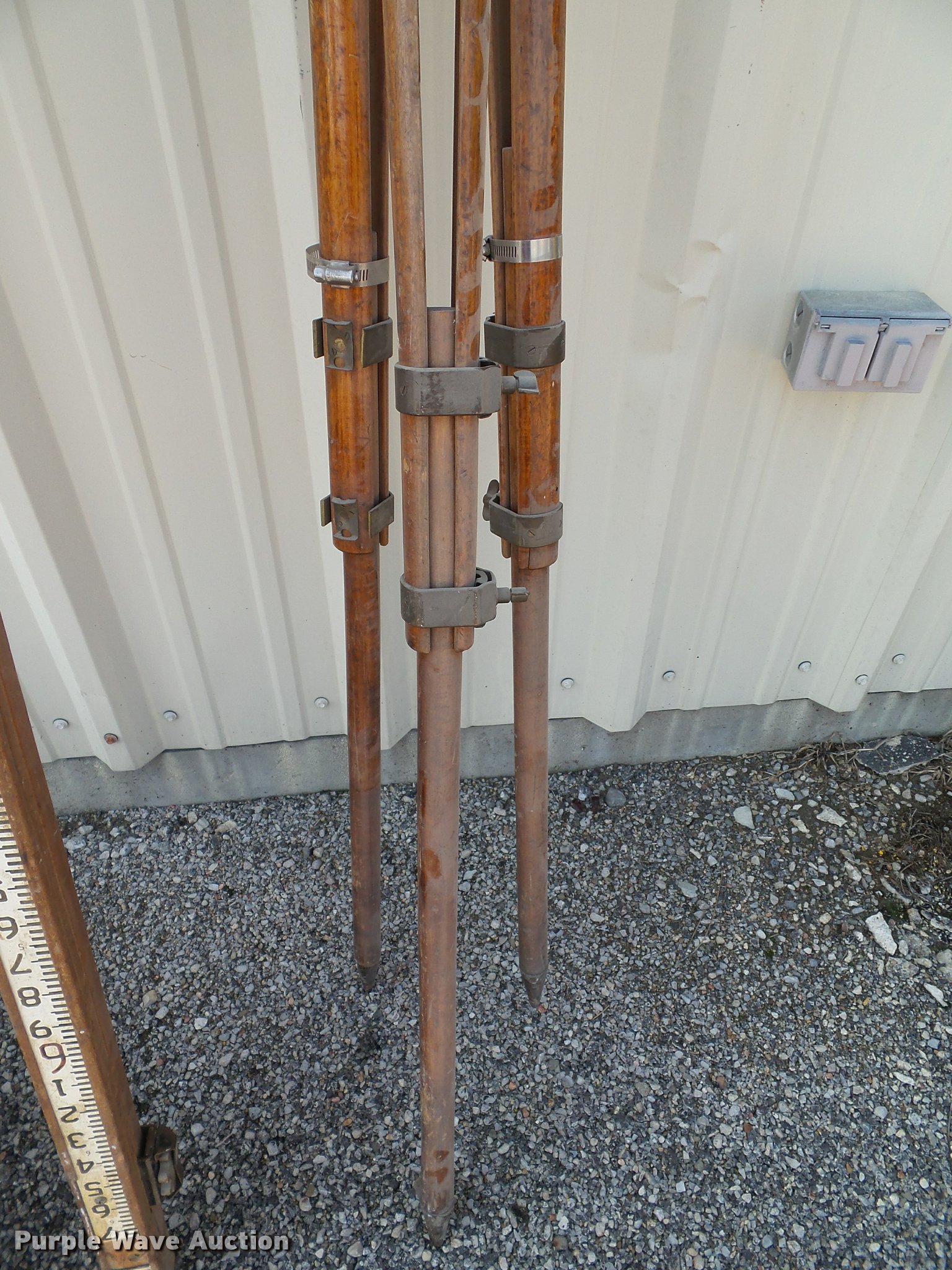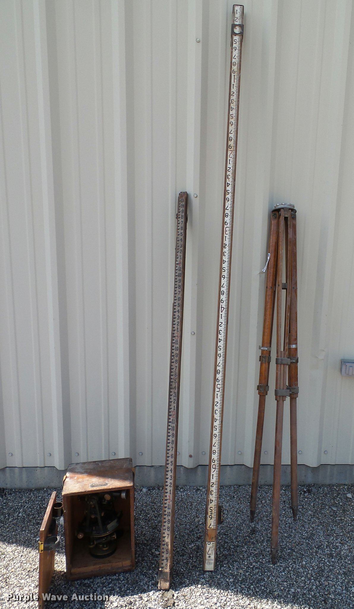 Purple Wave is selling a used Surveying Equip. in Kansas. This item is a Surveying equipment with the following: Wood tripod, (2) measuring sticks, 1959 Griner & Schmitz/Lietz transit level, Wood box
