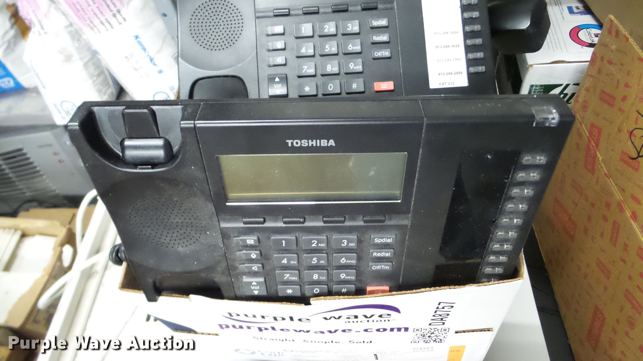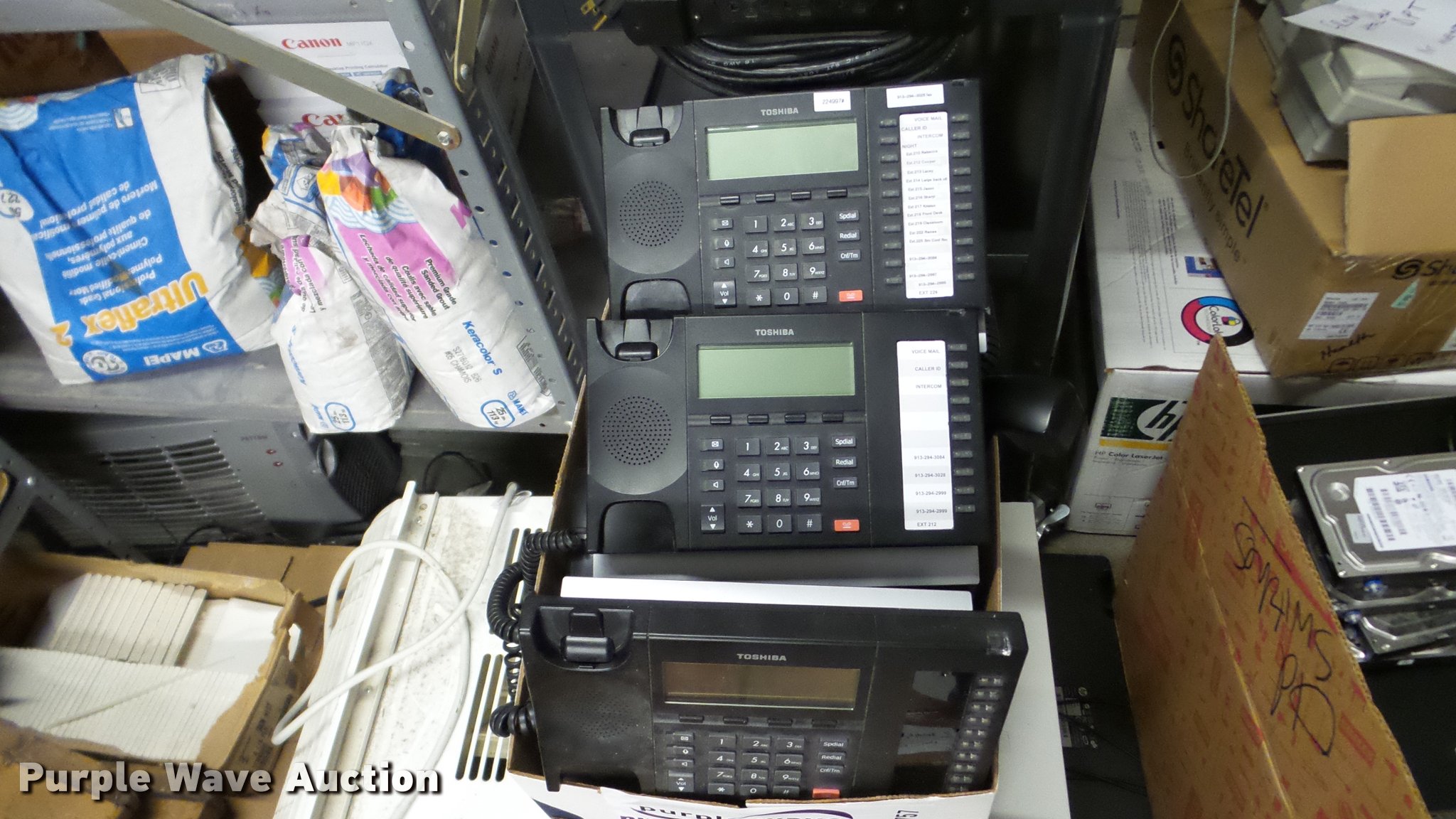 Purple Wave is selling a used Office Supplies and Equip. in Kansas. This item is a Toshiba phone system with the following: (11) model DP5DLL-SD, Model DP5032-SD, PBX system