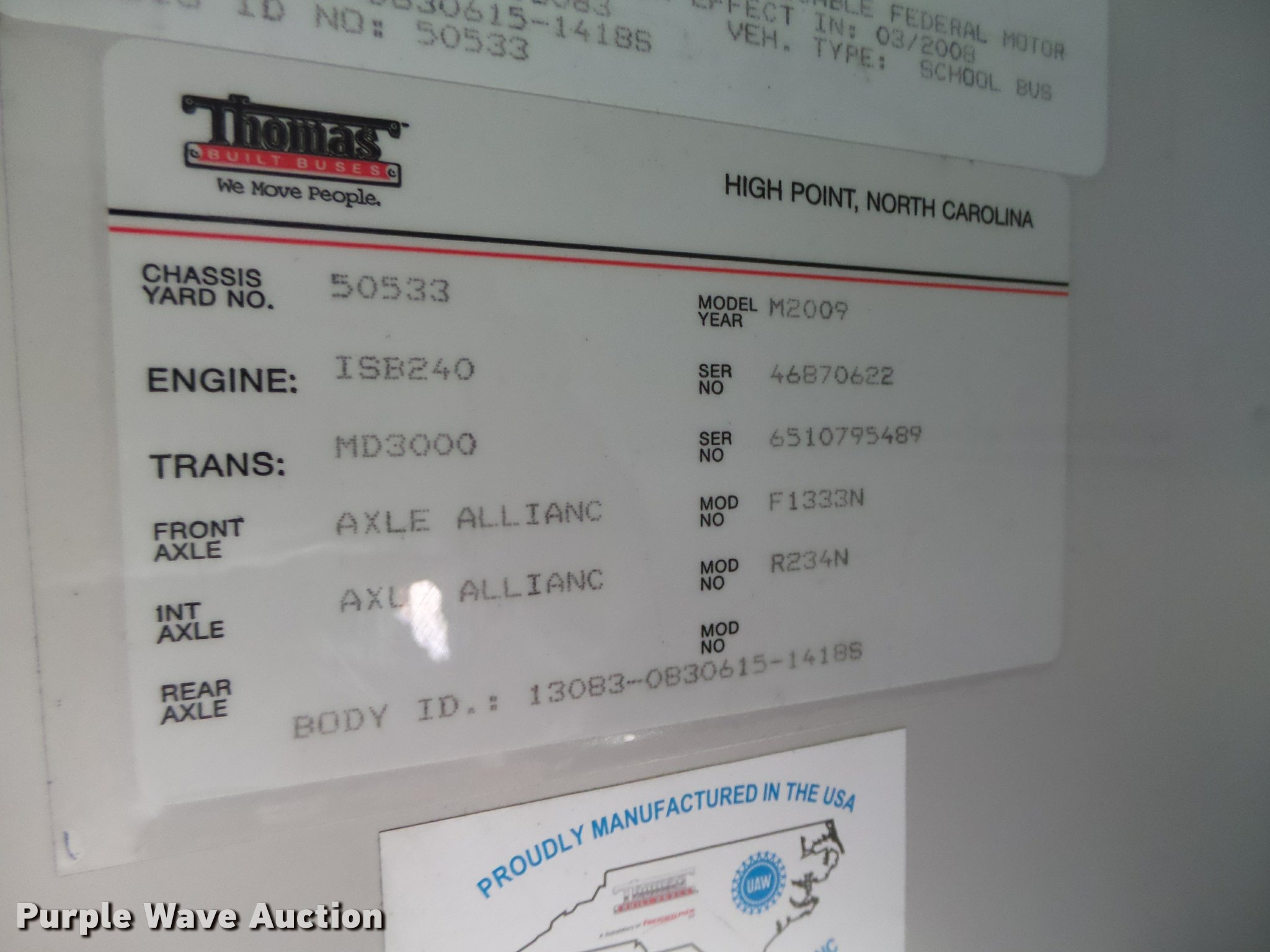 Take a look at this used 2009 Thomas Built Saf-T-Liner MVP EF school bus being sold on October 4th, 2016 in the SOLD! October 4 Government Auction made by Thomas Built. Take a look at all of the item information below or take a look at similar auctions for Transit Vehicles.