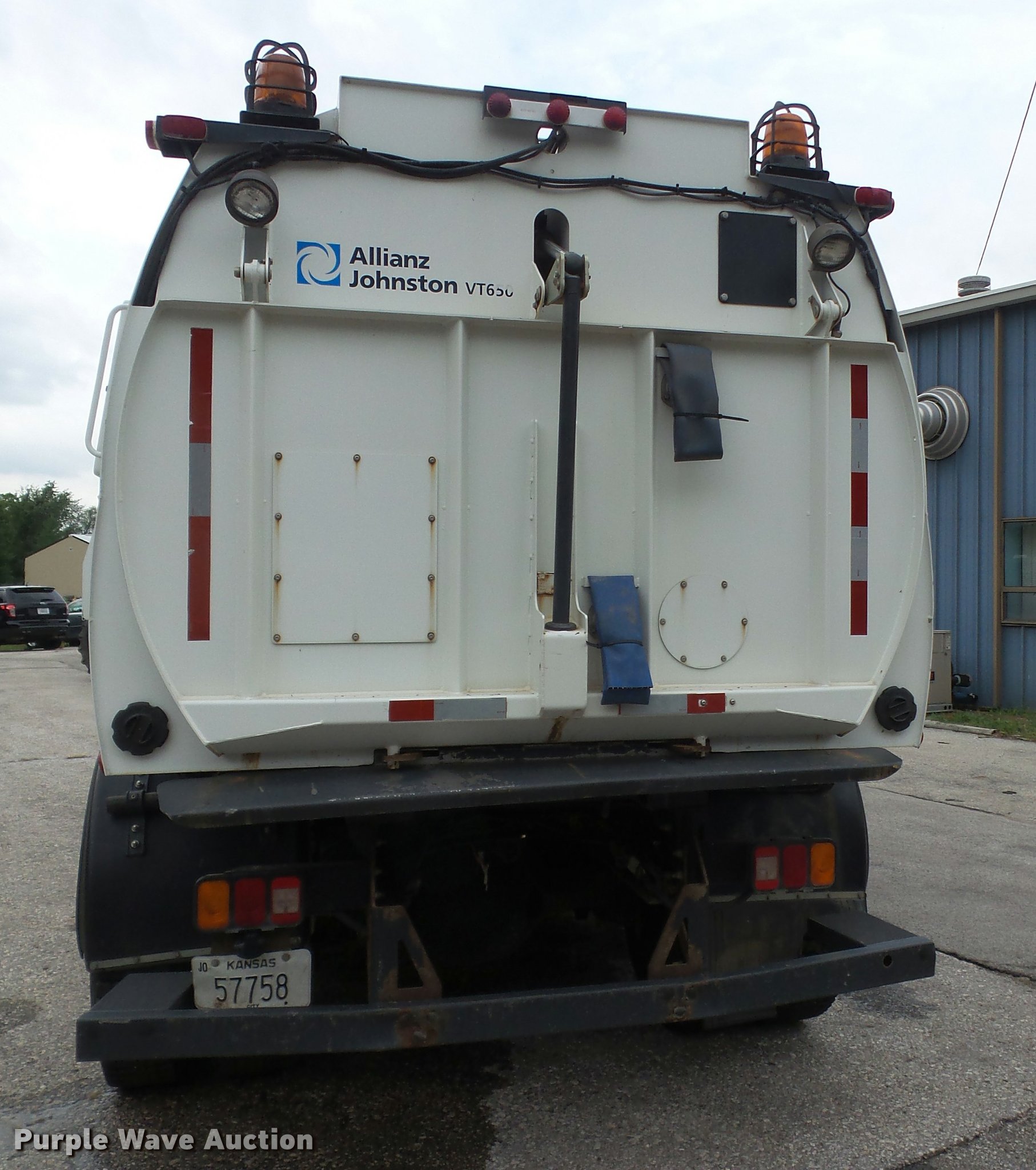 2002 Sterling SC8000 Cargo Allianz Johnston street sweeper truck. 60,109 miles on odometer, 9,841 hours on meter, Cummins ISB 5.9L L6 diesel engine 205 HP, Automatic transmission, AC and heat, AM/FM/cassette, Dual steering wheels, Allianz Johnston VT650 sweeper John Deere four cylinder diesel engine 99 HP, (2) gutter brooms, 48" center brooms, Six ton payload capacity, 340 gallon water tank, Air brakes, 11R22.5 tires. Kansas title. 49HAADBV62DK92829. City of Lenexa. 7700 Cottonwood. Lenexa, KS 66216
