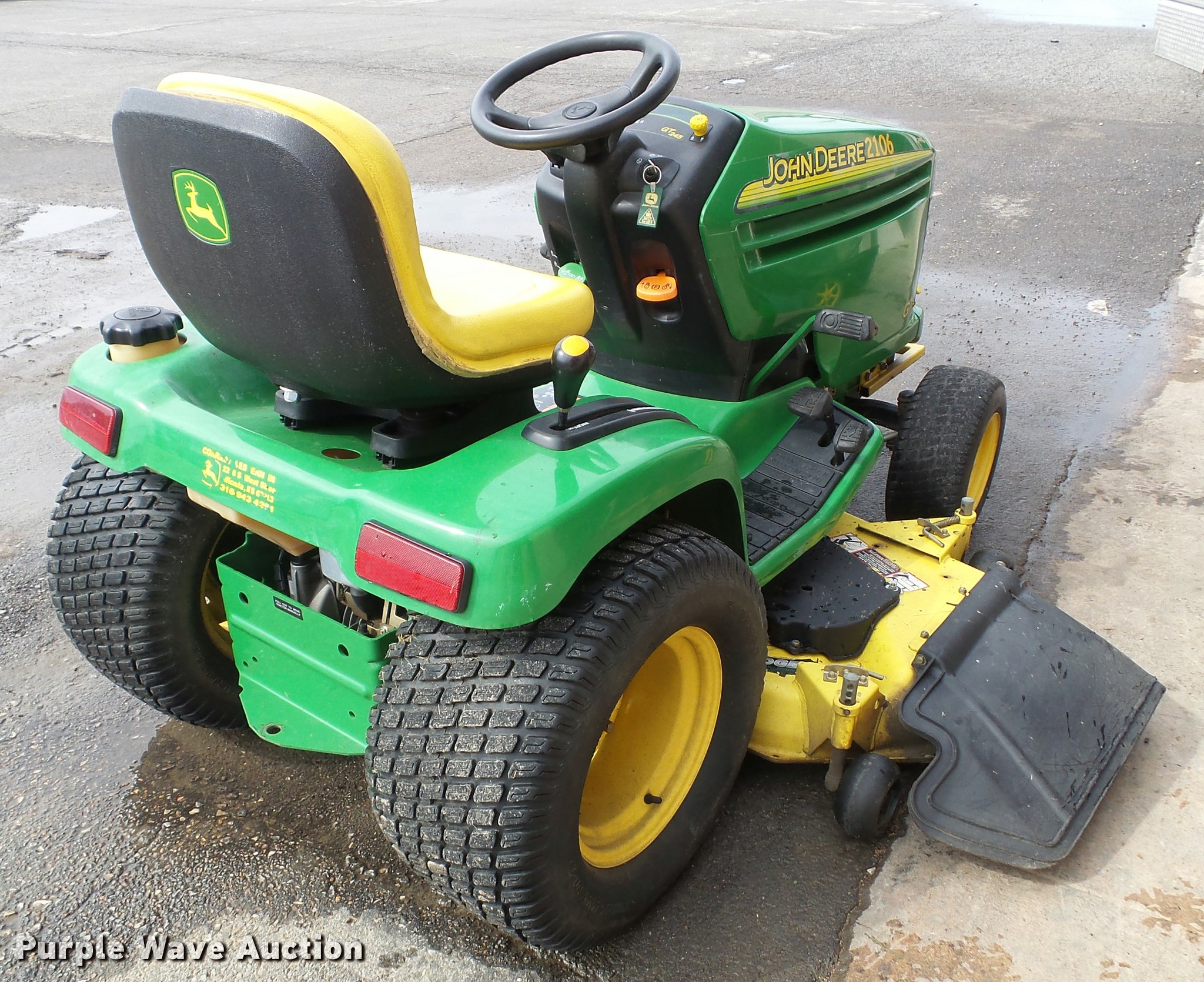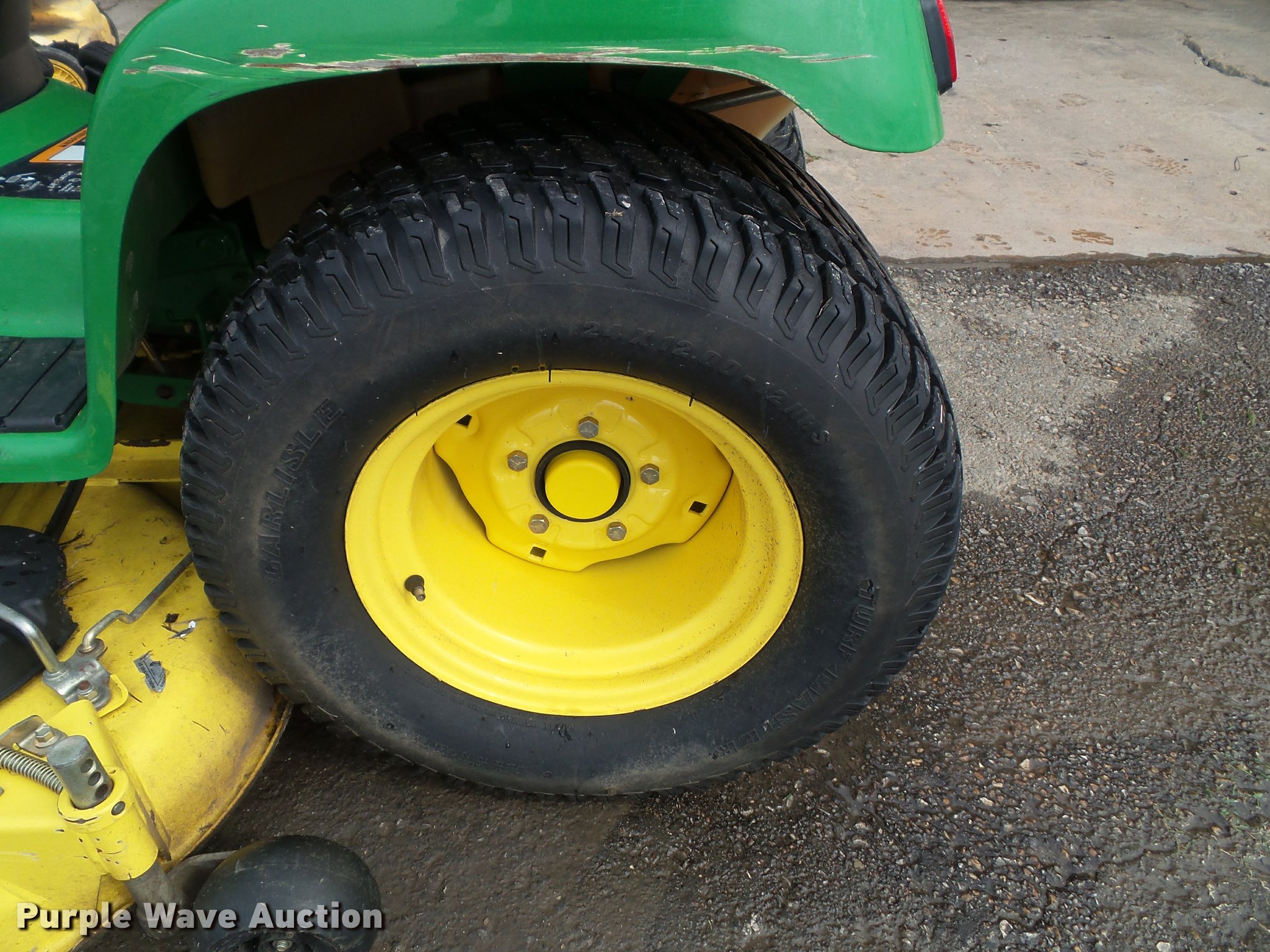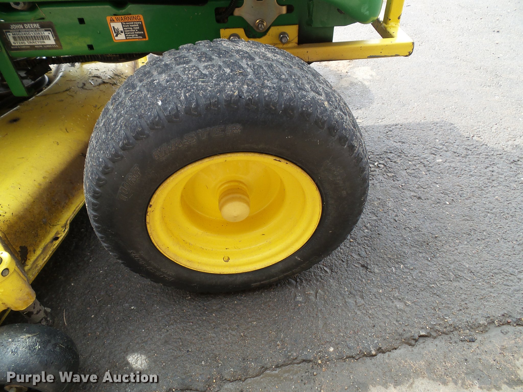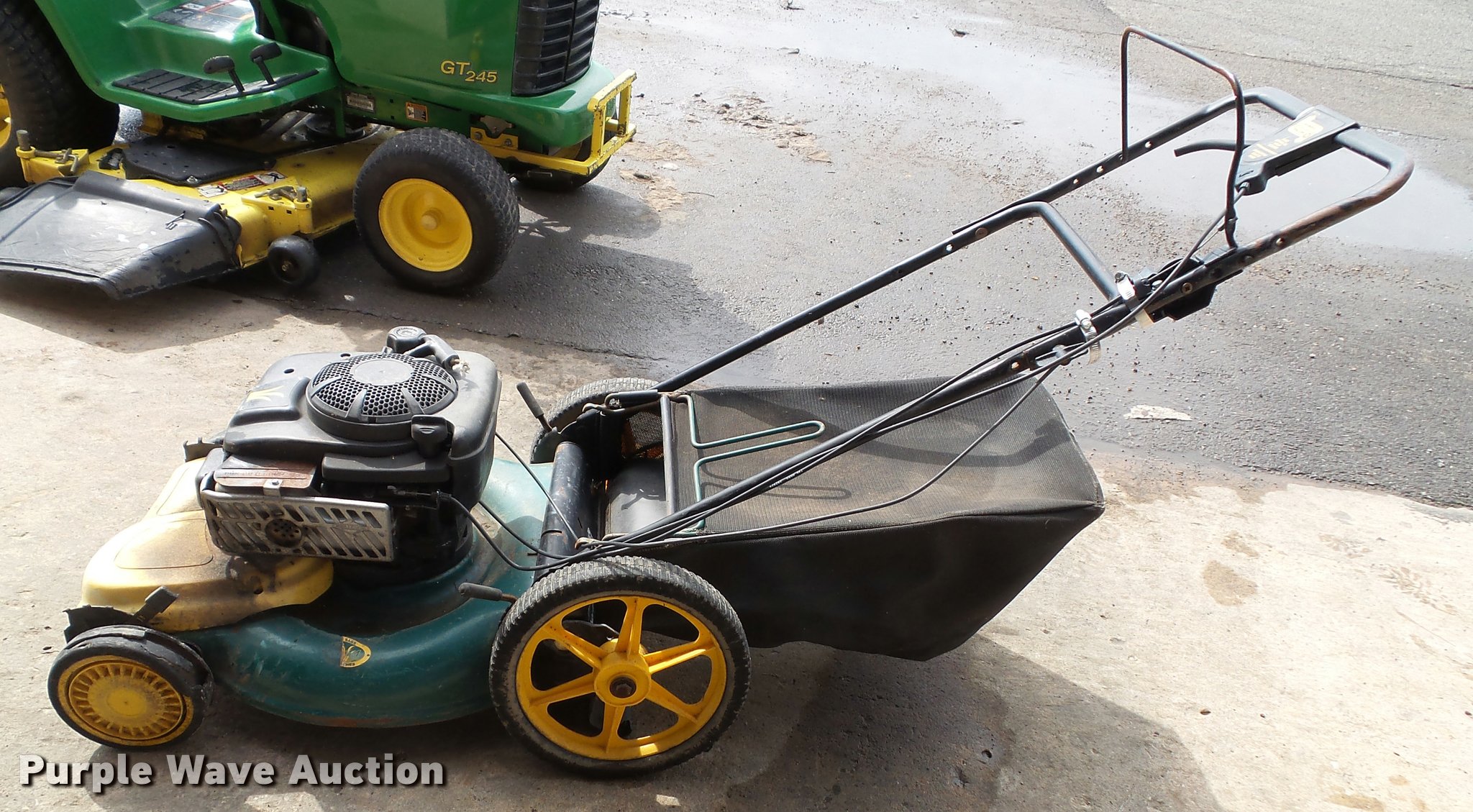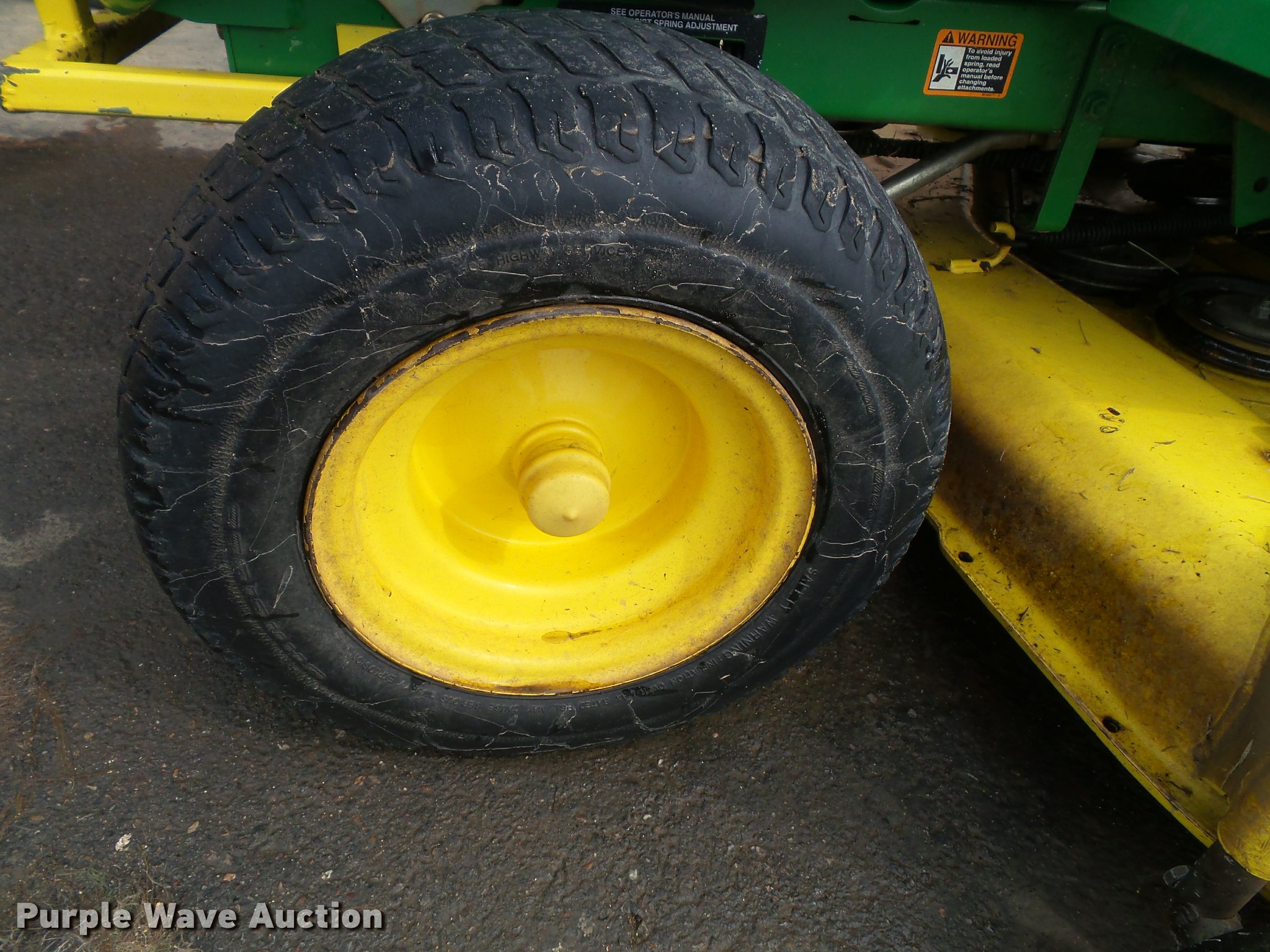 Purple Wave is selling a used Lawn Mower in Kansas. This item is a (2) lawn mowers with the following: John Deere GT245 lawn mower, 541 hours on meter, 54" cut, 20 HP gas engine, Automatic transmission, Twin touch clutch, Cruise, Bumper guard, 16x6.50-8 front tires, 24x12.00-12 rear tires, Front needs re-aligned, Hood damage on left side, Serial M0G245G133831, Unit# 2106, Yardman MTD push mower, 18" cut, Bagger, Hi-wheel, Front wheels worn