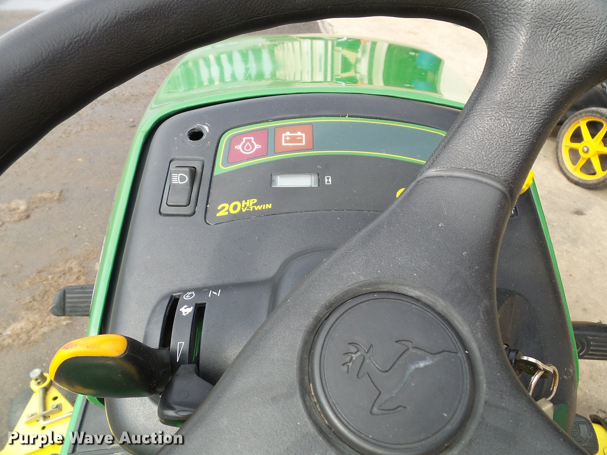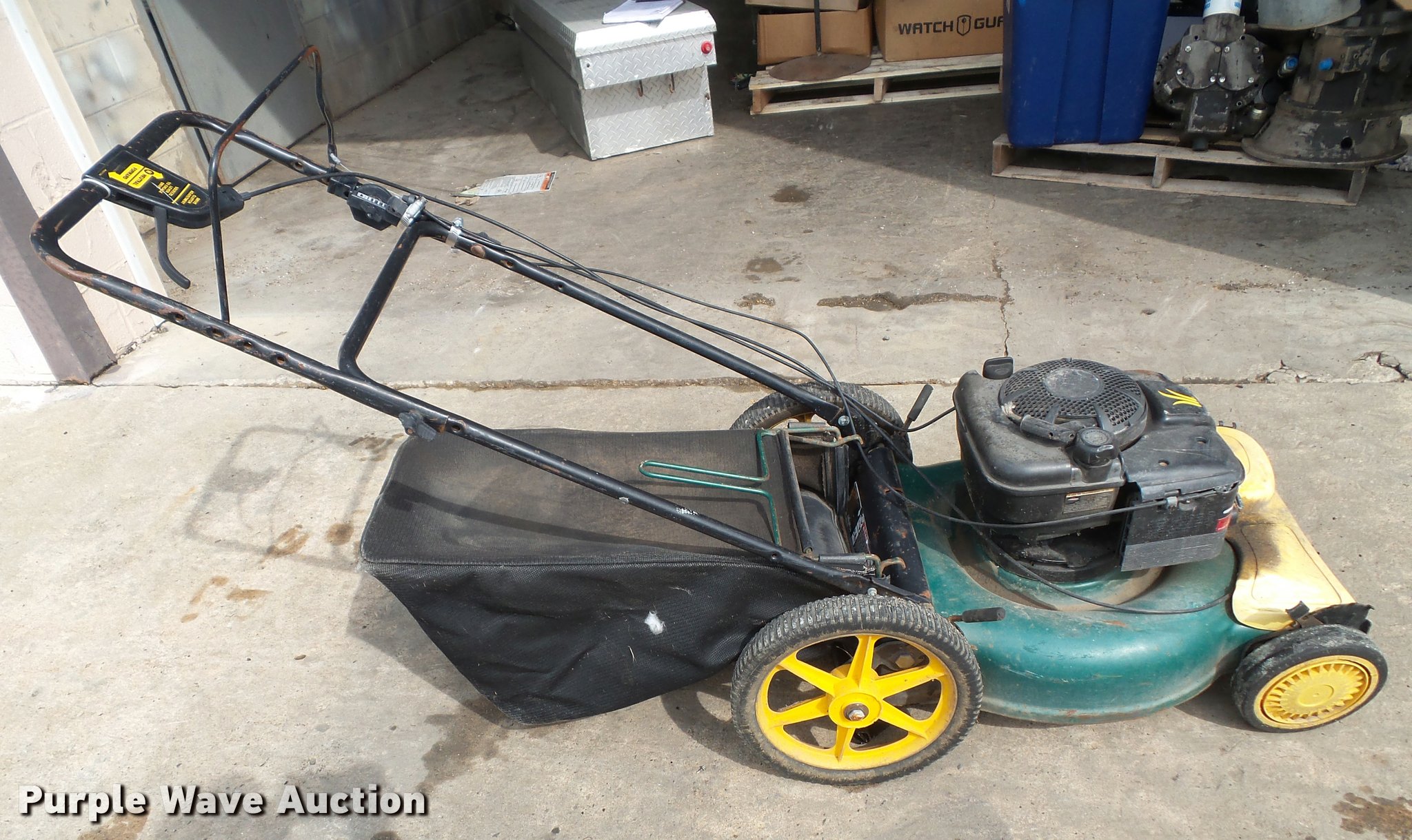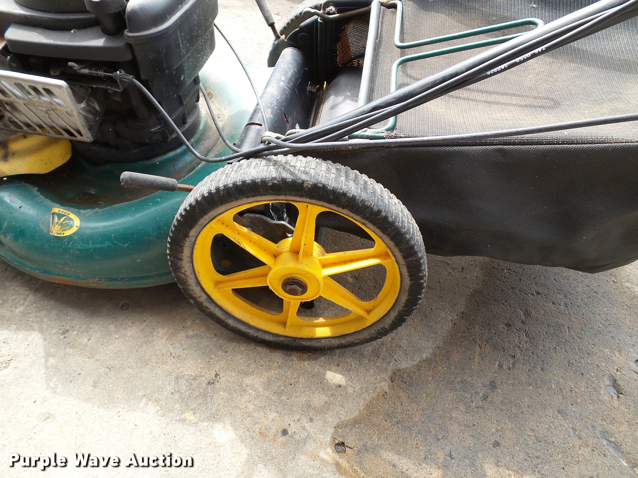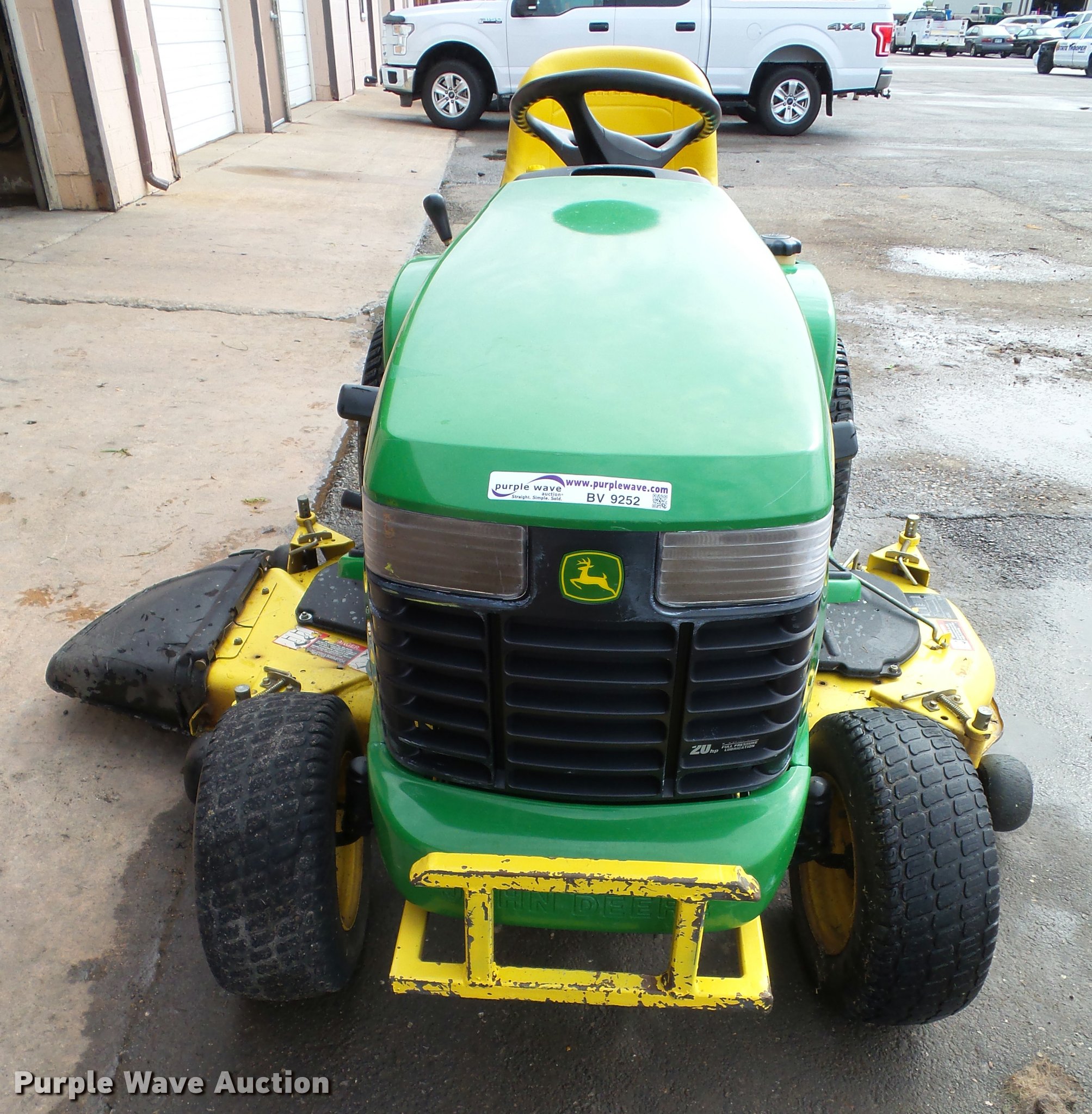 Purple Wave is selling a used Lawn Mower in Kansas. This item is a (2) lawn mowers with the following: John Deere GT245 lawn mower, 541 hours on meter, 54" cut, 20 HP gas engine, Automatic transmission, Twin touch clutch, Cruise, Bumper guard, 16x6.50-8 front tires, 24x12.00-12 rear tires, Front needs re-aligned, Hood damage on left side, Serial M0G245G133831, Unit# 2106, Yardman MTD push mower, 18" cut, Bagger, Hi-wheel, Front wheels worn
