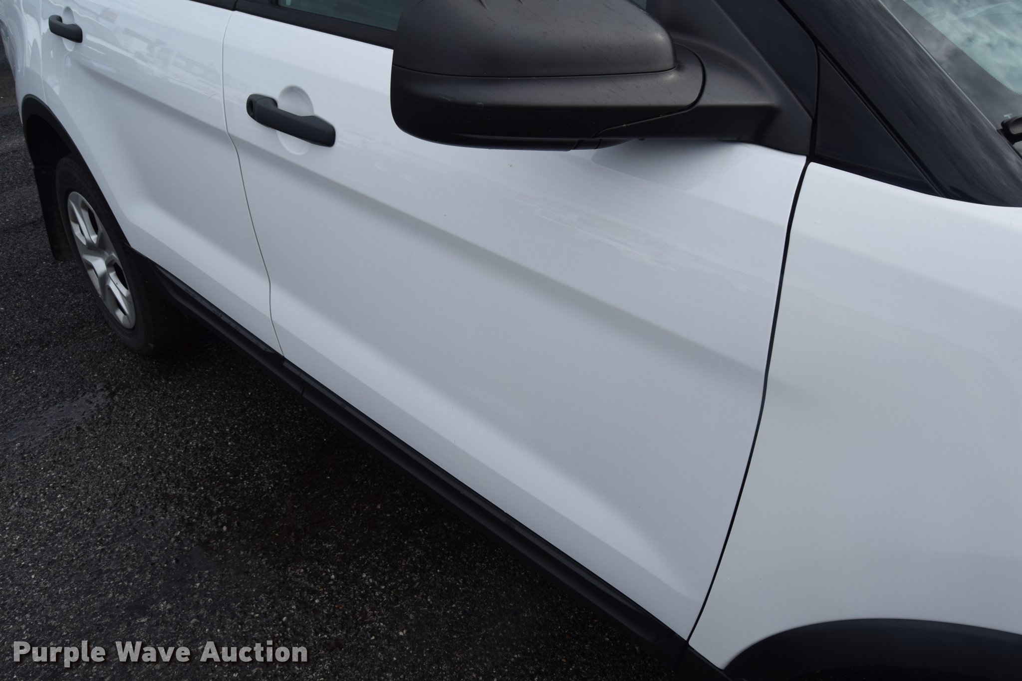 Purple Wave is selling a used Passenger Vehicle in Kansas. This item is a 2014 Ford Explorer Police Interceptor Utility SUV with the following: 120,292 miles on odometer, 3.7L V6 DOHC 24V gas engine, Automatic transmission, All wheel drive, AC and heat, Tilt, Cruise, AM/FM/CD, Power windows, locks, mirrors, and seat, Cloth interior, Spotlight, 245/55R18 tires, Headliner damage, Unit# 5916