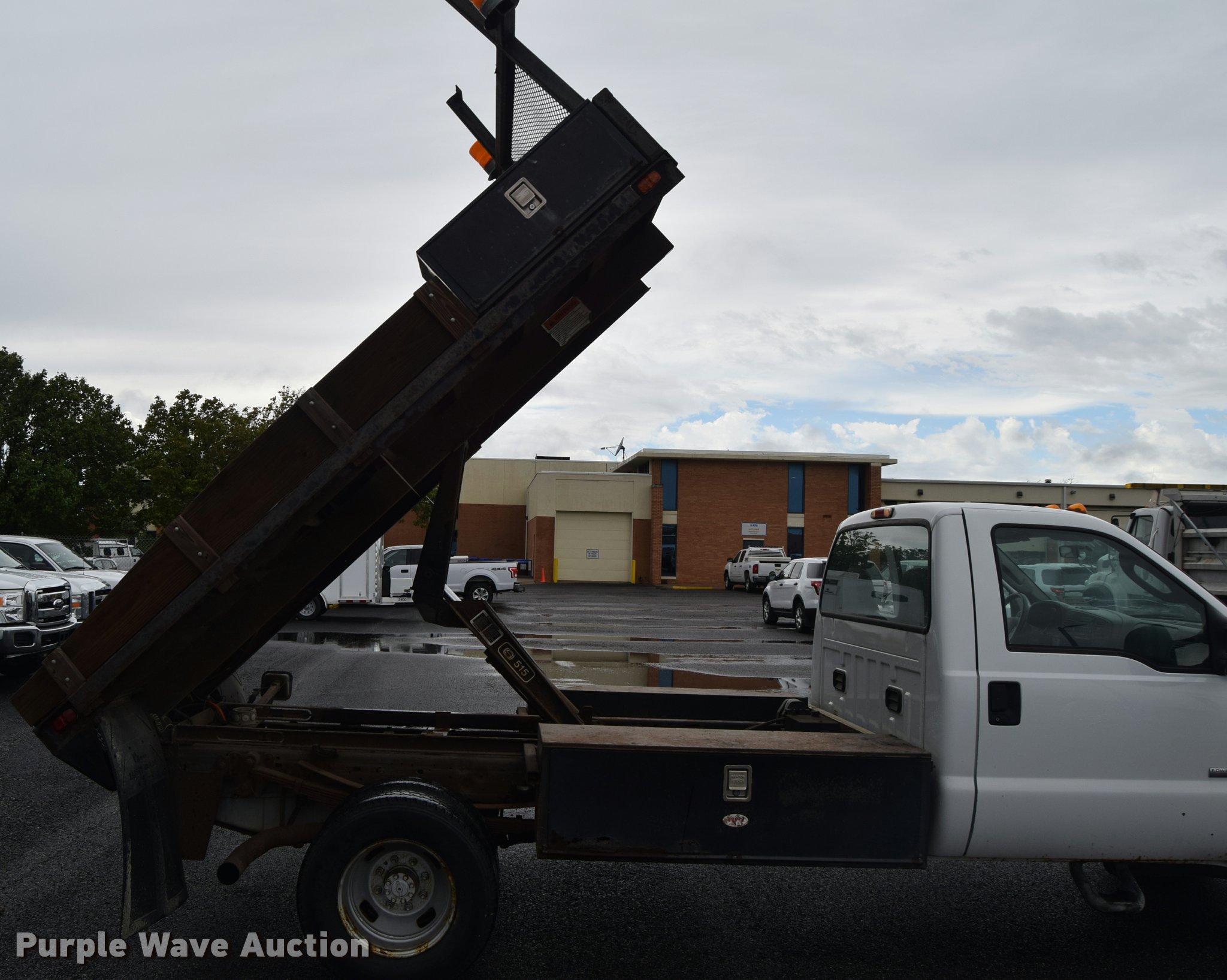 Purple Wave is selling a used 3/4 or 1 Ton Pickup or Van in Kansas. This item is a 2006 Ford F350 Super Duty XL flatbed pickup truck with the following: 152,836 miles on odometer, 6.0L V8 OHV 32V diesel engine, Automatic transmission, Four wheel drive, AC and heat, Tilt, Cruise, AM/FM/CD, Power windows, locks, and mirrors, Cloth interior, Block heater, Front tow hooks, 11'L x 92"W dump flatbed, Headache rack, Toolbox, Gooseneck ball, Meyer snow plow, Tether/pigtail control, Receiver hitch, Trailer wiring, LT245/75R17 tires, Cracked windshield, Rust, Paint peeling, Unit# 2080