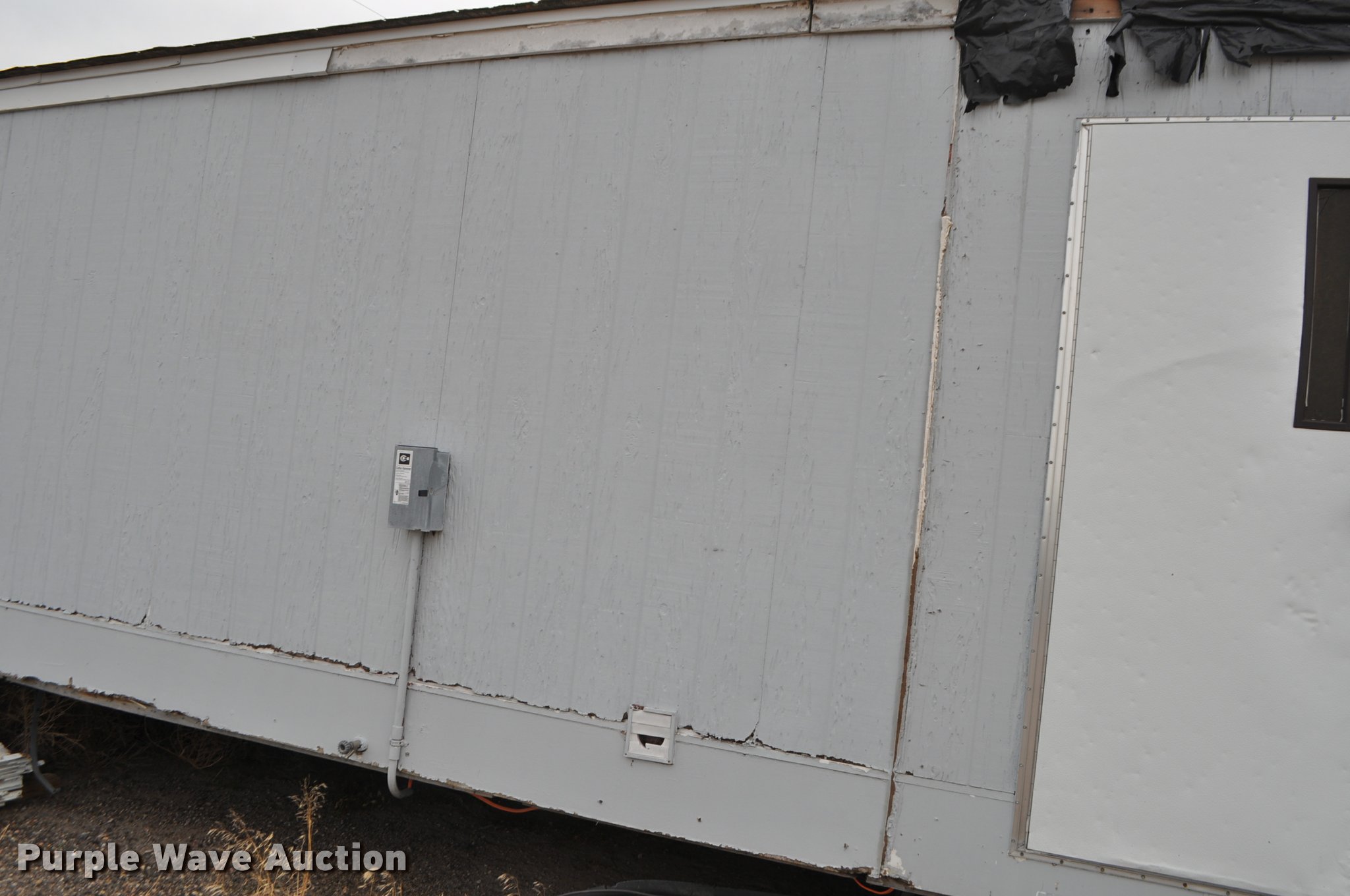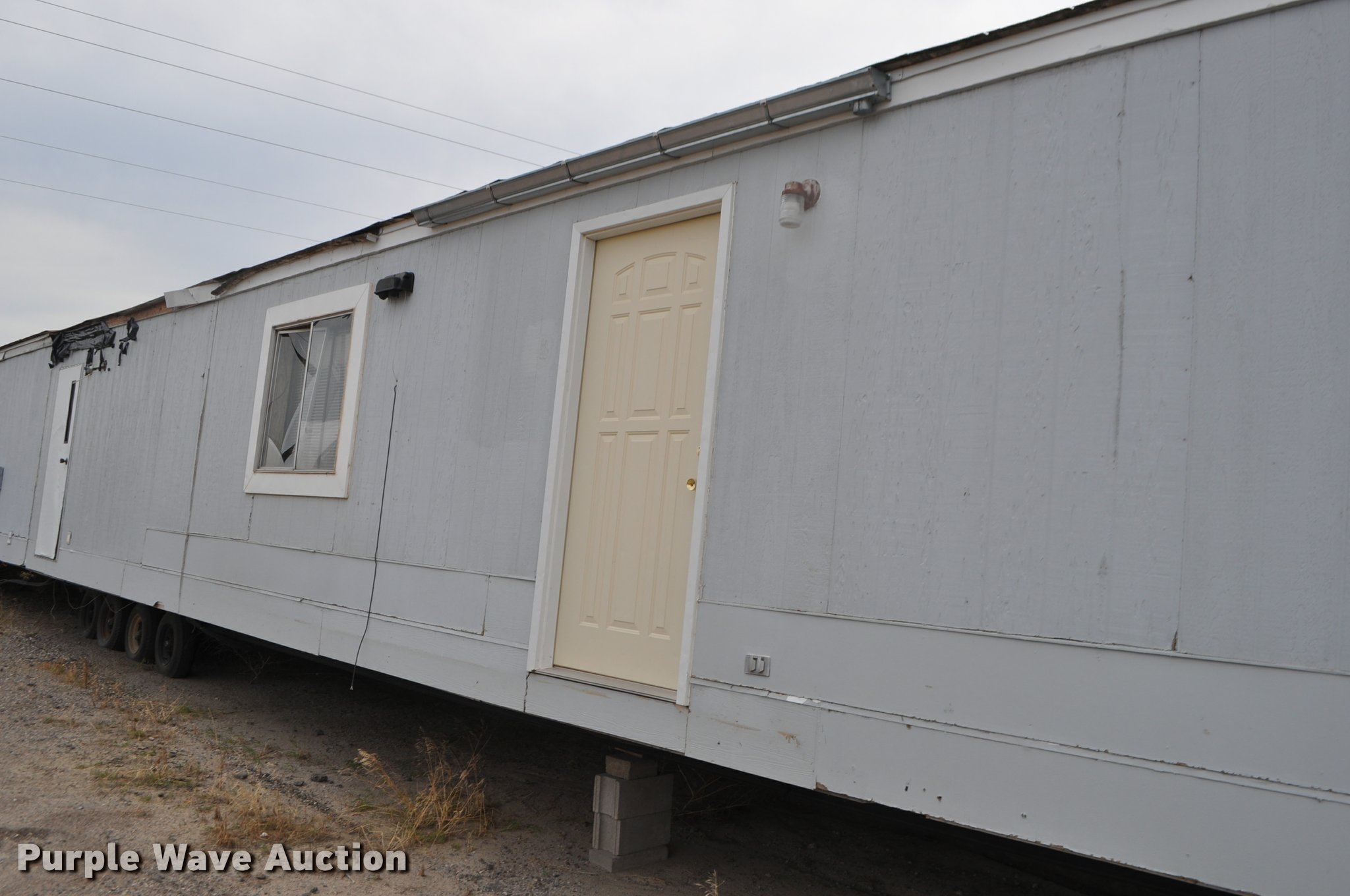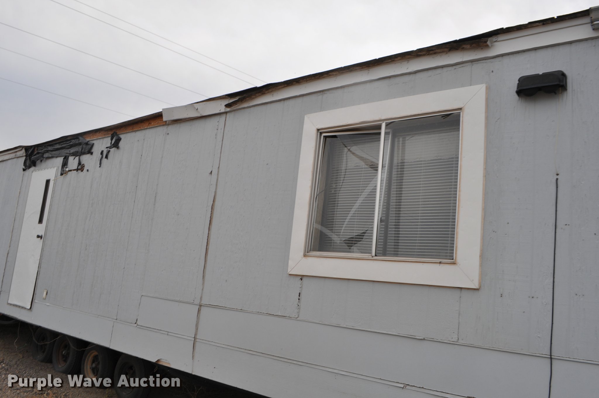 Purple Wave is selling a used Manufactured Home or Office in Nebraska. This item is a 1978 manufactured home with the following: 68'L x 14'W, (2) bedrooms, Bathroom, Appliances, Unknown operating condition, Pitched roof, Quadruple axle, 8-14.5-14 tires, Exterior damage, Ceiling water damage