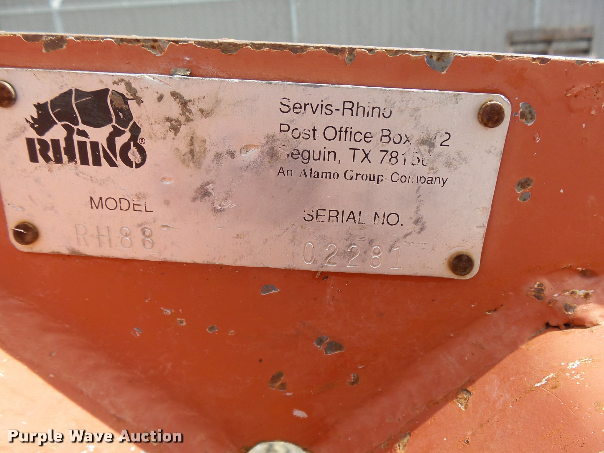 Purple Wave is selling a used Mower, Cutter, Shredder in Kansas. This item is a Rhino RH88 flail mower with the following: 540 PTO, Three point, Serial 02281