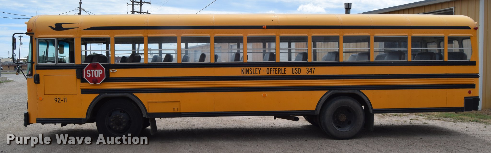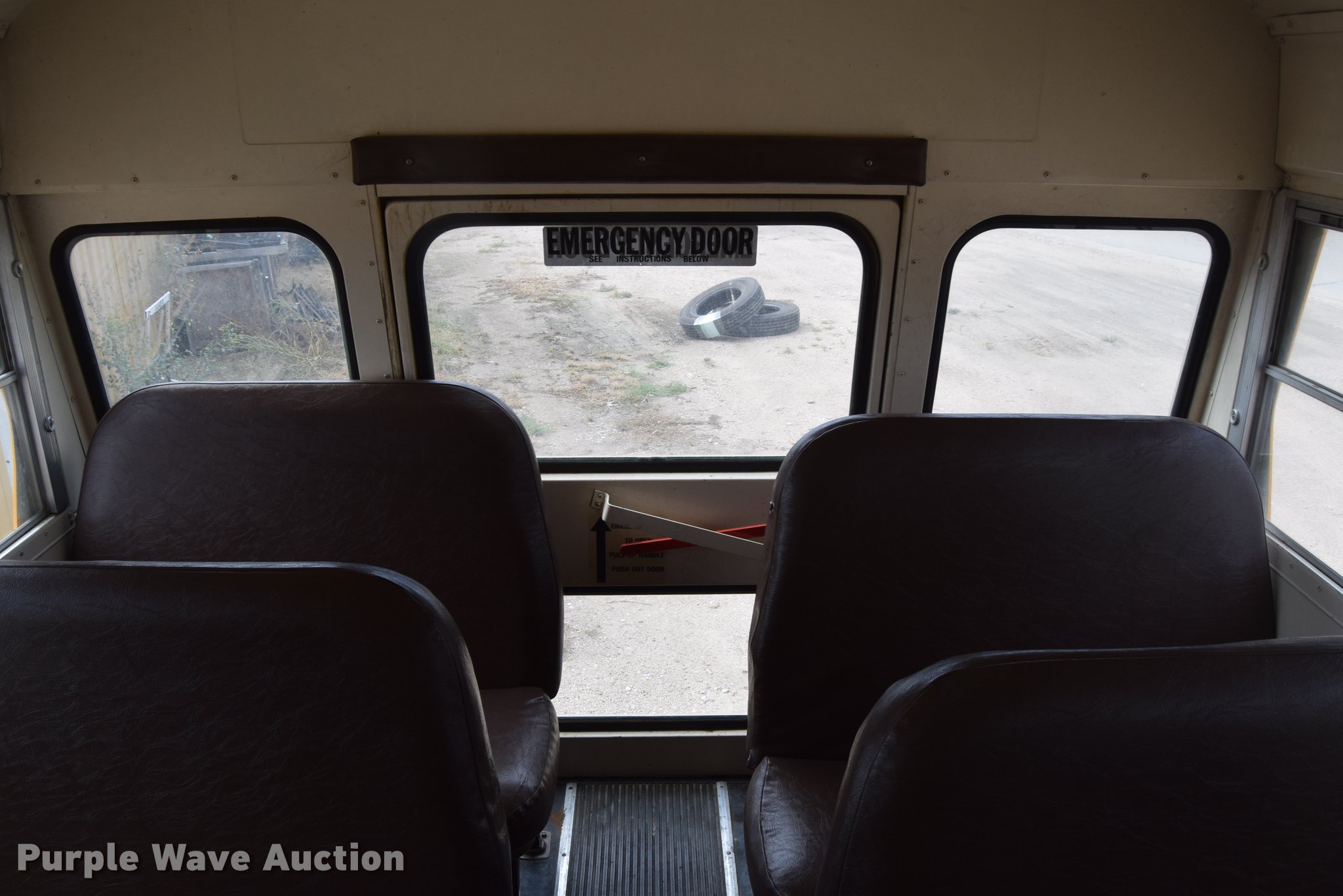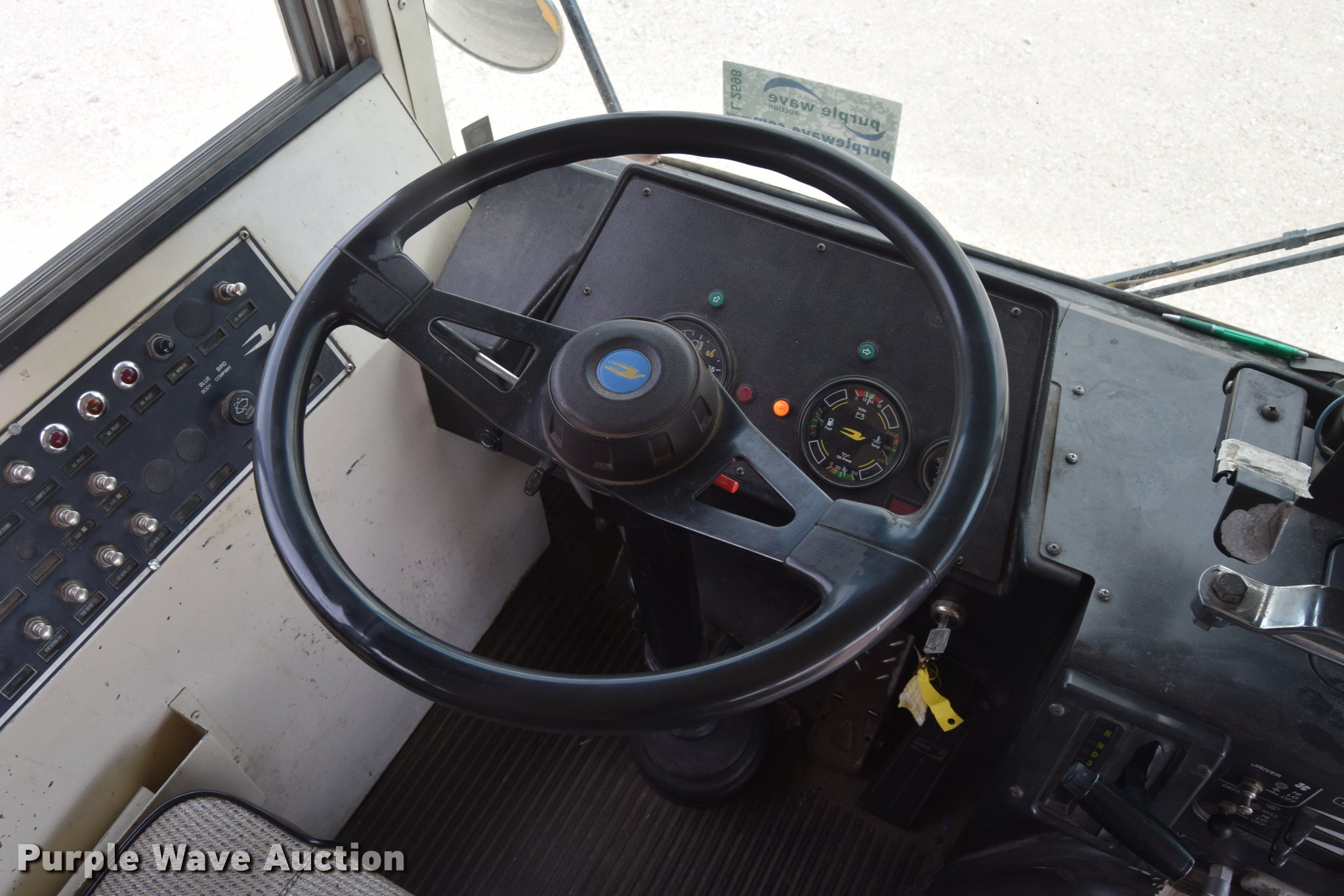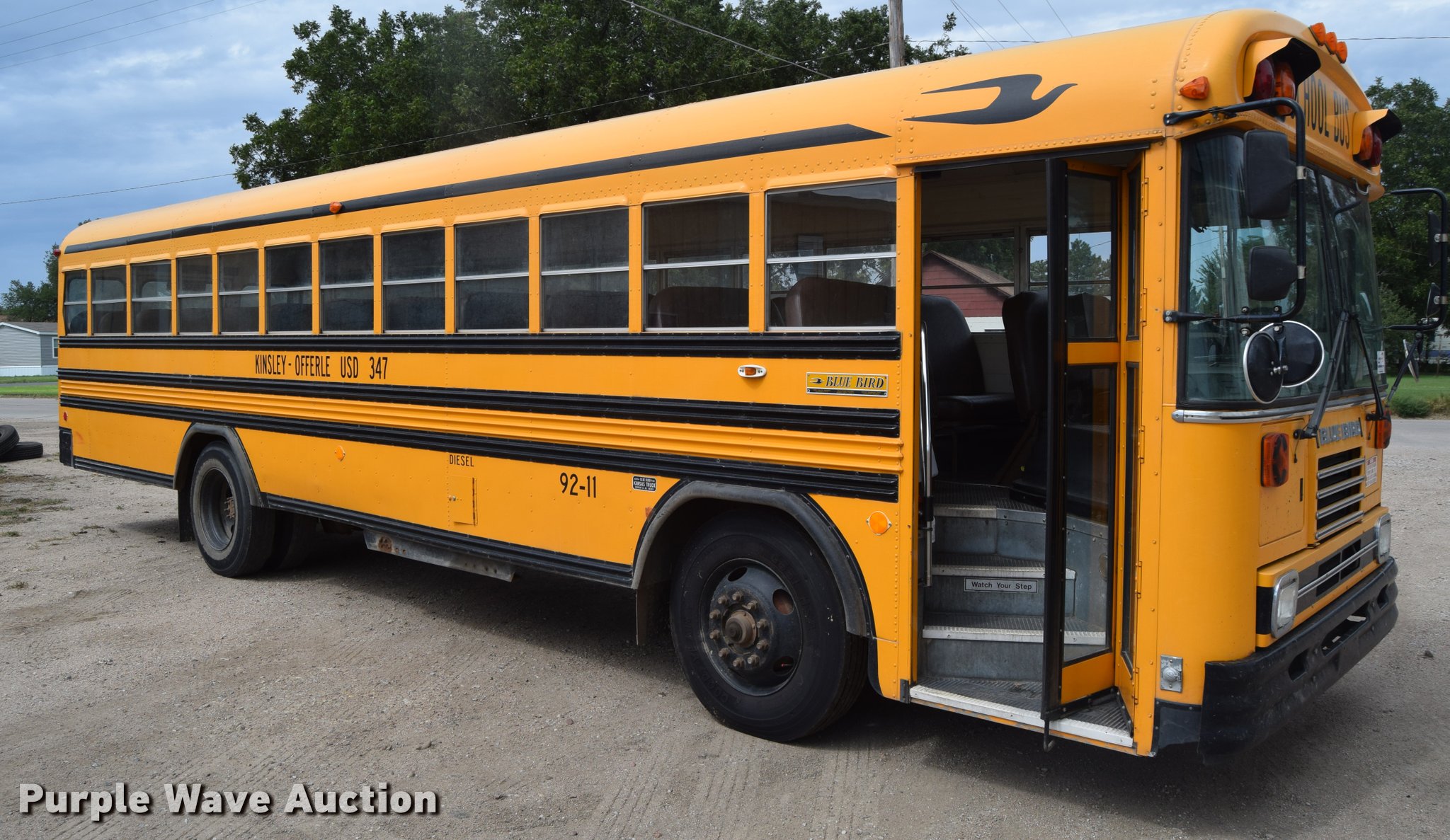 Purple Wave is selling a used Bus in Kansas. This item is a 1992 Blue Bird TC2000 school bus with the following: 193,957 miles on odometer, Cummins 5.9L L6 diesel engine, Automatic transmission, Heat, AM/FM/cassette, Vinyl interior, 66 passenger capacity, Rear emergency egress, Air brakes, 10R22.5 tires, Front tires will be replaced with unattached tires on the ground