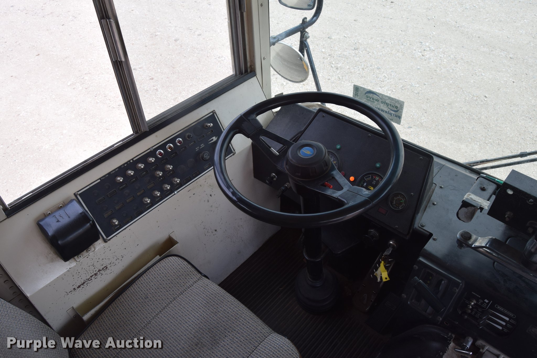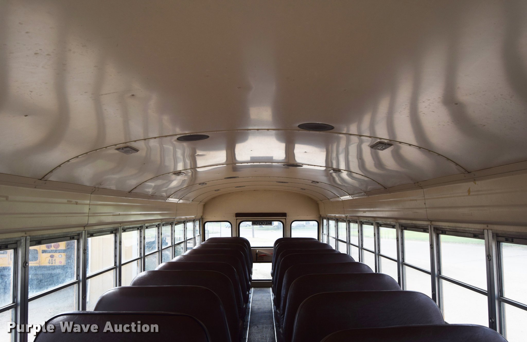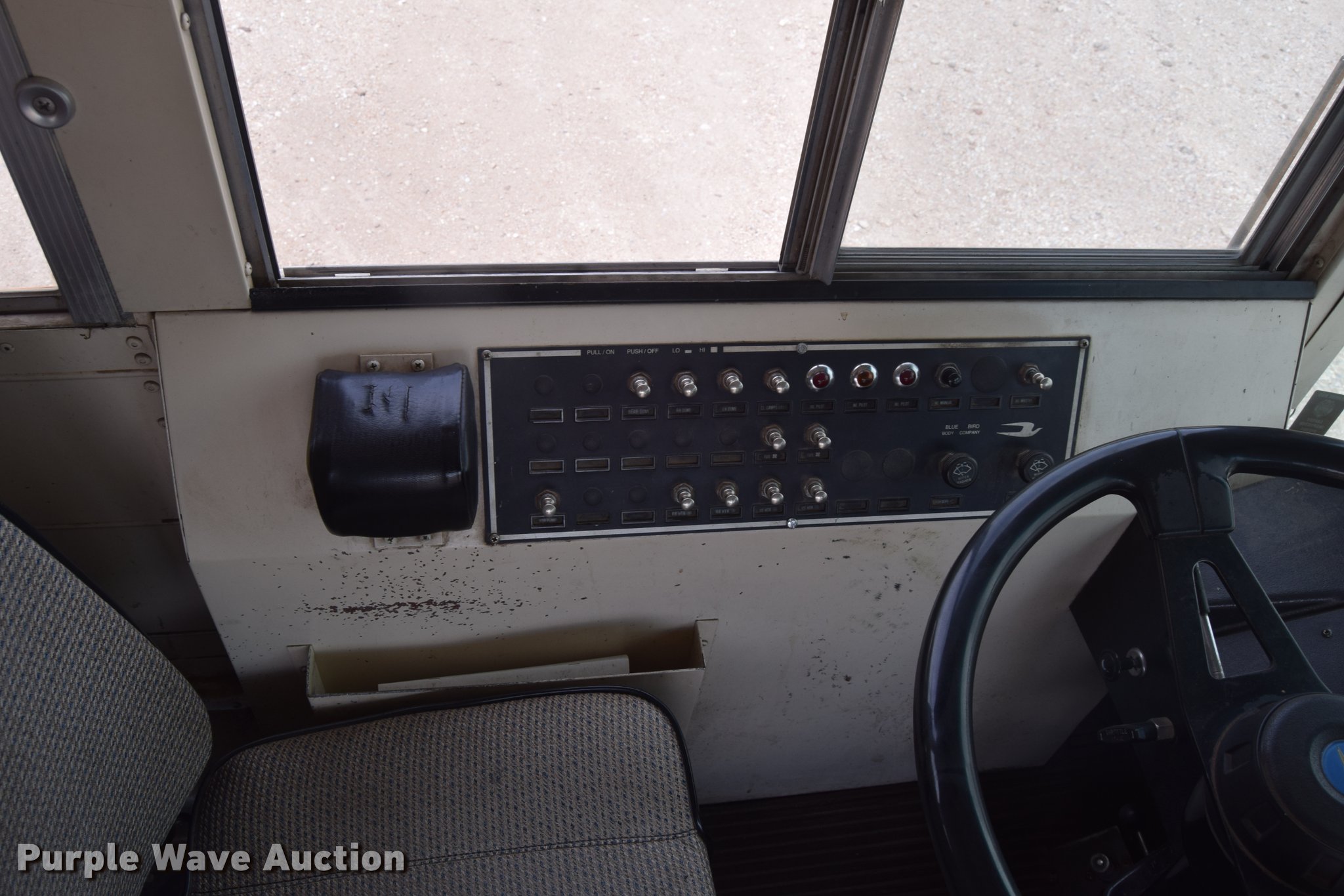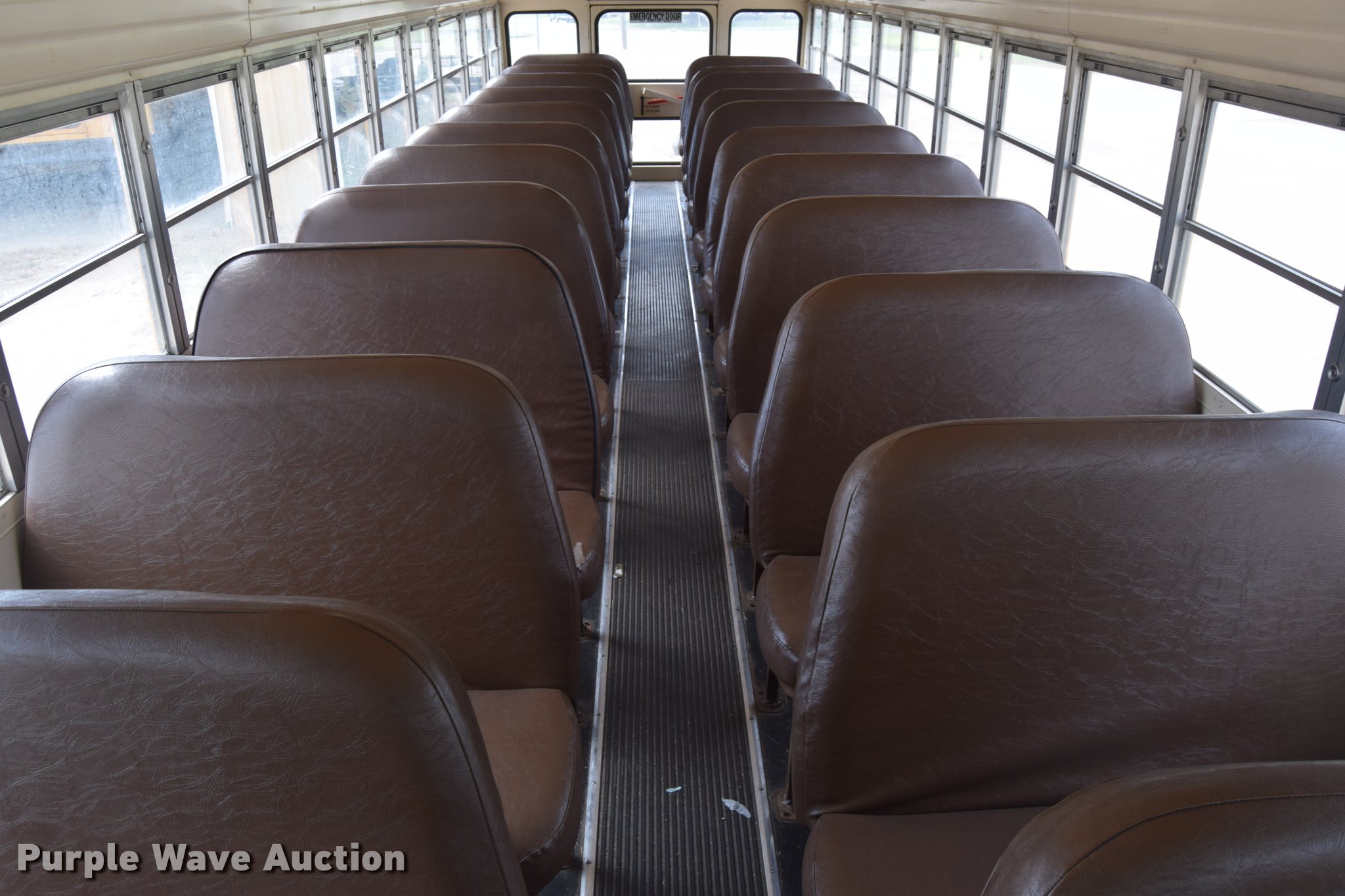 Purple Wave is selling a used Bus in Kansas. This item is a 1992 Blue Bird TC2000 school bus with the following: 193,957 miles on odometer, Cummins 5.9L L6 diesel engine, Automatic transmission, Heat, AM/FM/cassette, Vinyl interior, 66 passenger capacity, Rear emergency egress, Air brakes, 10R22.5 tires, Front tires will be replaced with unattached tires on the ground