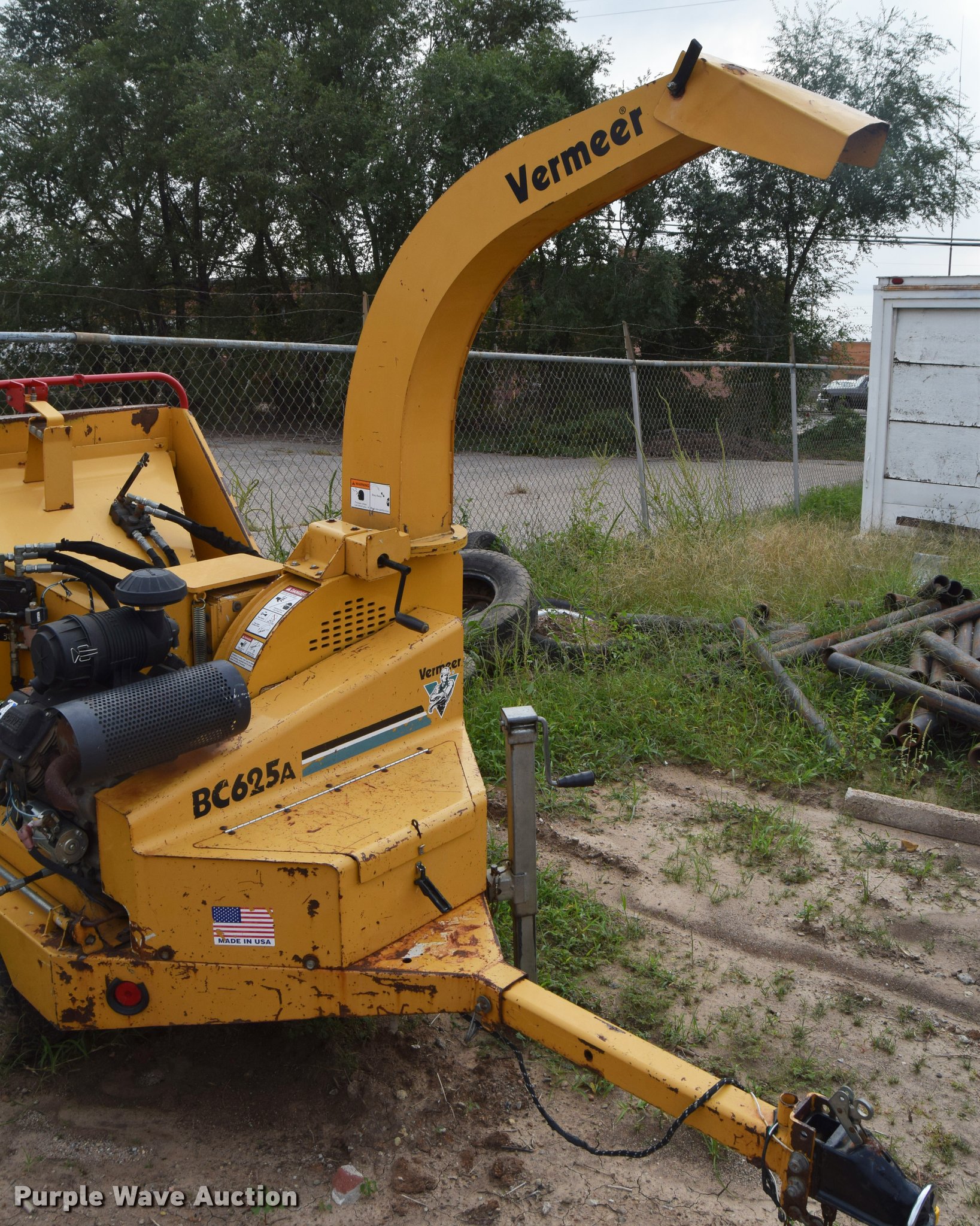 Purple Wave is selling a used Wood Chipper or Stump Grinder in Kansas. This item is a 2013 Vermeer BC625A wood chipper with the following: 33 hours on meter, Kohler Command Pro gas engine, 25 HP, 6" in feed, 18.5x8.5-8 tires