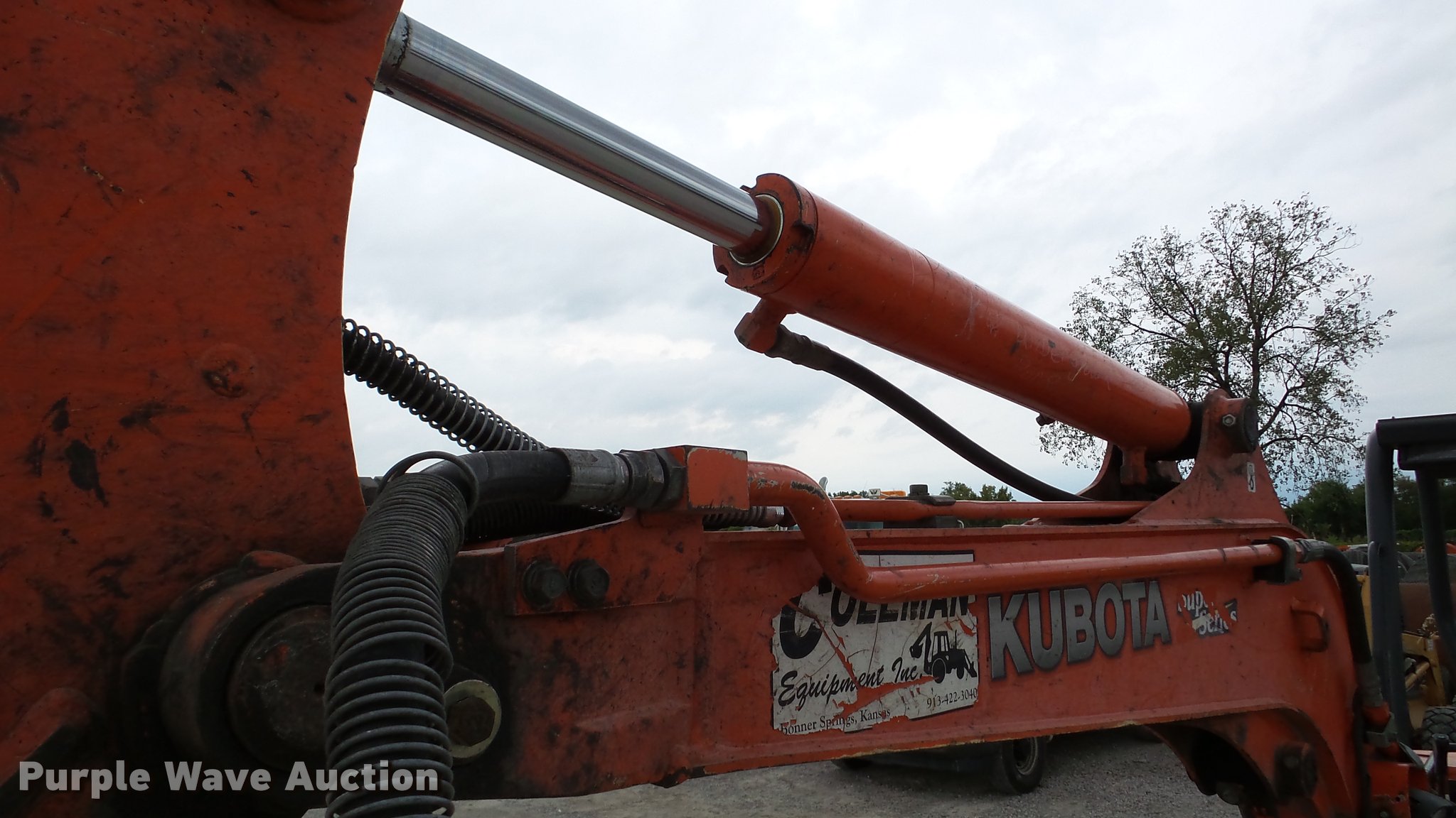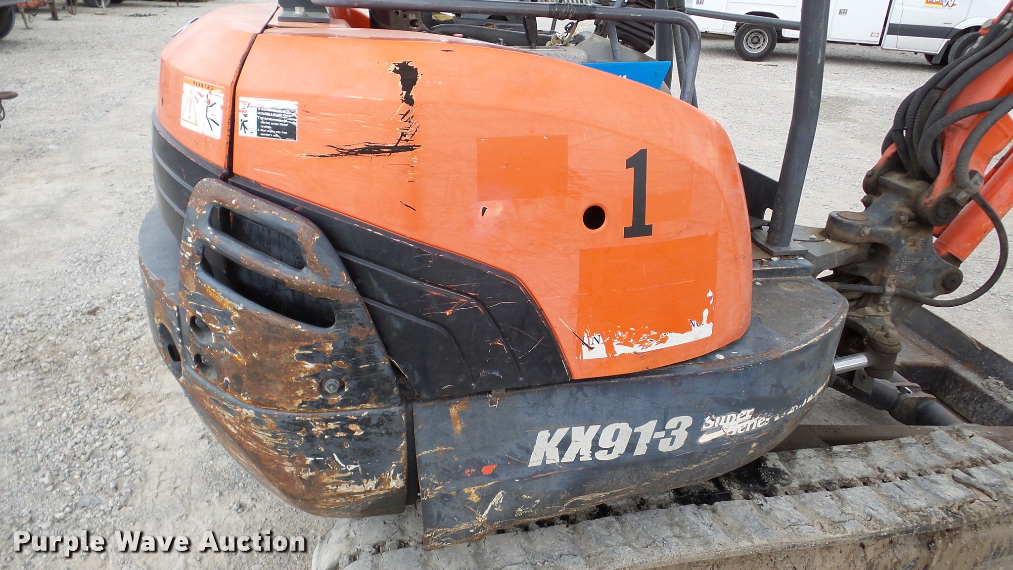 Purple Wave is selling a used Mini Excavator in Kansas. This item is a Kubota KX91-3 compact excavator with the following: 680 miles on odometer, Hours meter replaced at 6,083 hours, Three cylinder diesel engine, Model D1503, Hydrostatic transmission, Suspension seat, Front work lights, 5' stick length, 17"W bucket, (4) weld-on teeth, 5'W backfill blade, 12"W rubber tracks, Back of the seat doesn't lock on place, Joystick arm doesn't lock in place, Serial 30672