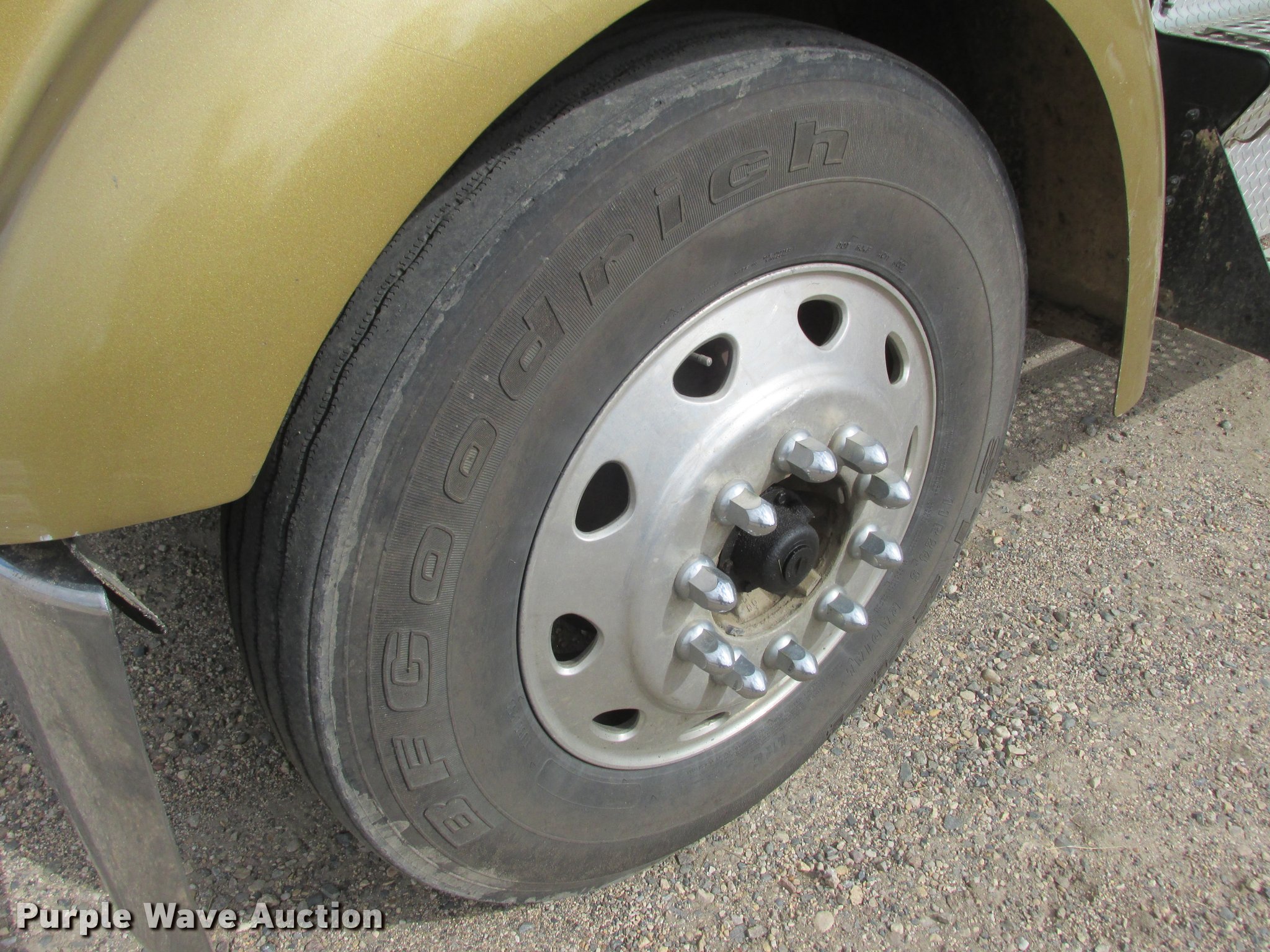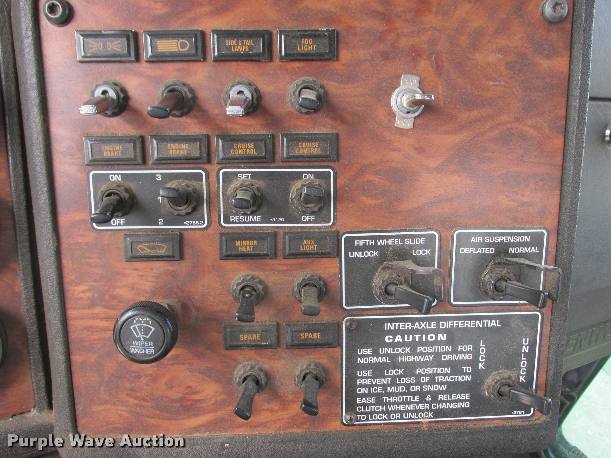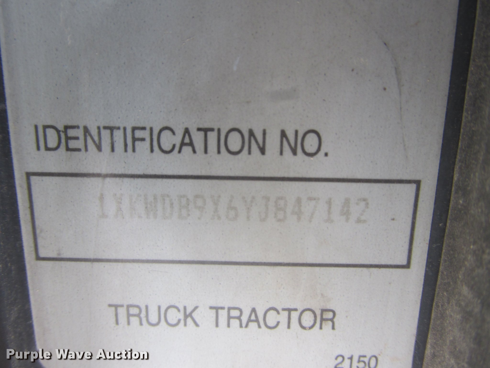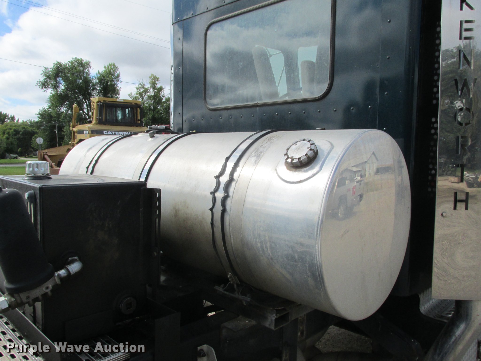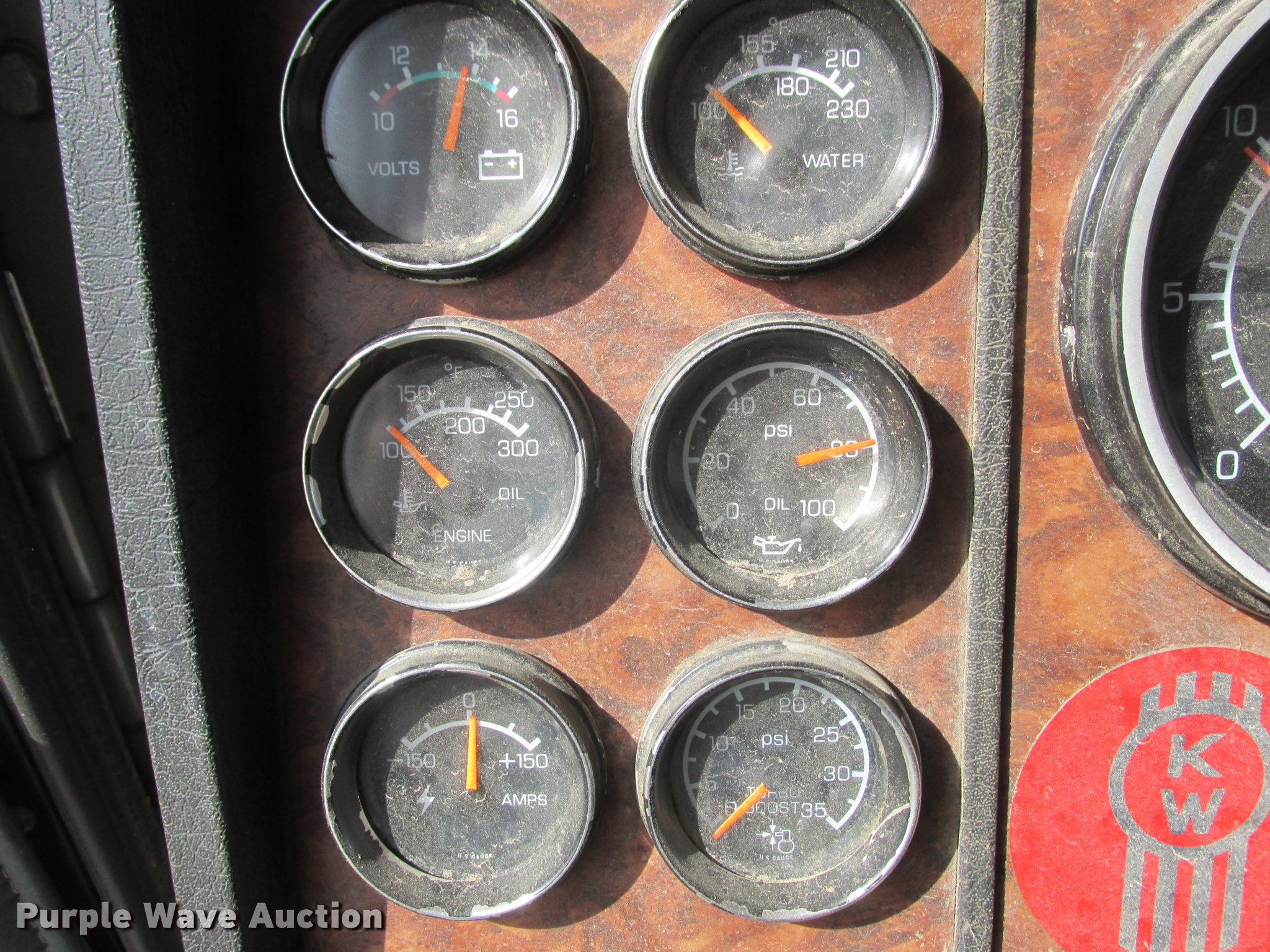 Purple Wave is selling a used Truck Tractor in Minnesota. This item is a 2000 Kenworth W900L semi truck with the following: 850,012 miles on odometer, Caterpillar C15 14.6L L6 turbo diesel engine, Eaton Fuller 15 speed manual transmission, Triple axle, Inter-axle differential lock, AC and heat, Tilt, Cruise, Power passenger window, Heated mirrors, Air suspension seat, Air ride cab, Tarp controls, Side dump controls, Backup alarm, Block heater, Exterior visor, Wet kit, Aluminum deck plate, Air operated sliding fifth wheel plate, Dual rear exhaust stacks, Single fuel tank, Aluminum full fenders, Mud flaps, 260" wheelbase, Air suspension, Air brakes, Engine brake, Aluminum wheels, 11R24.5 tires, 255/70R22.5 pusher axle tires, GVWR 48,000 lbs, FAWR 12,000 lbs, PAWR 20,000 lbs, DAWR 34,000 lbs, Unused front bumper installed Oct. 2016