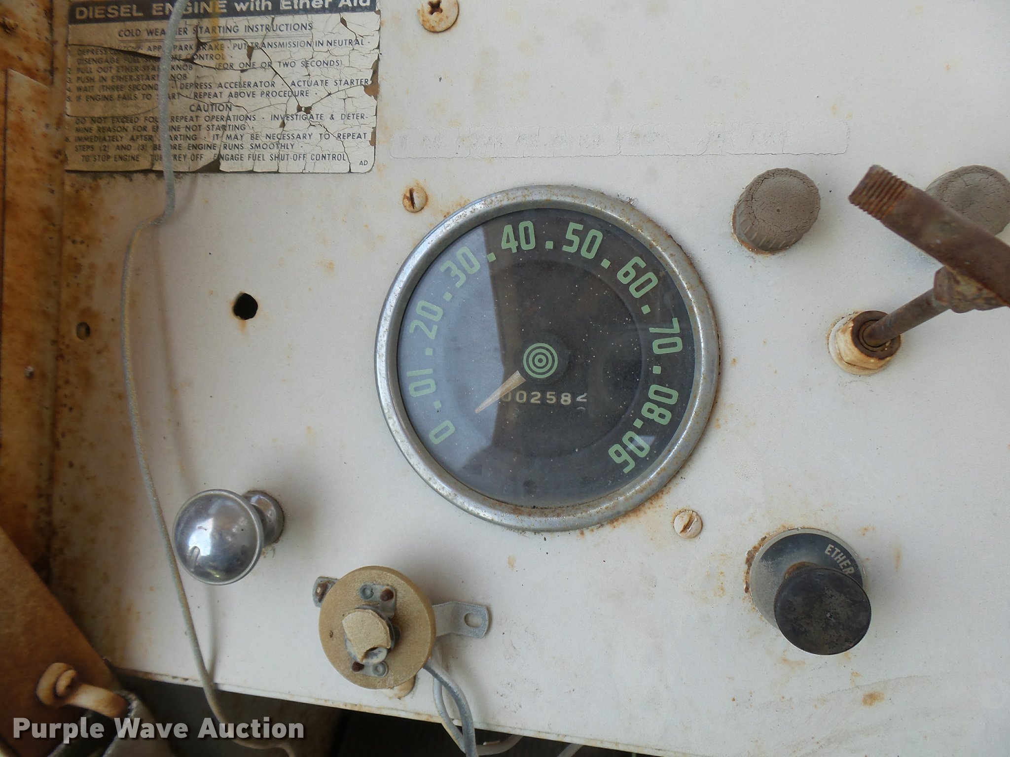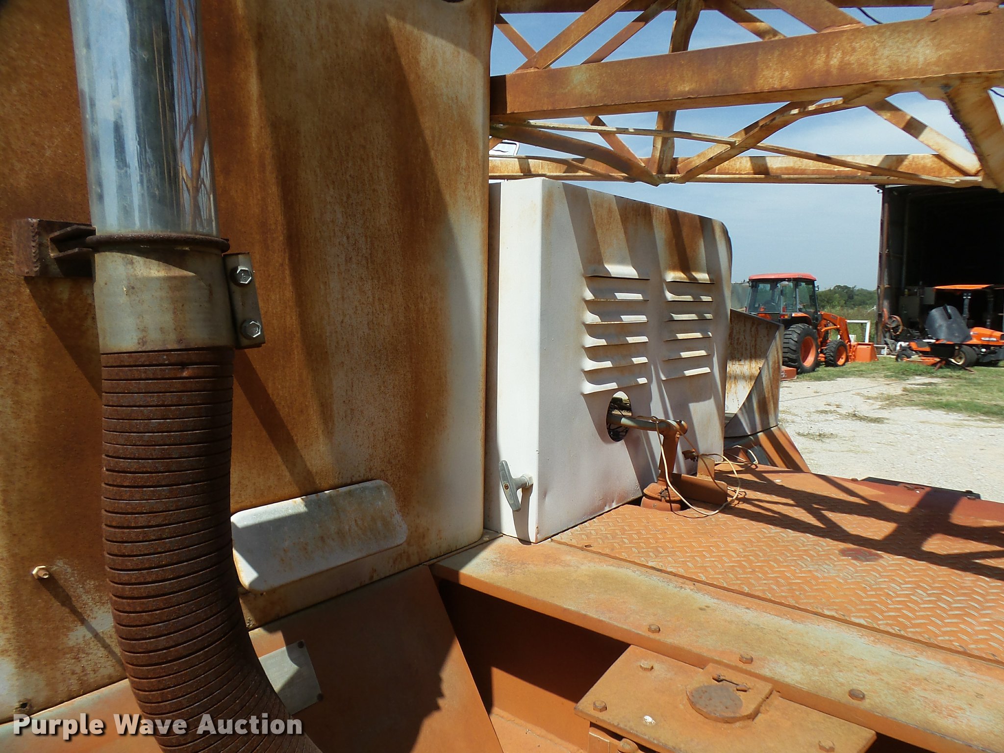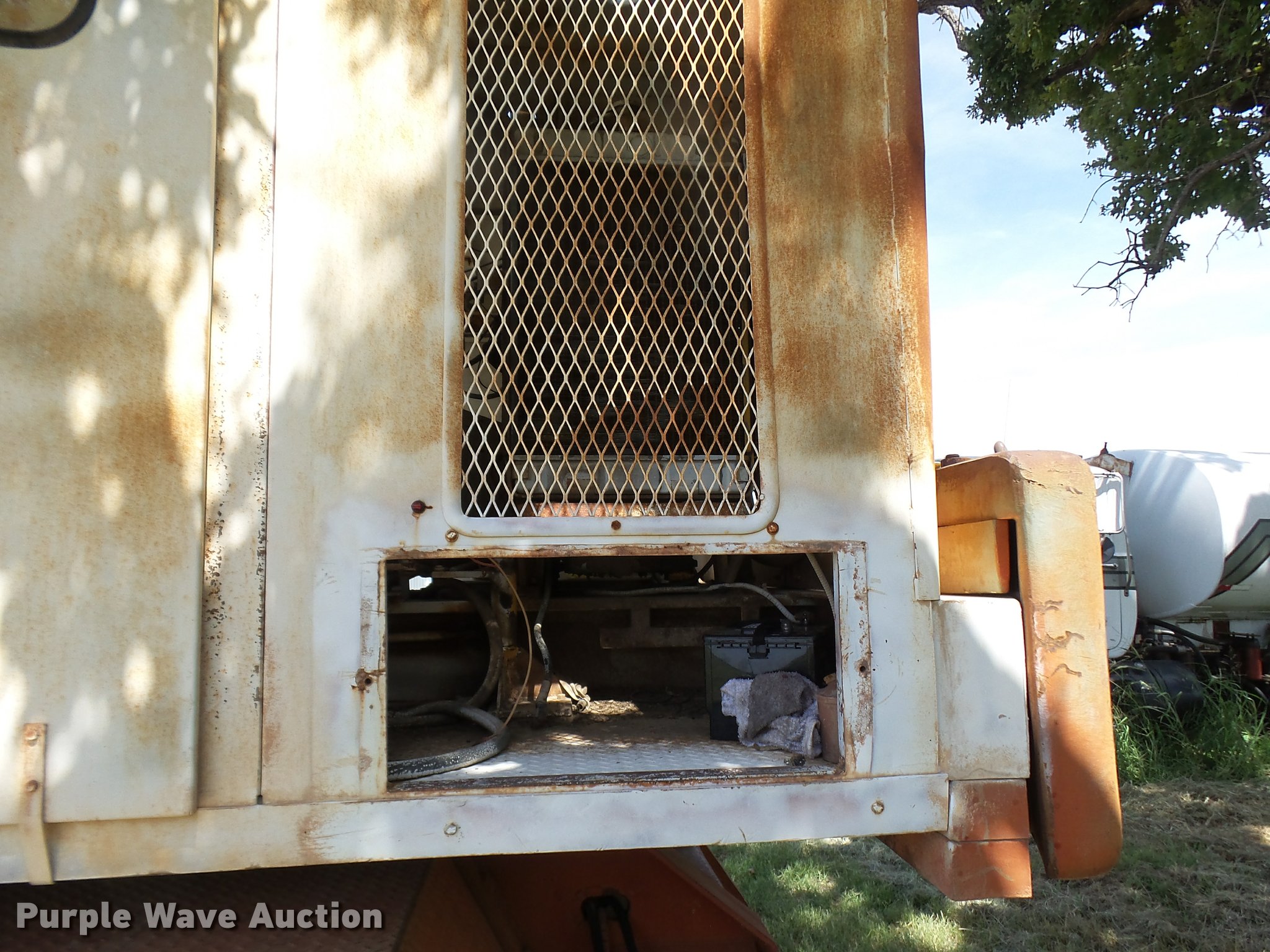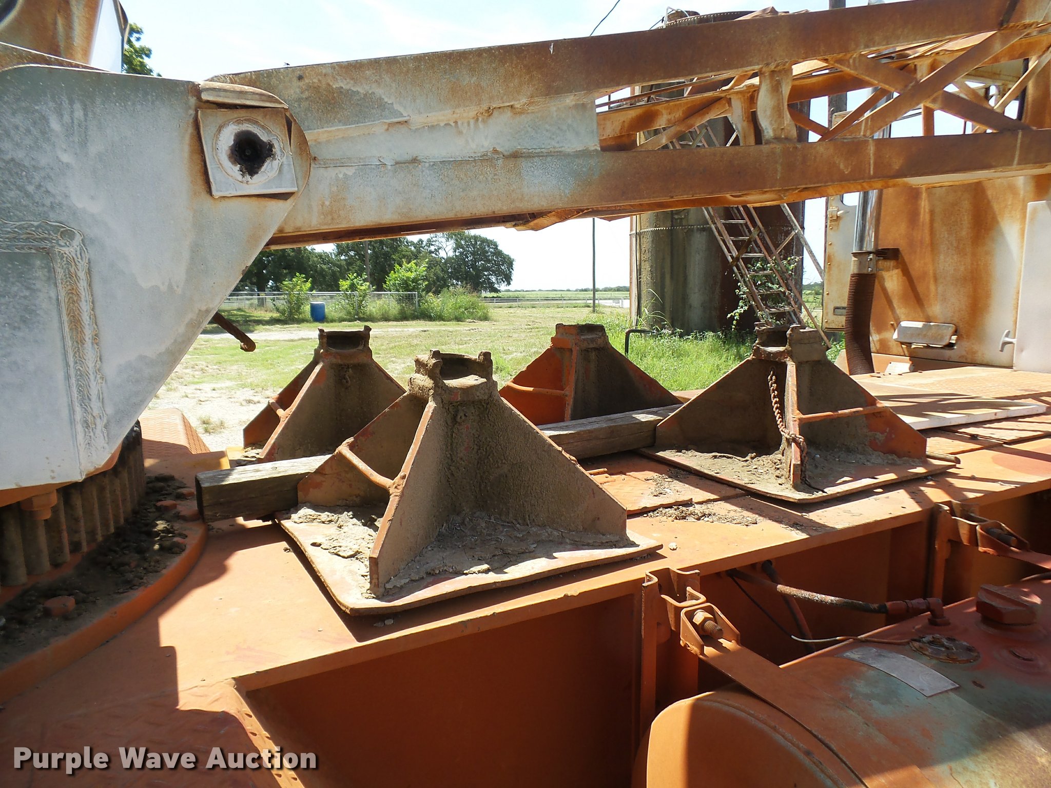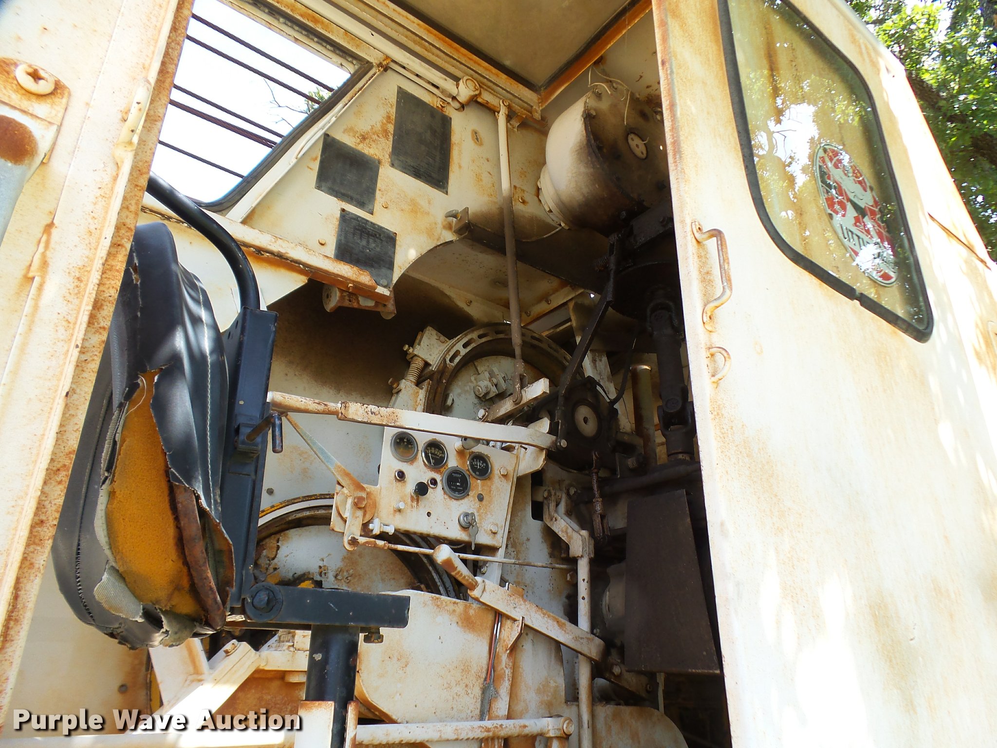 Purple Wave is selling a used Truck Crane in Texas. This item is a Little Giant truck crane with the following: International DV550BLGLQ2 eight cylinder lower diesel engine, Serial 19426, Manual transmission, John Deere six cylinder upper diesel engine, Stick crane controls, Lattice boom, (4) stabilizers, 50' boom length, Three sections, 25 ton max lift capacity, In-cab boom controls, Crane ball and hook, Hydraulic brakes, Triple axle, 11.00x20 tires, Needs battery, Crane does not raise