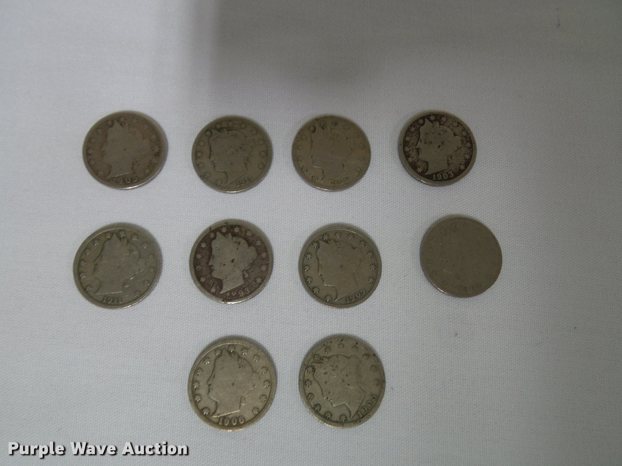 Purple Wave is selling a used All Other Household Items in Kansas. This item is a (10) Liberty head nickels with the following: 1902, (2) 1903, (2) 1905, 1906, 1909, (2) 1911, 1912