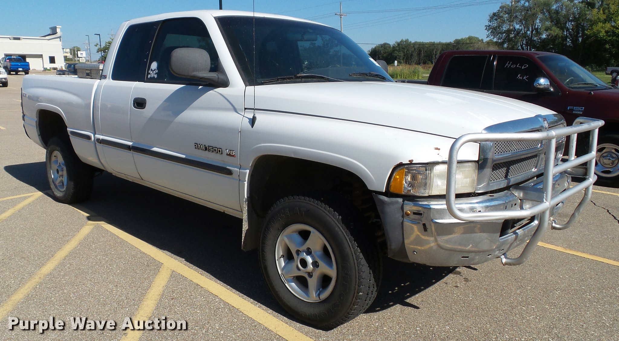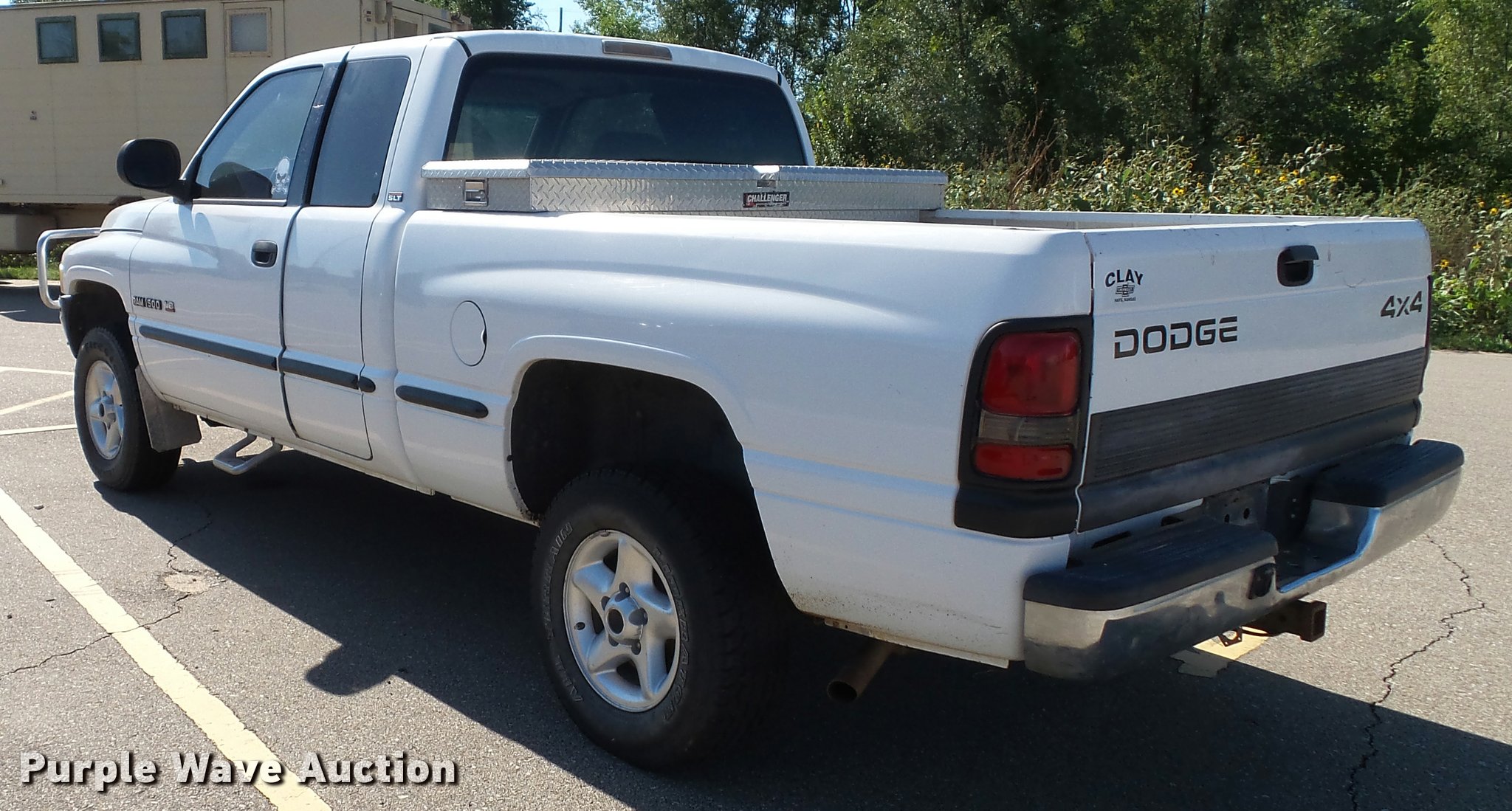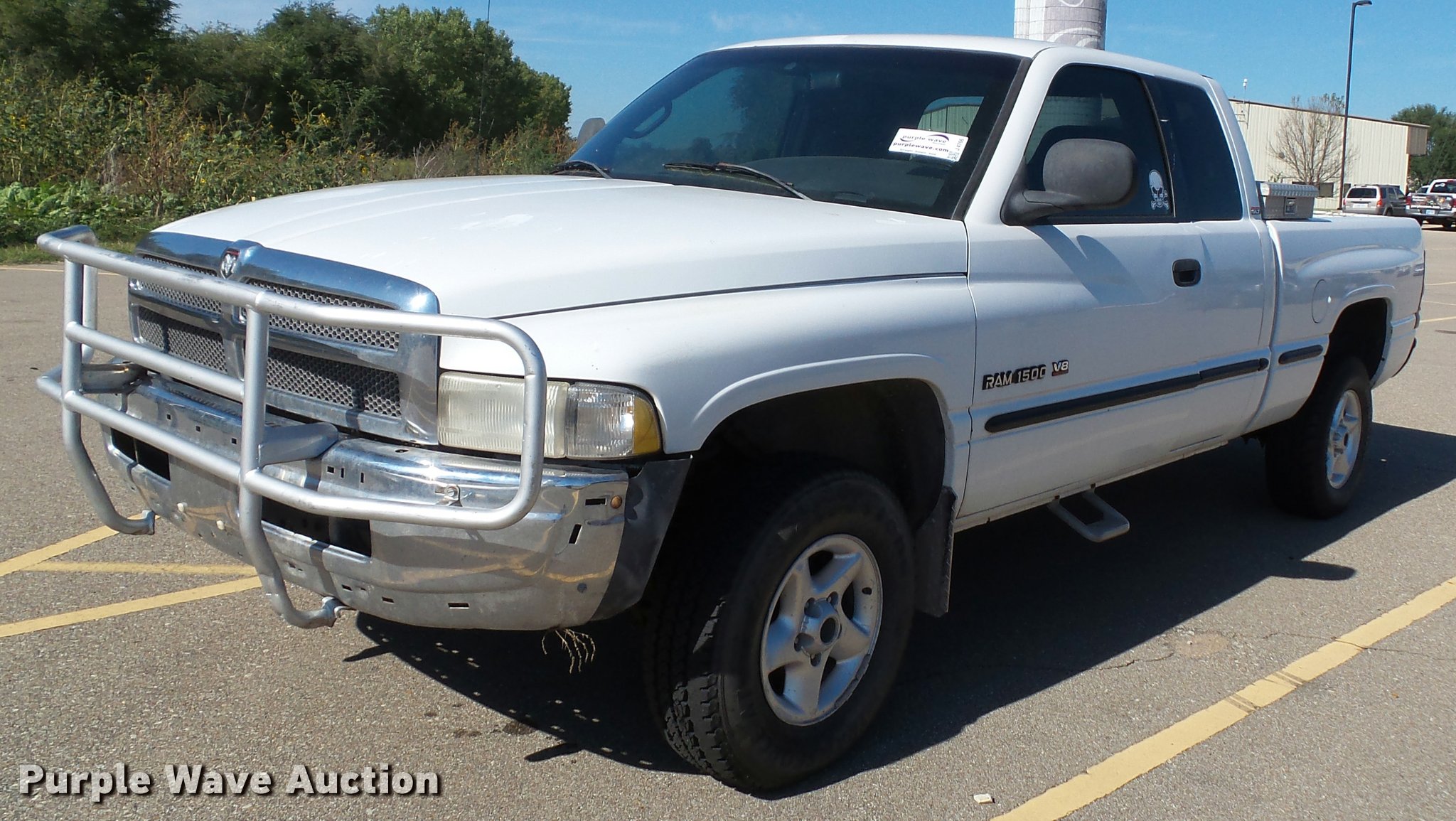 Purple Wave is selling a used 1/2 Ton Pickup or Van in Kansas. This item is a 1999 Dodge Ram 1500 Laramie SLT Quad Cab pickup truck with the following: 190,603 miles on odometer, 5.9L V8 OHV 16V gas engine, Automatic transmission, Four wheel drive, AC and heat, Tilt, Cruise, AM/FM, Power windows, locks, and mirrors, Cloth interior, Grill guard, Toolbox, Receiver hitch, Trailer wiring, 245/75R16 tires, Paint peeling, Rust, Cracked dash, Cracked windshield