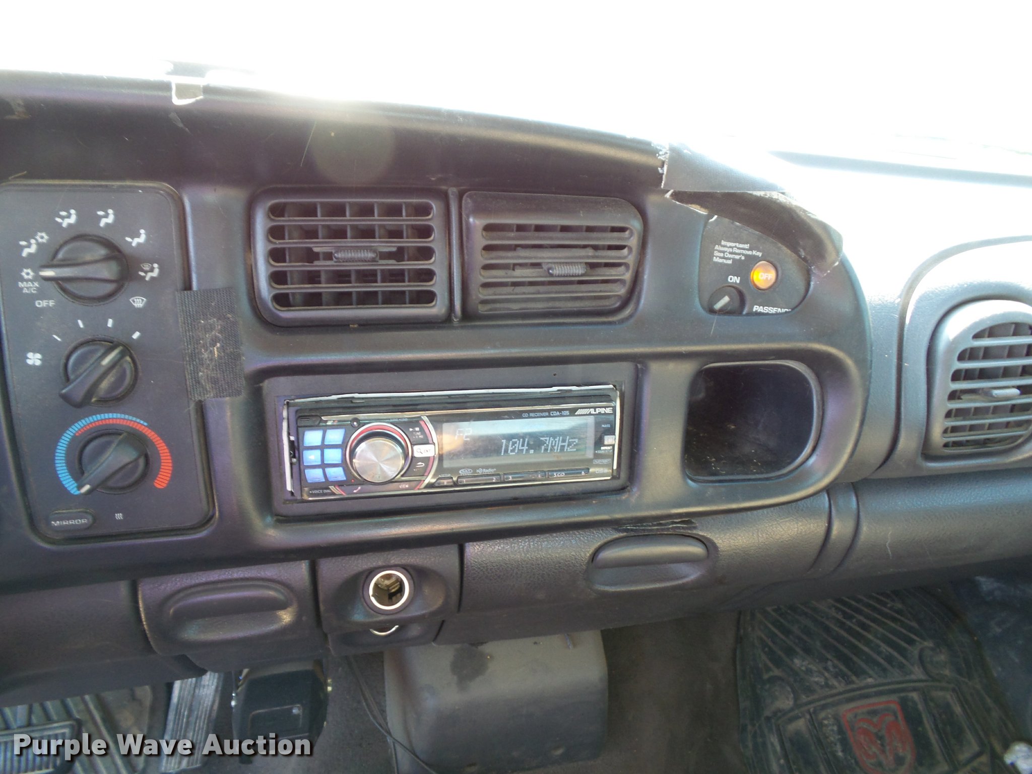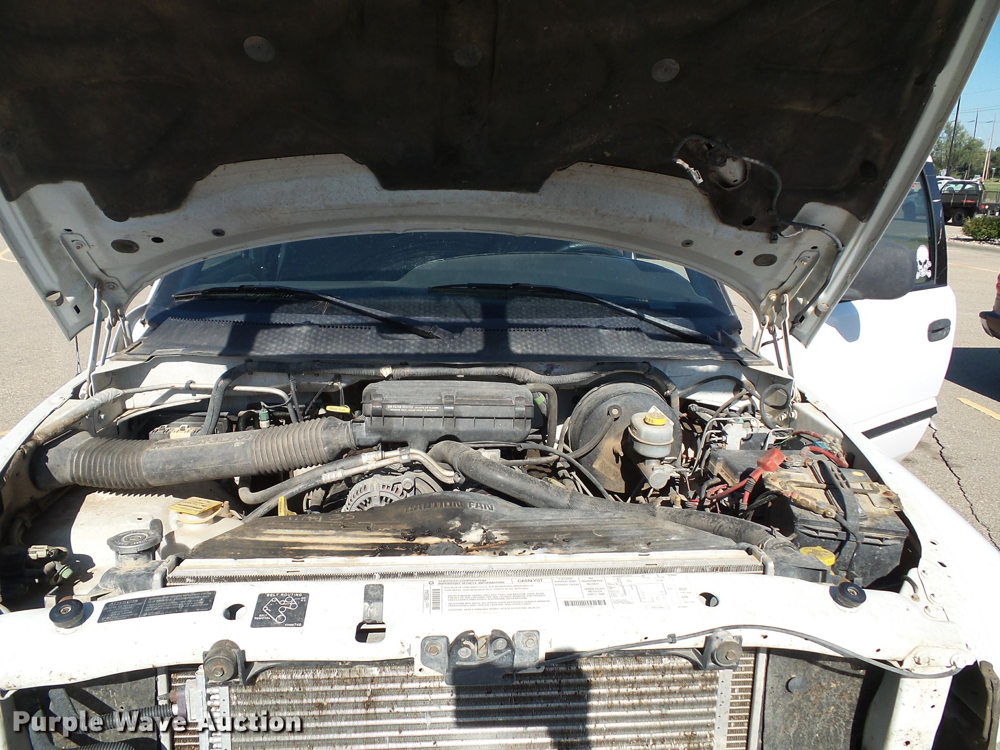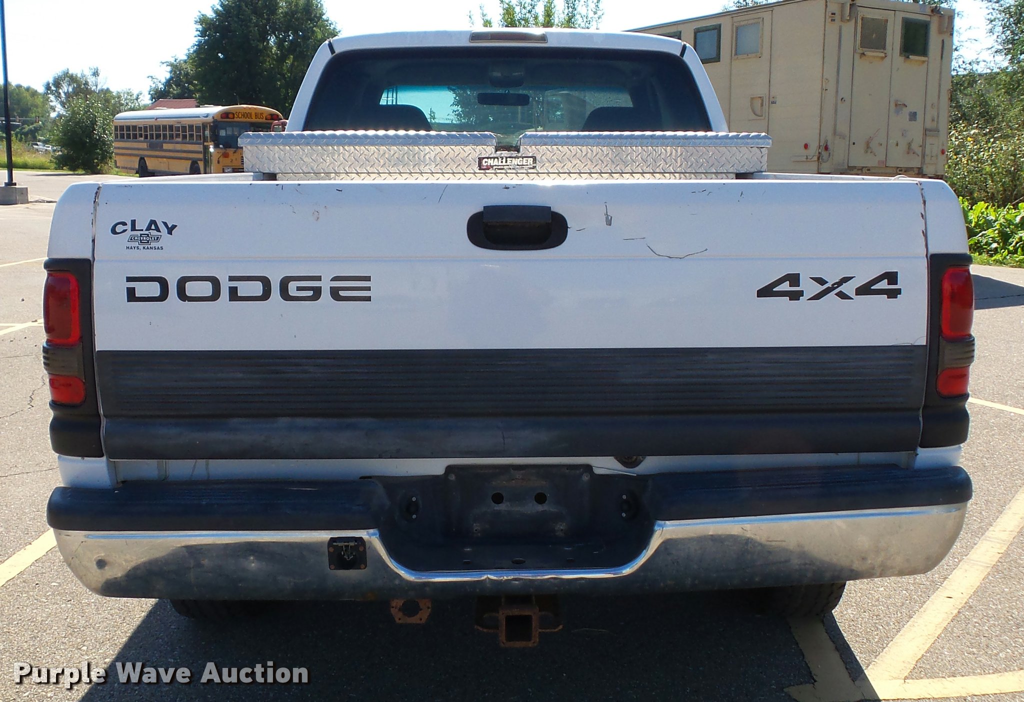 Purple Wave is selling a used 1/2 Ton Pickup or Van in Kansas. This item is a 1999 Dodge Ram 1500 Laramie SLT Quad Cab pickup truck with the following: 190,603 miles on odometer, 5.9L V8 OHV 16V gas engine, Automatic transmission, Four wheel drive, AC and heat, Tilt, Cruise, AM/FM, Power windows, locks, and mirrors, Cloth interior, Grill guard, Toolbox, Receiver hitch, Trailer wiring, 245/75R16 tires, Paint peeling, Rust, Cracked dash, Cracked windshield