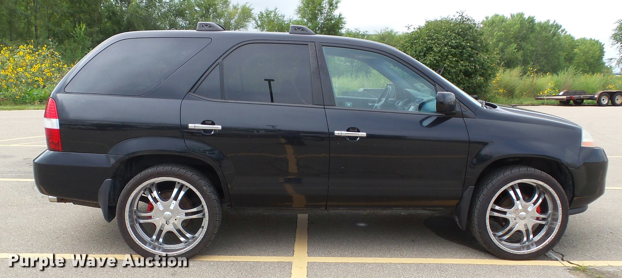 Purple Wave is selling a used Passenger Vehicle in Kansas. This item is a 2002 Acura MDX SUV with the following: 96,555 miles on odometer, 3.5L V6 SOHC 24V gas engine, Automatic transmission, Four wheel drive, AC and heat, Tilt, Cruise, AM/FM/CD, Power windows, locks, mirrors, and seats, Heated seats, Leather interior, Power sunroof, Fog lights, Speaker box, (2) Kicker 12" speakers, Luggage rack, Receiver hitch, Trailer wiring, Venezia Crusade STXRR wheels, 265/35R22 tires