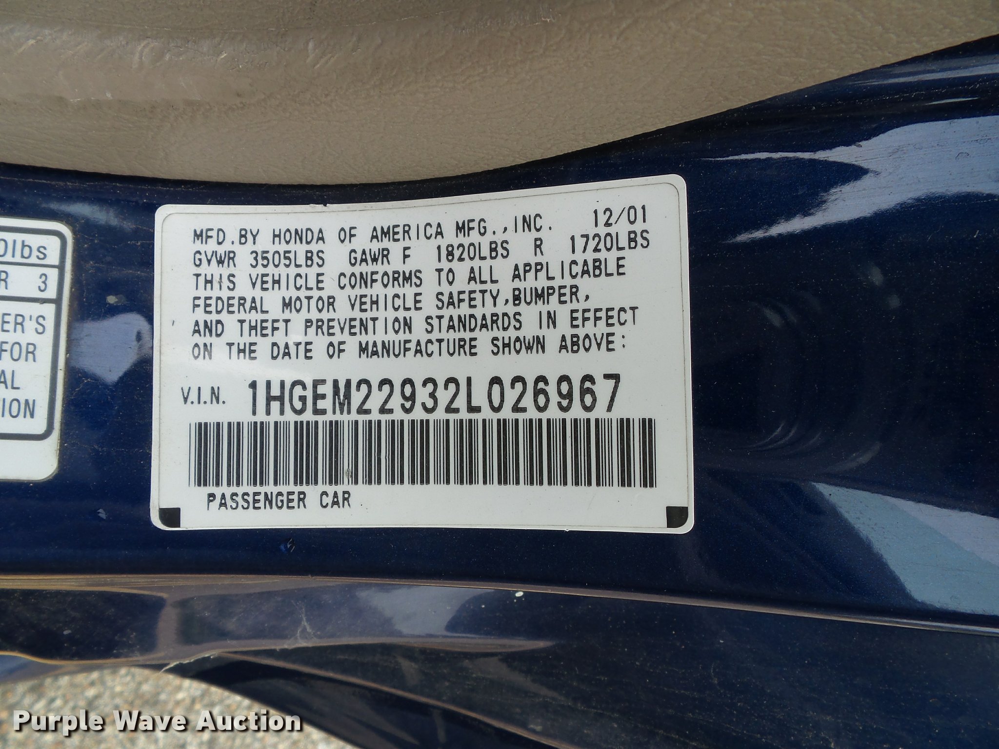 • J4786 image for item J4786 2002 Honda Civic EX