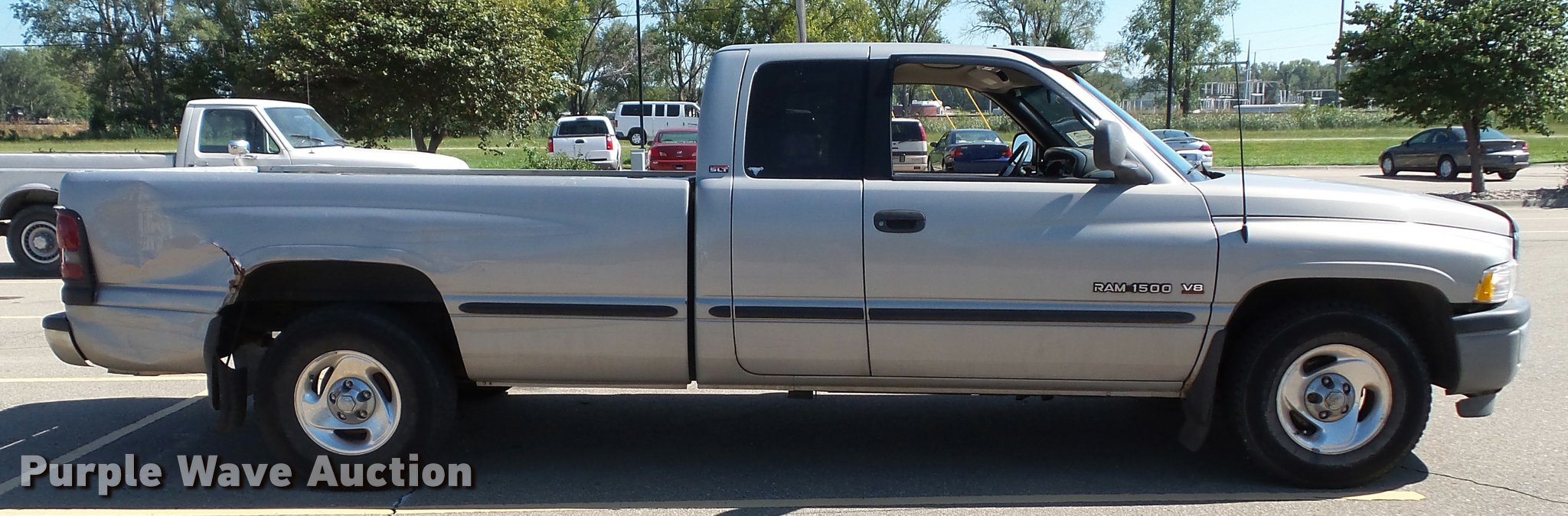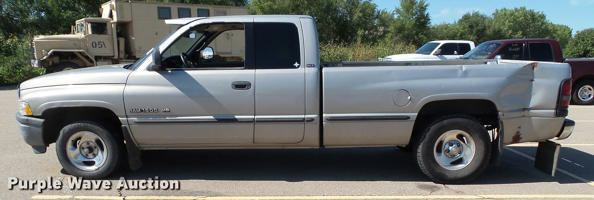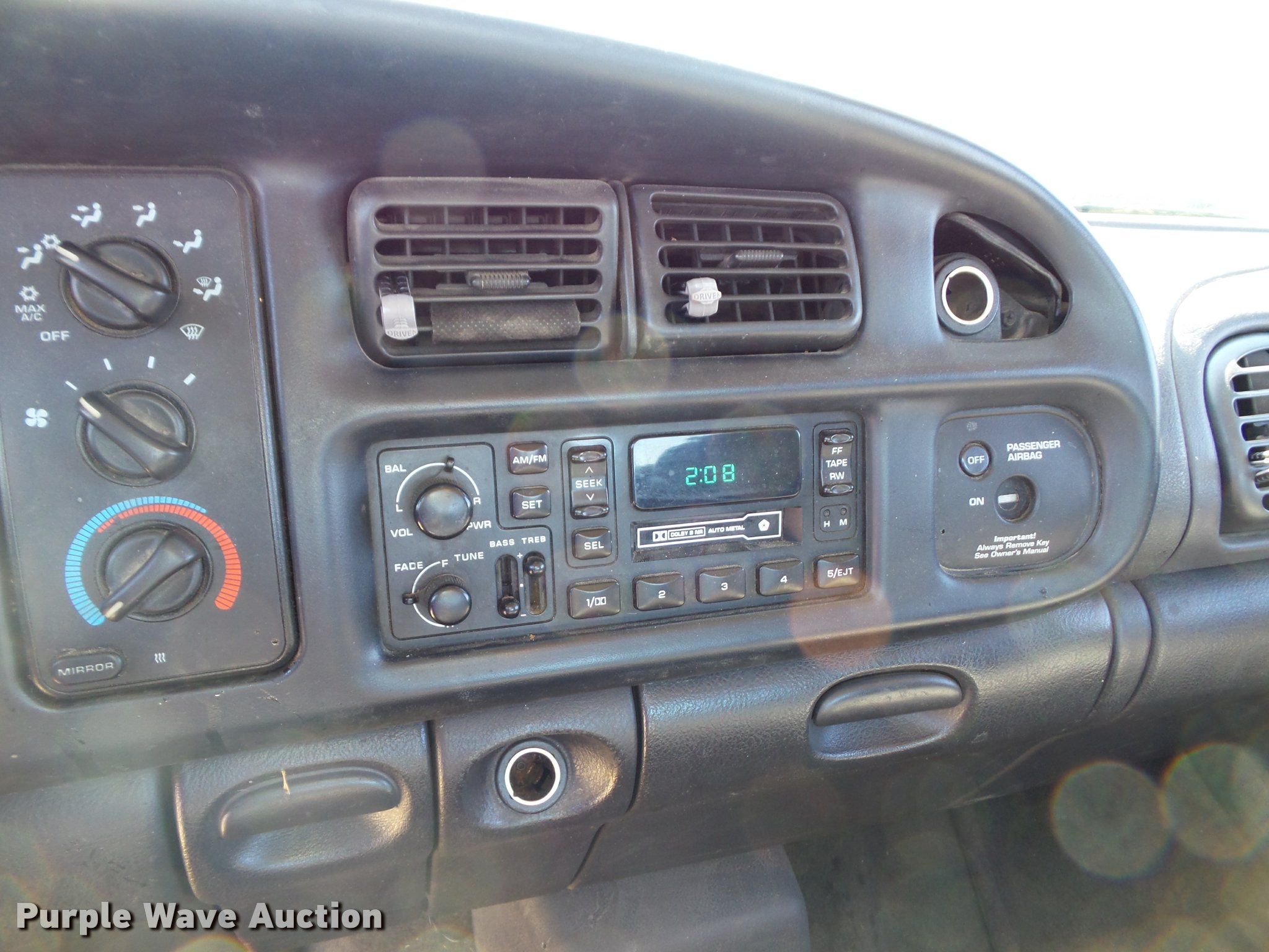 Purple Wave is selling a used 1/2 Ton Pickup or Van in Kansas. This item is a 1998 Dodge Ram 1500 Laramie SLT Quad Cab pickup truck with the following: 159,232 miles on odometer, 5.9L V8 OHV 16V gas engine, Automatic transmission, AC and heat, Non-operational AC, Tilt, Cruise, AM/FM/cassette, Power windows, locks, mirrors, and seat, Cloth interior, Heated mirrors, Receiver hitch, Trailer wiring, 245/75R16 tires, ABS light on, Check engine light on, Bed damage, Cracked driver's side mirror