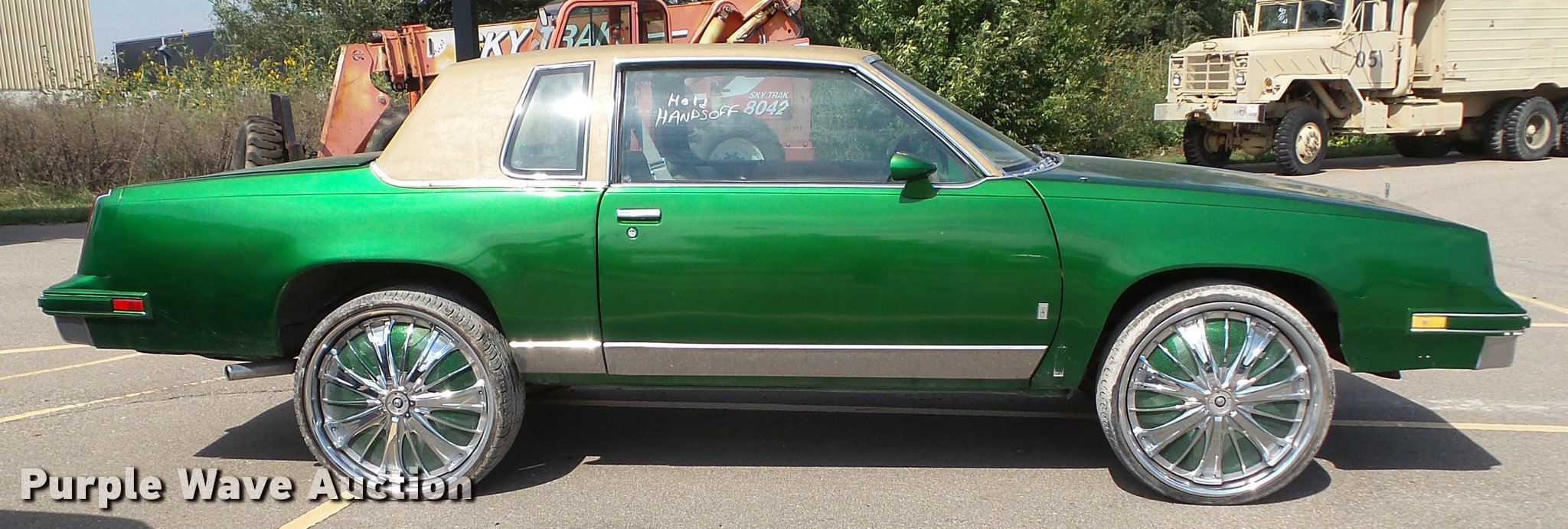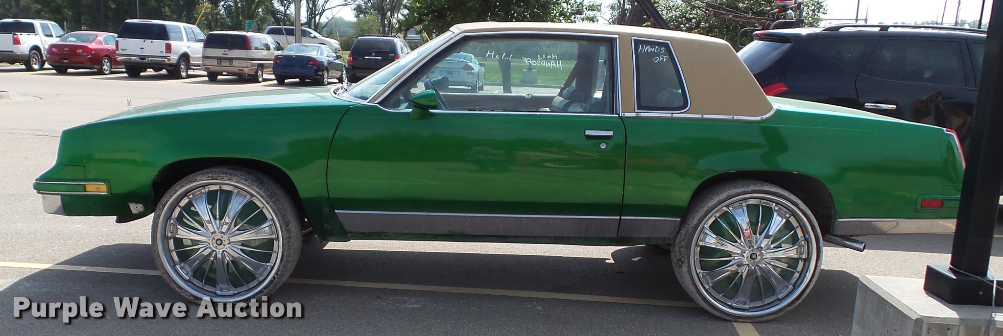Purple Wave is selling a used Passenger Vehicle in Kansas. This item is a 1984 Oldsmobile Cutlass Supreme Brougham with the following: 41,704 miles on odometer, V8 gas engine, Automatic transmission, AC and heat, Tilt, Power windows, locks, and mirrors, Sunroof, Custom leahter interior, 10.4" T-view color monitor, Spinner wheels, 275/25ZR24 tires, Ignition key only, Transmission issues, Engine issues, Starer or flywheel issues, Cracked windshield, Trunk lock missing, Rust, Stereo missing, Unit must he towed or hauled