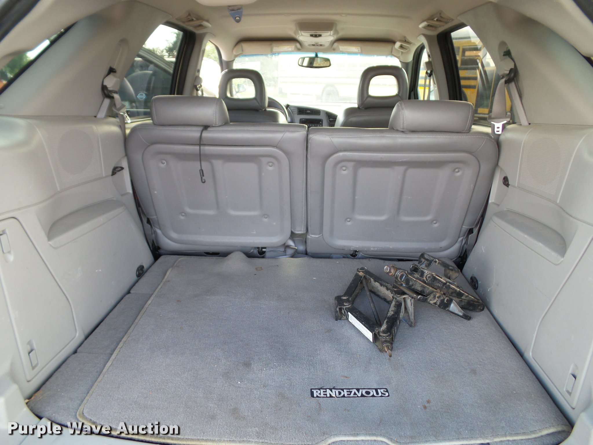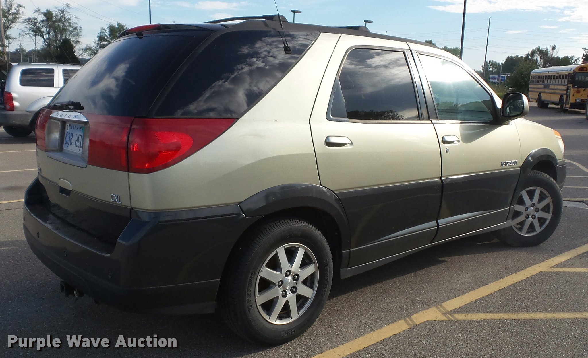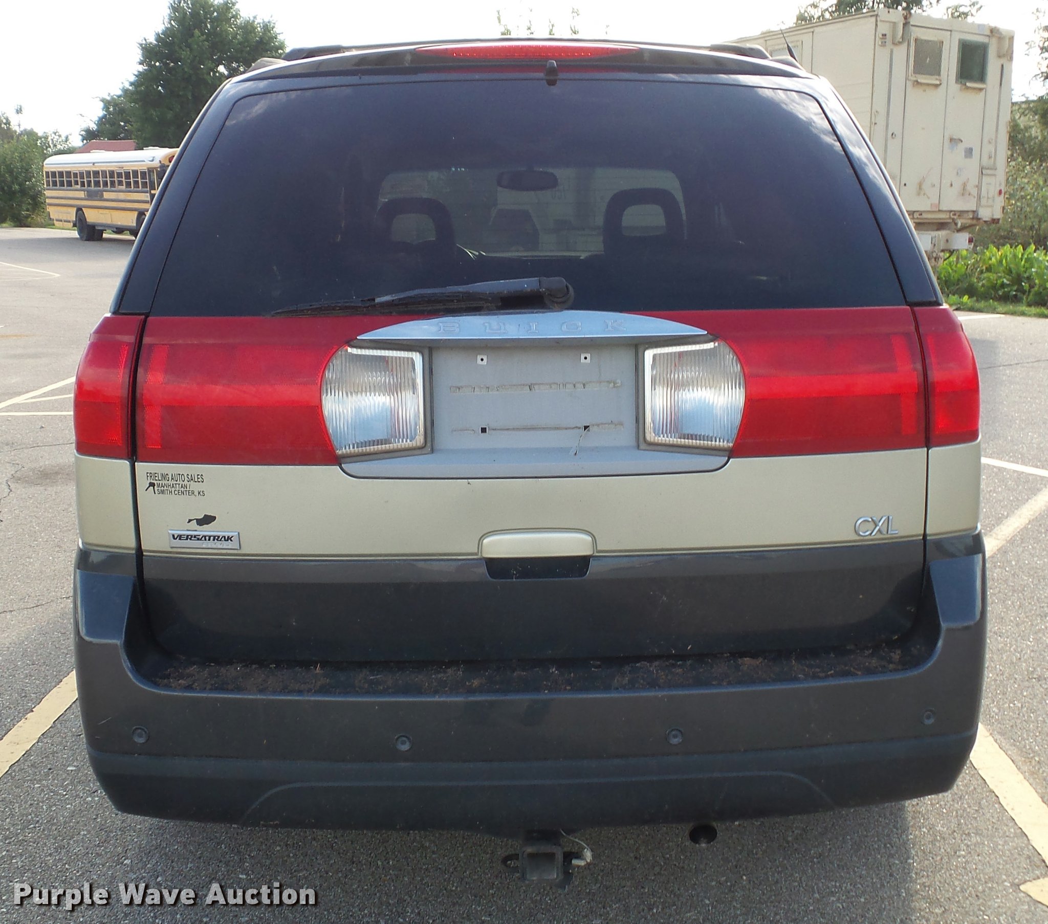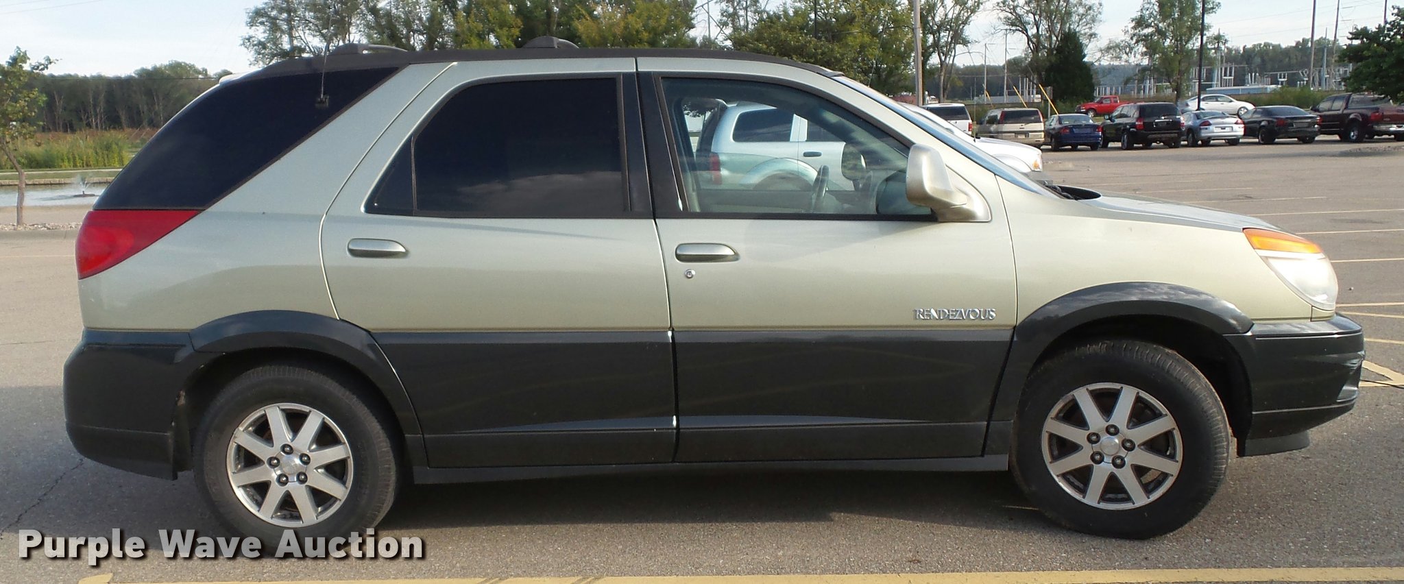 Purple Wave is selling a used Passenger Vehicle in Kansas. This item is a 2002 Buick Rendezvous CXL SUV with the following: 182,376 miles on odometer, 3.4L V6 OHV 12V gas engine, Automatic transmission, Versatrak all wheel drive, AC and heat, Tilt, Cruise, AM/FM/CD/cassette, Power windows, locks, mirrors, and seat, Heated seats, Vinyl interior, Fog lights, Luggage rack, Receiver hitch, Trailer wiring, 215/70R16 tires, Dead battery, ABS light on, Anti-freeze leak, Unit must bed towed or hauled