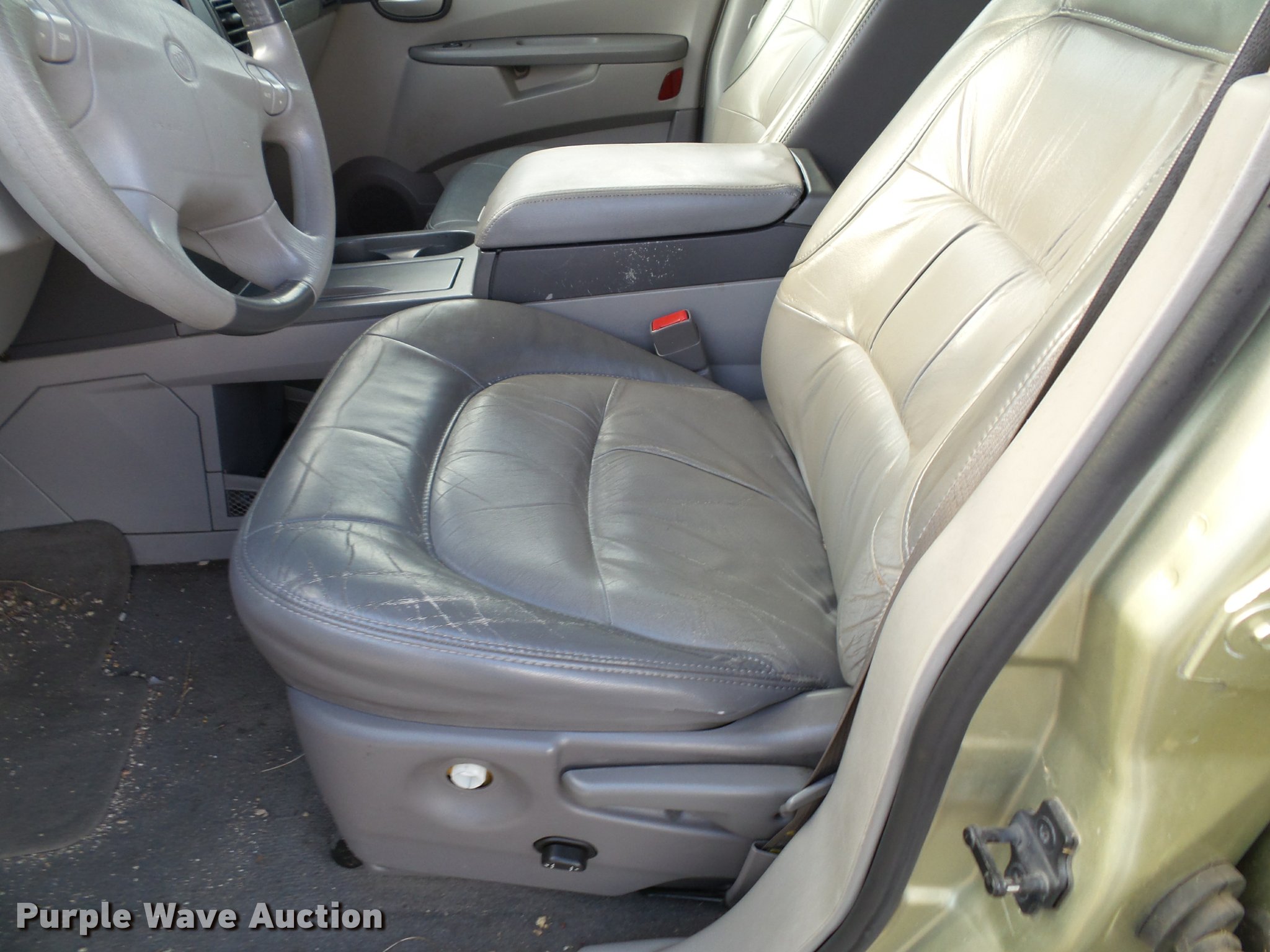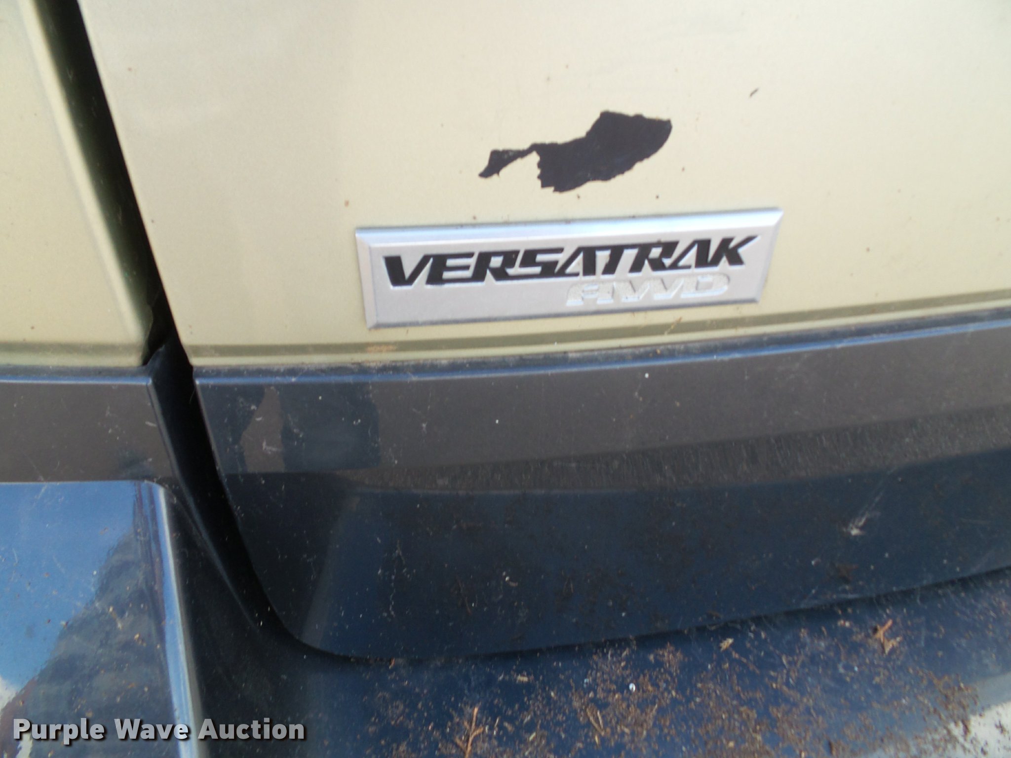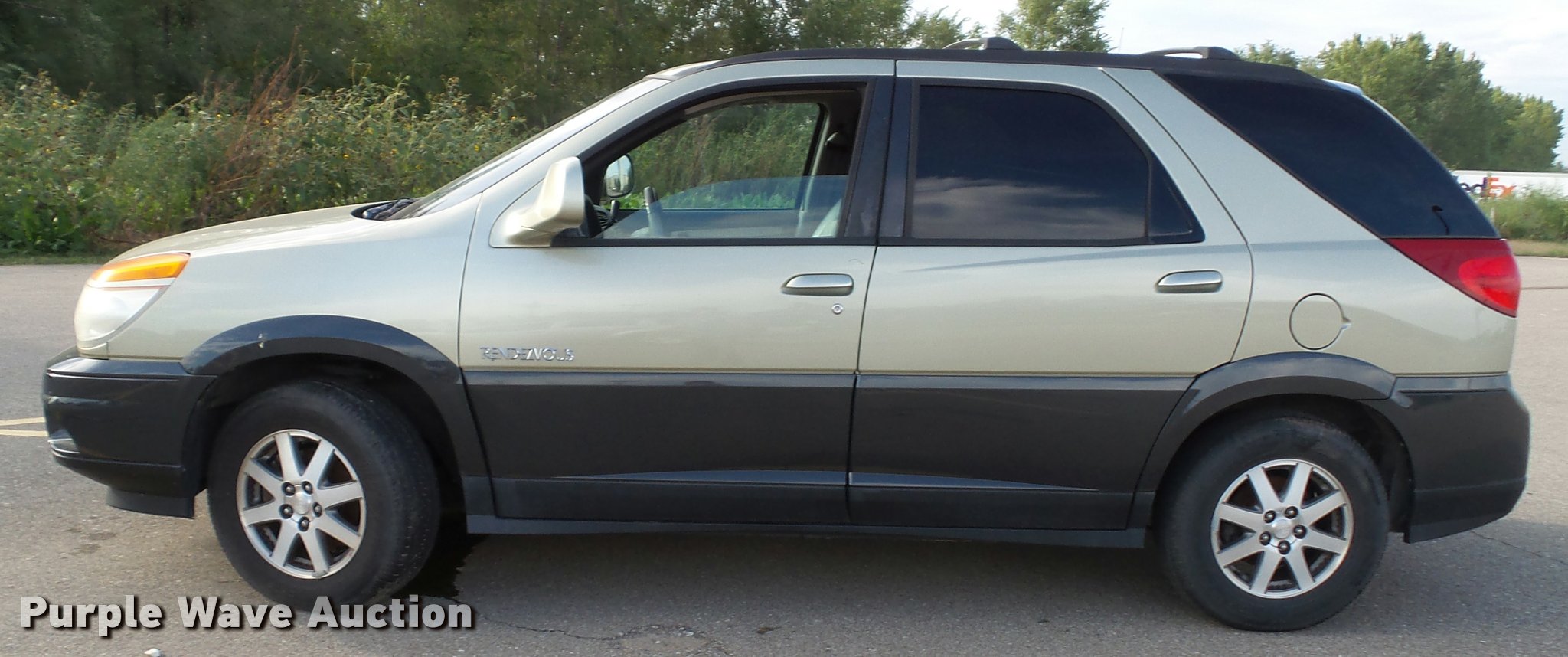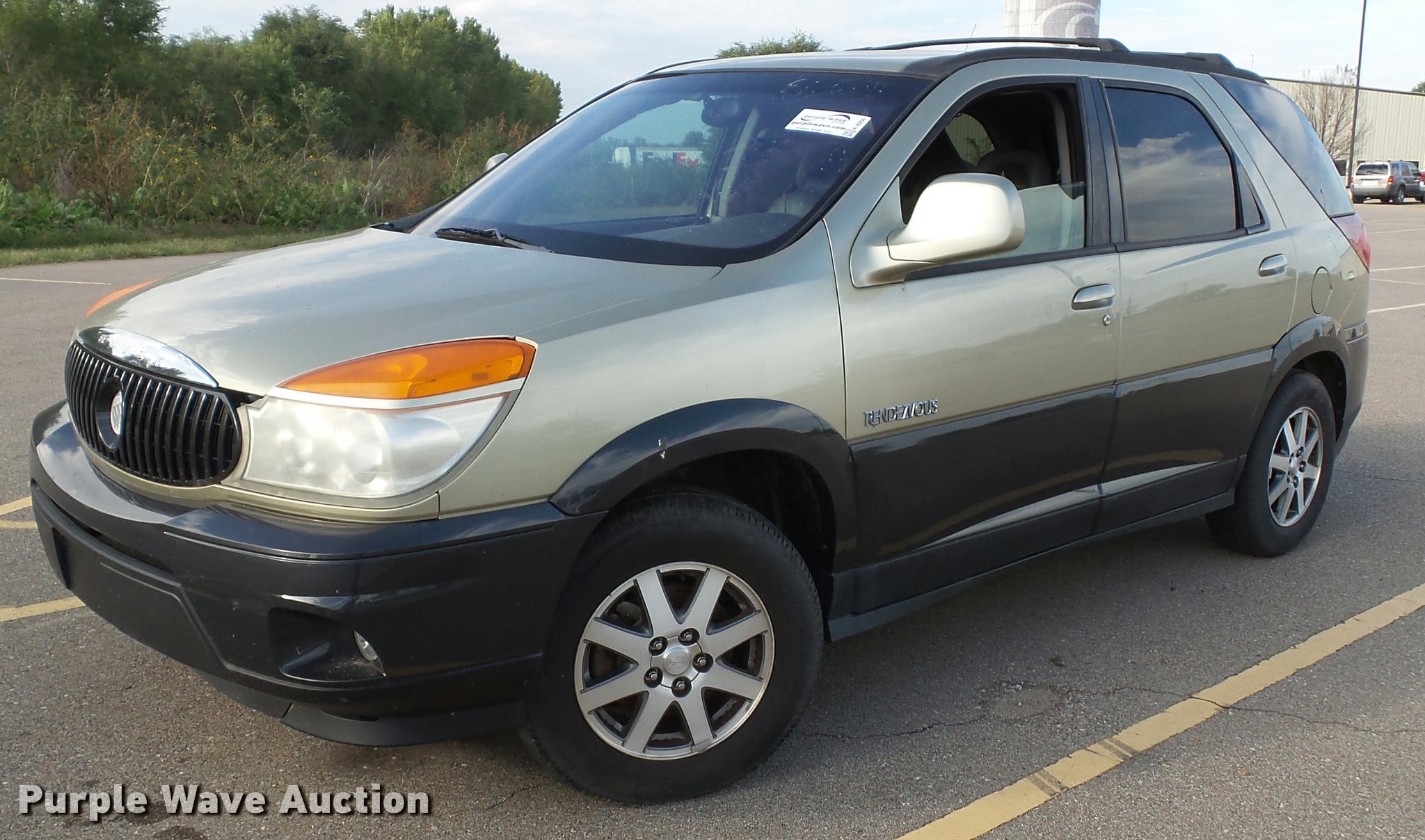 Purple Wave is selling a used Passenger Vehicle in Kansas. This item is a 2002 Buick Rendezvous CXL SUV with the following: 182,376 miles on odometer, 3.4L V6 OHV 12V gas engine, Automatic transmission, Versatrak all wheel drive, AC and heat, Tilt, Cruise, AM/FM/CD/cassette, Power windows, locks, mirrors, and seat, Heated seats, Vinyl interior, Fog lights, Luggage rack, Receiver hitch, Trailer wiring, 215/70R16 tires, Dead battery, ABS light on, Anti-freeze leak, Unit must bed towed or hauled