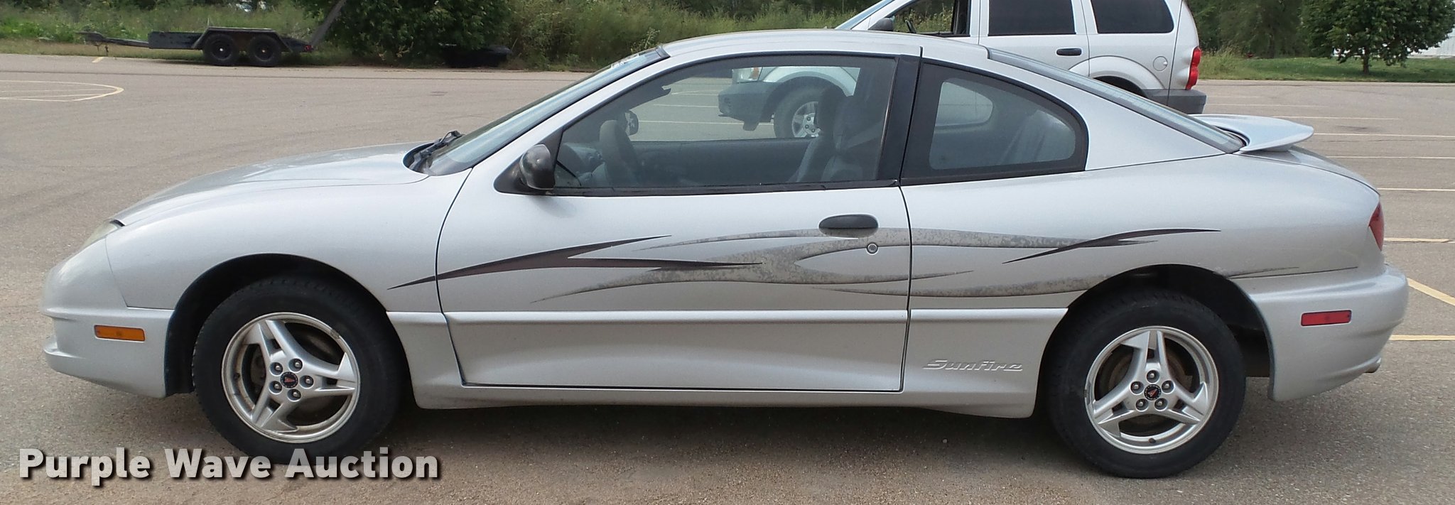 Purple Wave is selling a used Passenger Vehicle in Kansas. This item is a 2004 Pontiac Sunfire with the following: 104,155 miles on odometer, 2.2L L4 DOHC 16V gas engine, Automatic transmission, AC and heat, Tilt, Cruise, AM/FM/CD, Power windows, locks, and mirrors, Cloth interior, Fog lights, 195/60R15 tires, Check engine light on, Side mirrors damaged