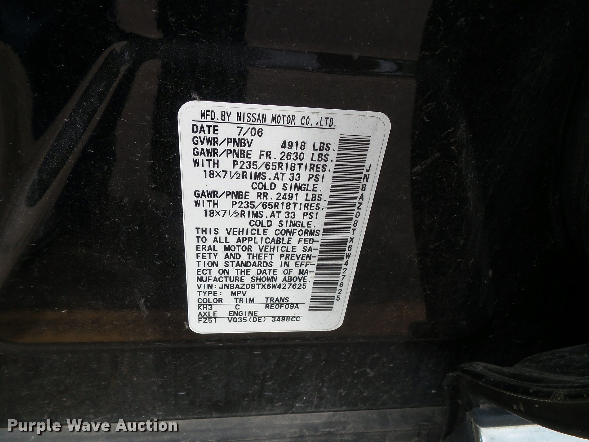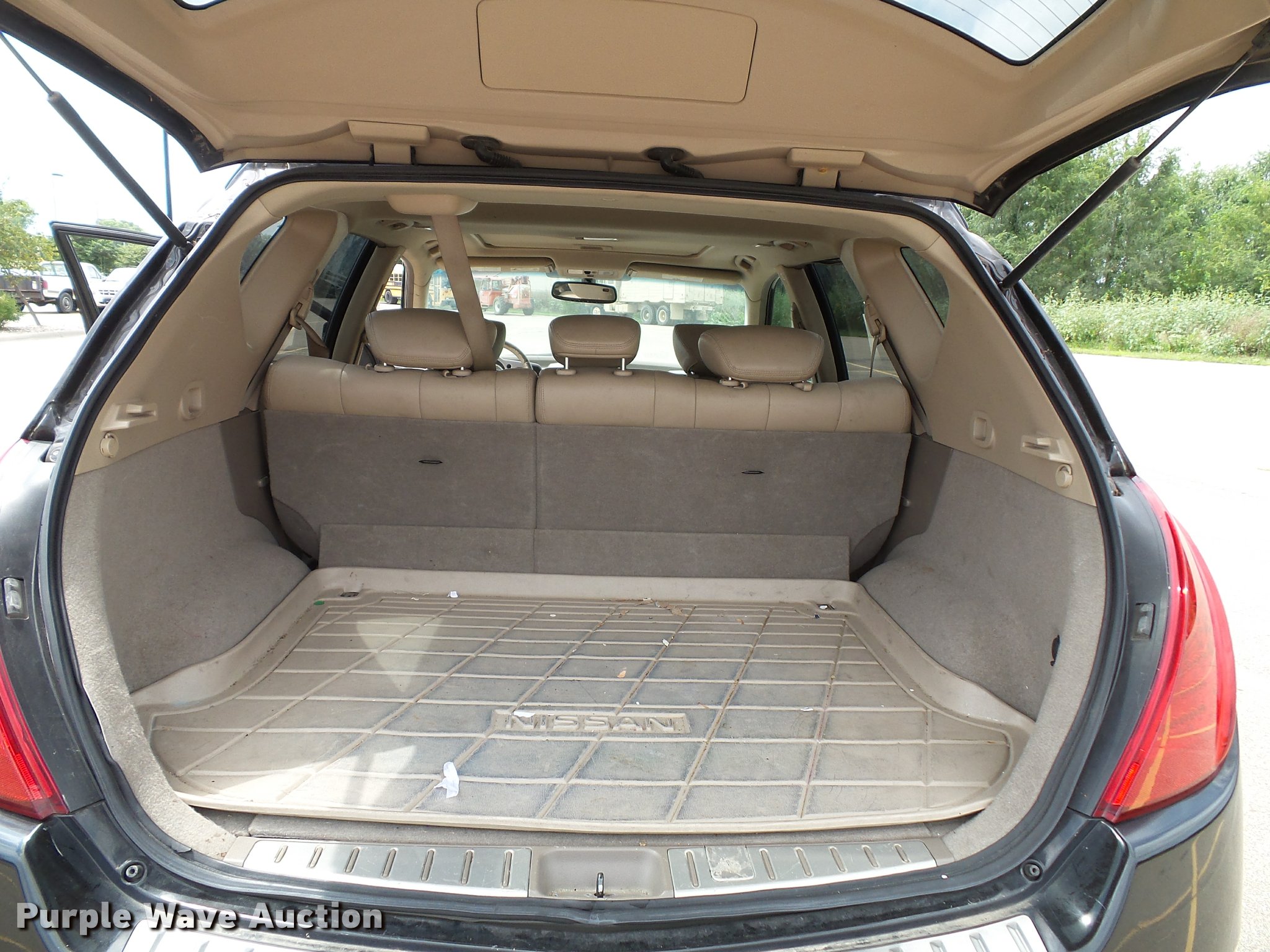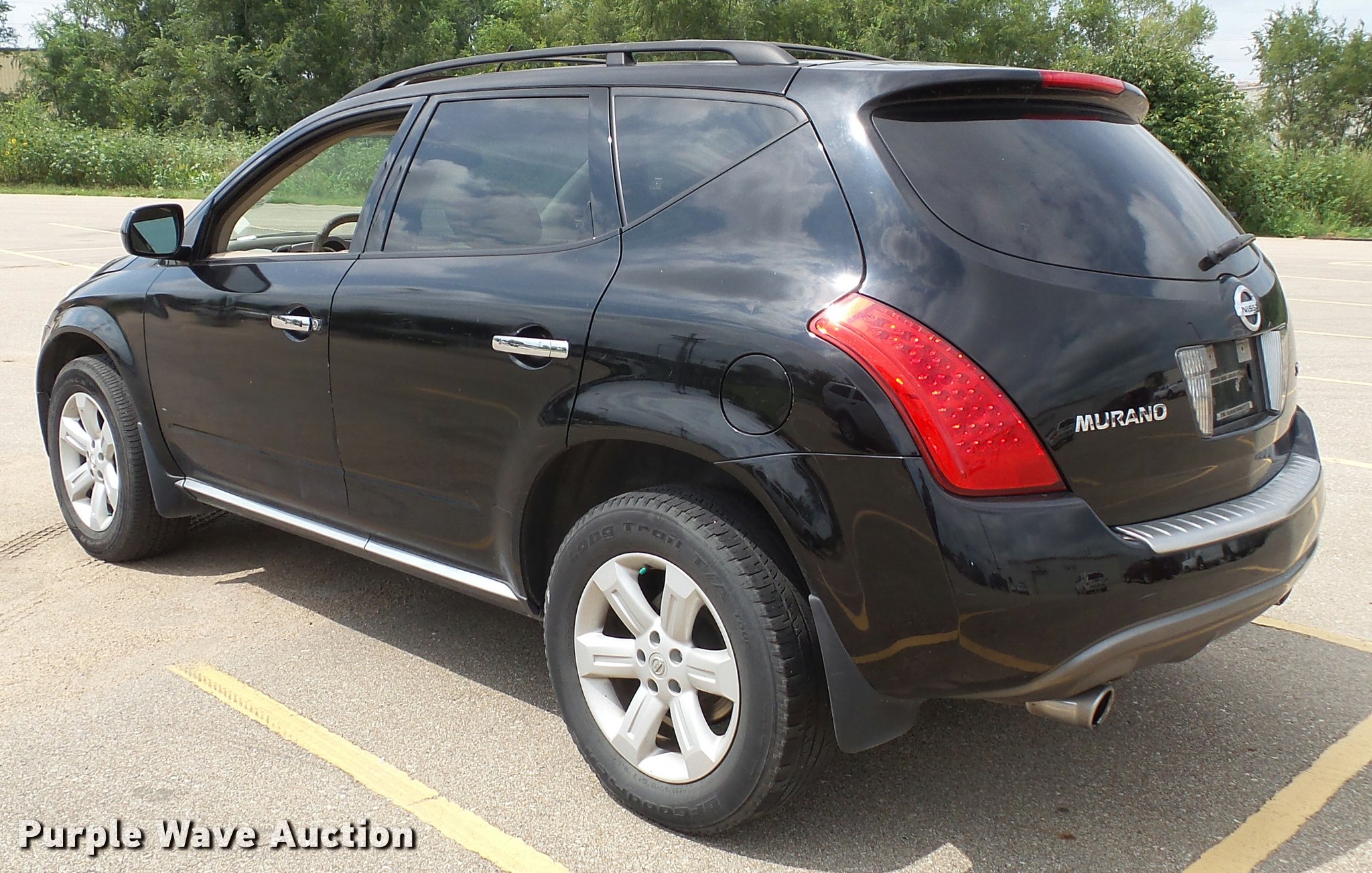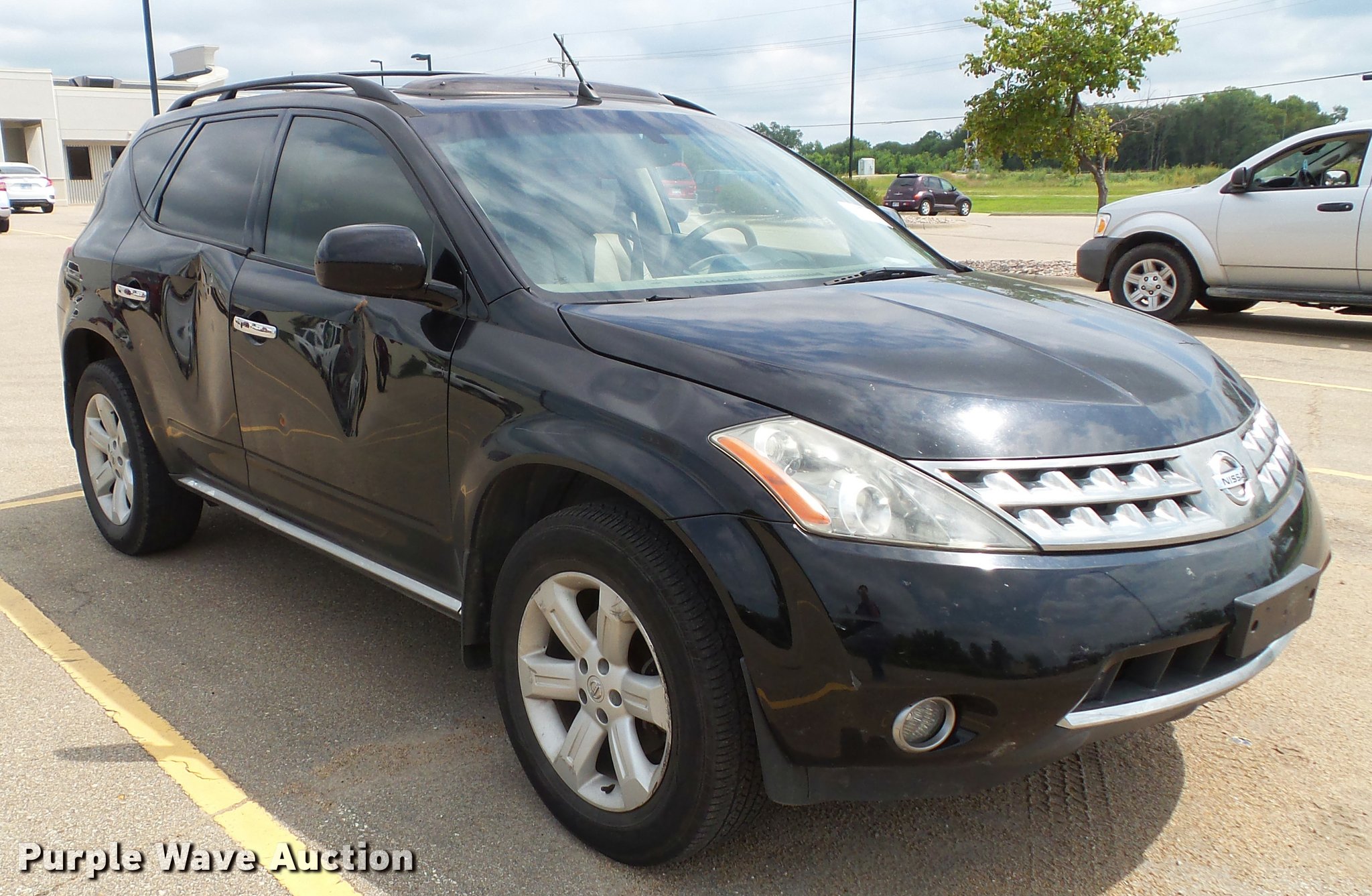 Purple Wave is selling a used Passenger Vehicle in Kansas. This item is a 2006 Nissan Murano SL SUV with the following: 156,982 miles on odometer, 3.5L V6 DOHC 24V gas engine, Automatic transmission, AC and heat, Tilt, Cruise, AM/FM/CD/cassette, Power windows, locks, mirrors, and seats, Leather interior, Sunroof, 235/65R18 tires, Battery dead, Rust, Passenger side cosmetic damage