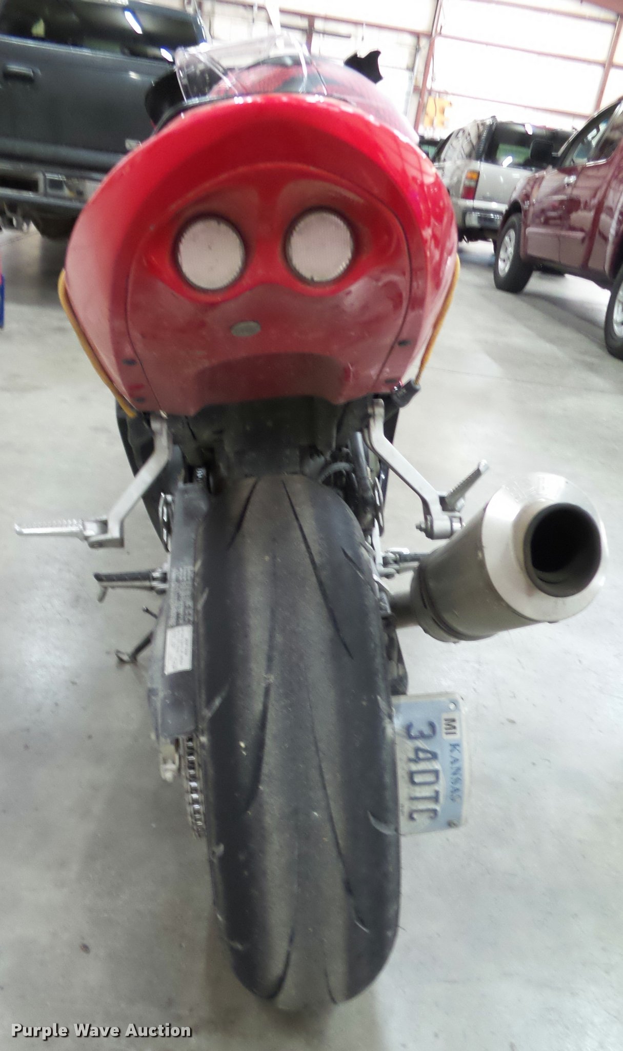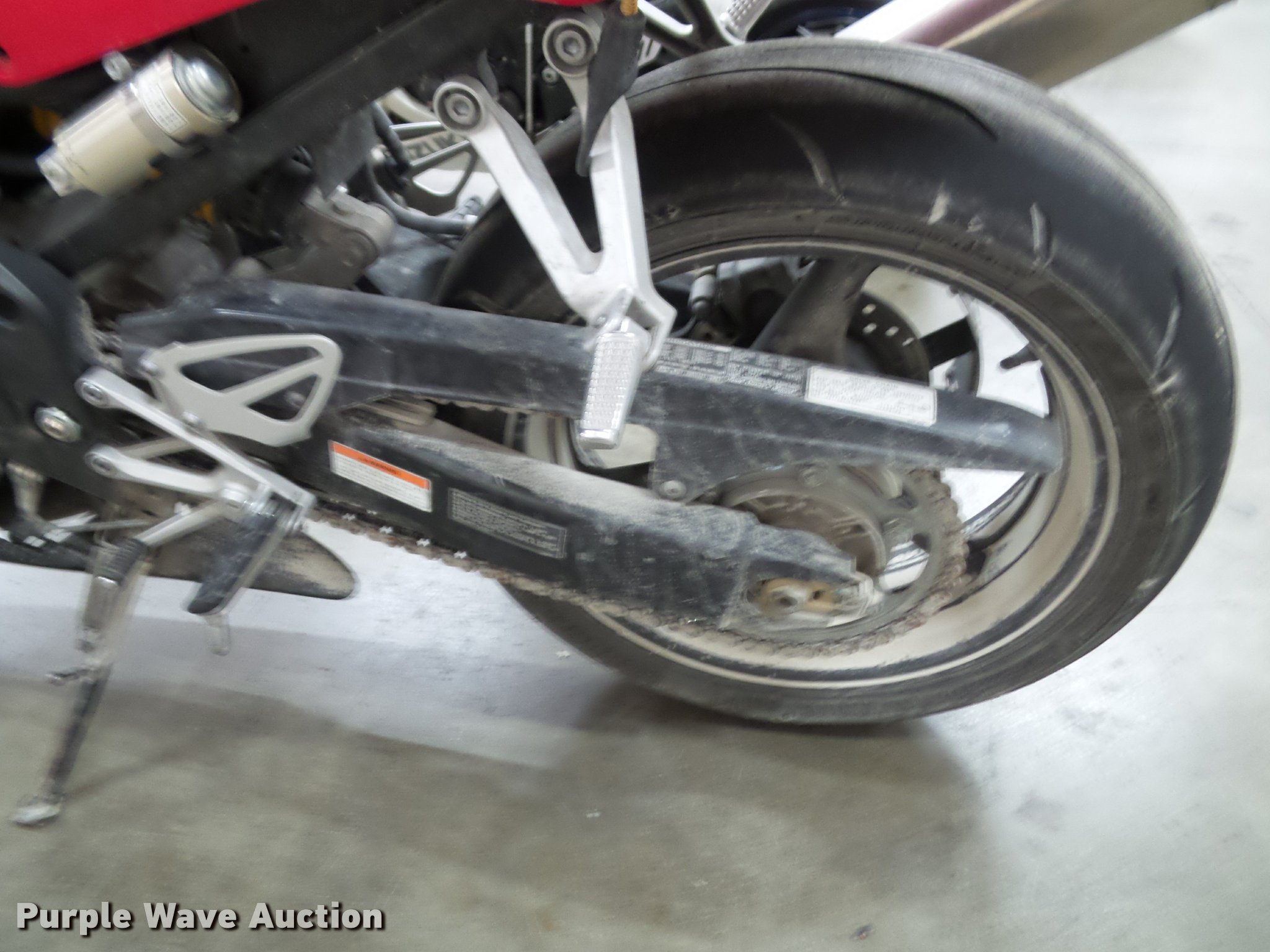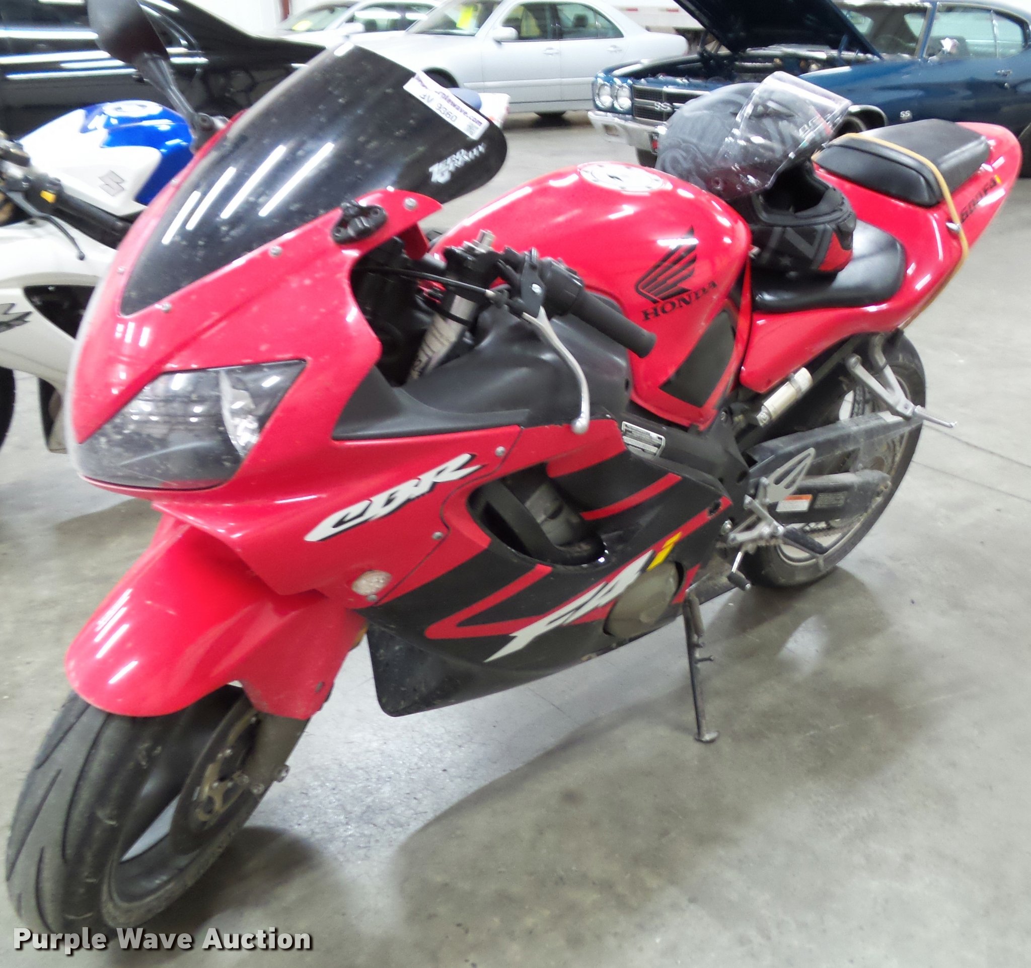 Purple Wave is selling a used Motorcycle in Kansas. This item is a 2002 Honda CBR600F4 motorcycle with the following: 24,537 miles on odometer, 599cc gas engine, Manual transmission, Helmet, Chain drive, Yoshimura RS-3 stainless steel exhaust, 210/70ZR17 front tire, 180/55ZR17 rear tire