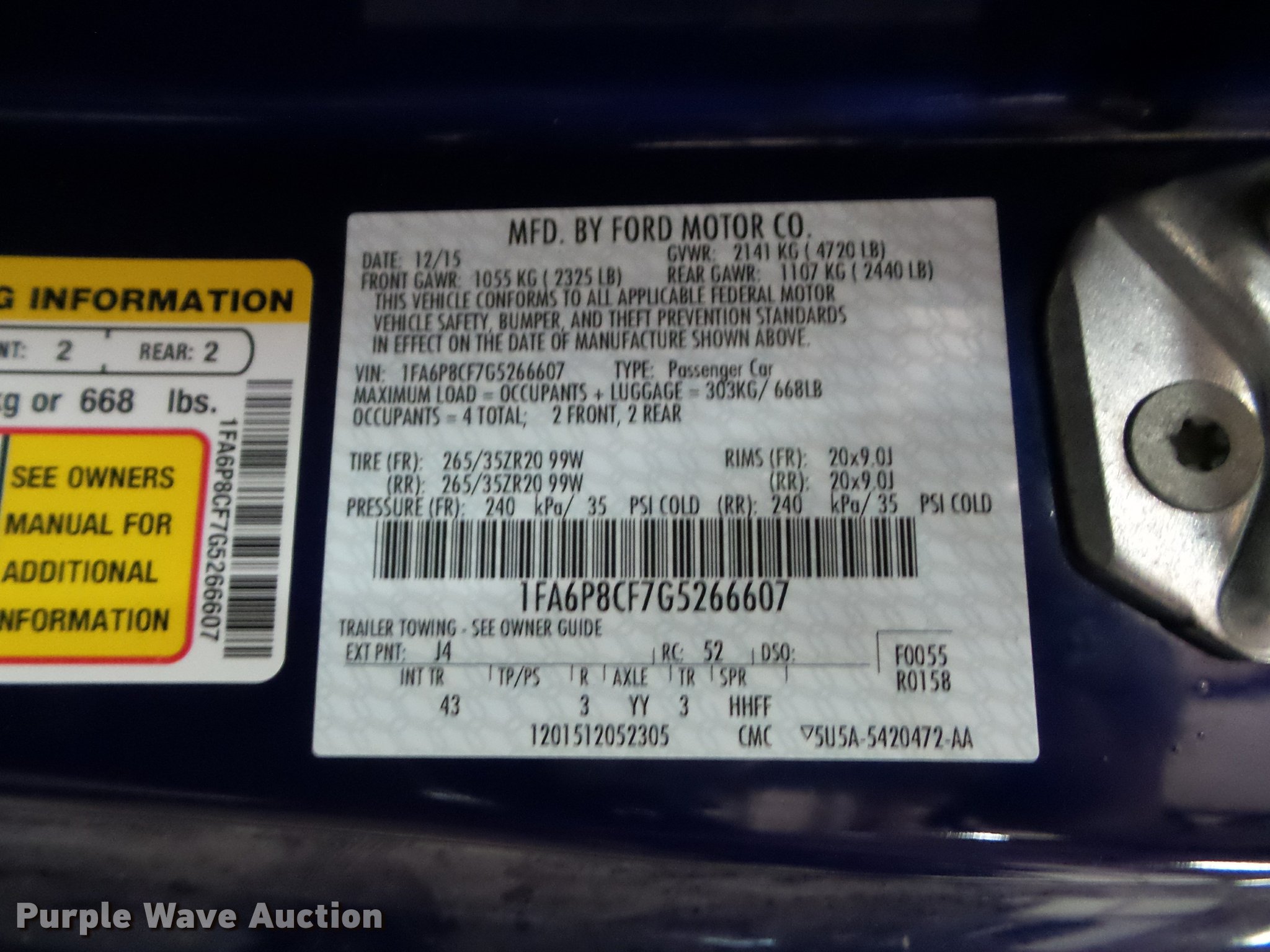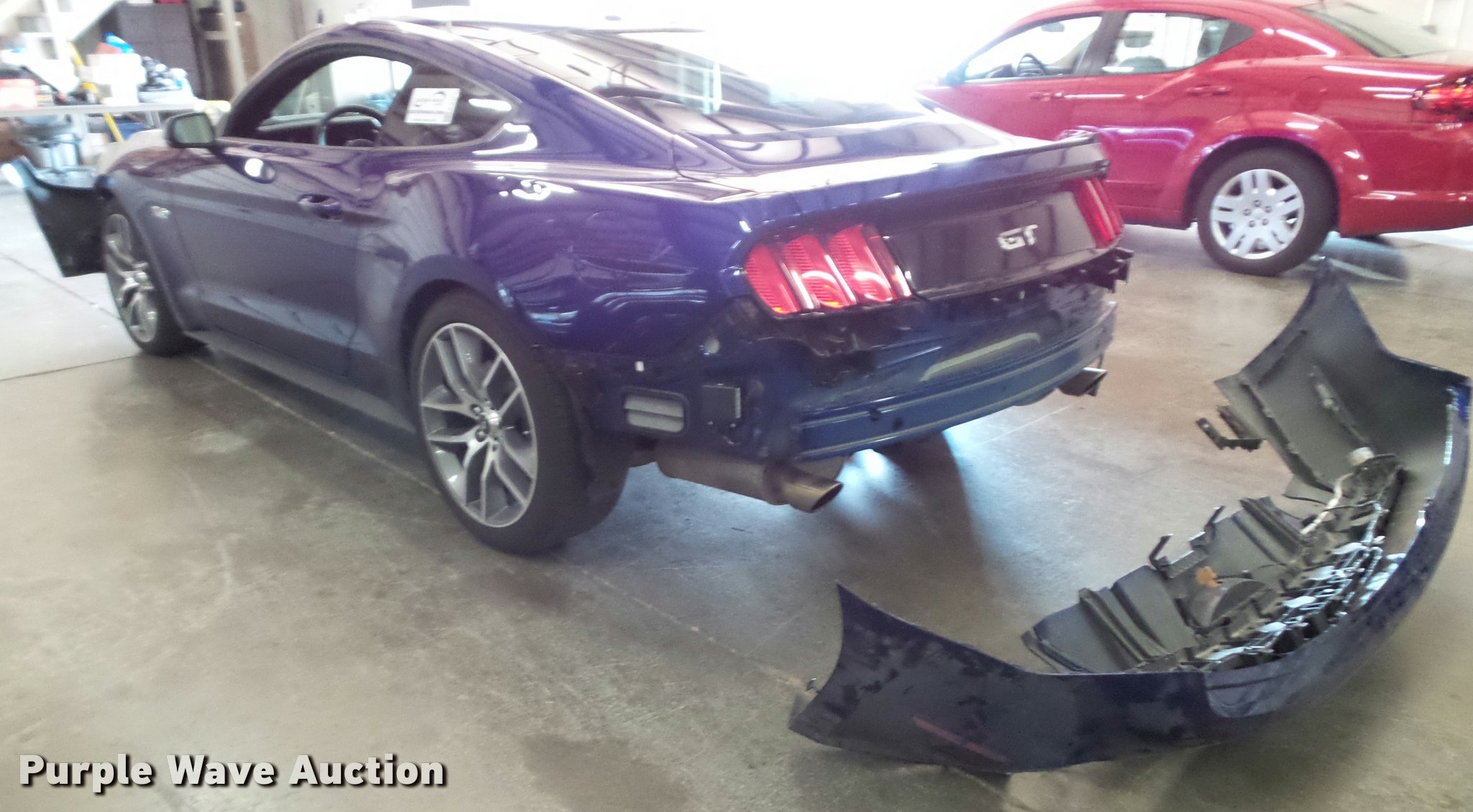Purple Wave is selling a used Passenger Vehicle in Kansas. This item is a 2016 Ford Mustang GT with the following: 6,721 miles on odometer, 5.0L V8 DOHC 32V gas engine, Automatic transmission, AC and heat, Tilt, Cruise, AM/FM, Power windows, locks, mirrors, and seat, Heated and cooled seats, Leather interior, Fog lights, Unattached rear bumper included, 265/35ZR20 tires, Wrecked, Dead battery, Front and rear bumper damage, Carfax report available from seller