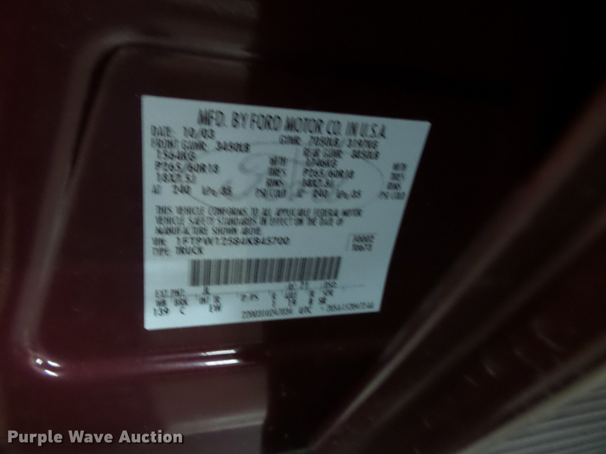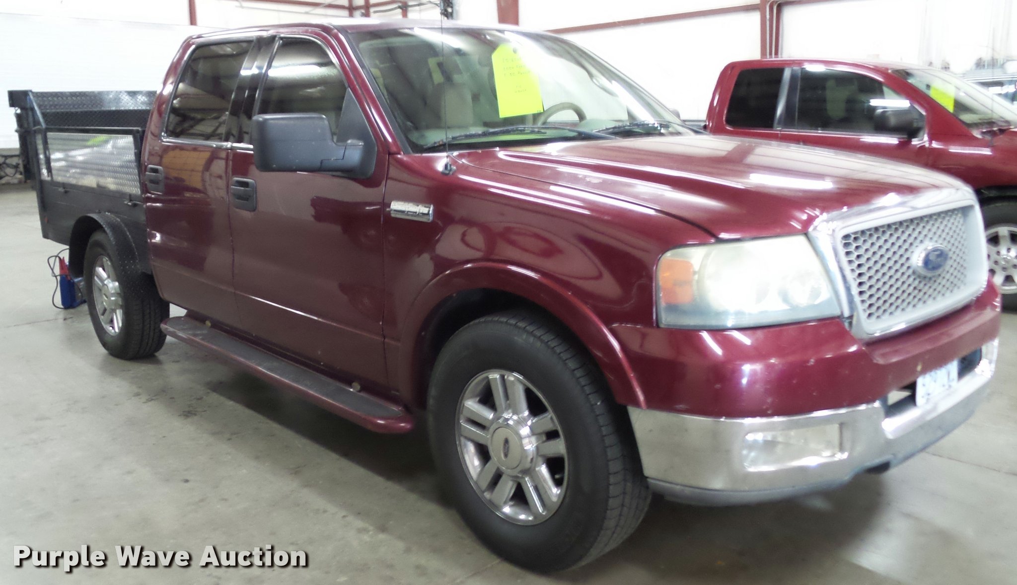 Purple Wave is selling a used 1/2 Ton Pickup or Van in Kansas. This item is a 2004 Ford F150 Lariat SuperCrew flatbed pickup truck with the following: 118,688 miles on odometer, 5.4L V6 SOHC 16V gas engine, Automatic transmission, AC and heat, Tilt, Cruise, AM/FM/CD, Power windows, locks, mirrors, and seat, Leather interior, Fog lights, Running boards, 7'L x 6'W flatbed, 16"H fold down sides, Tommy lift end gate, Winch motor, No winch,, 265/70R18 tires, Dead battery, Carfax report available from seller
